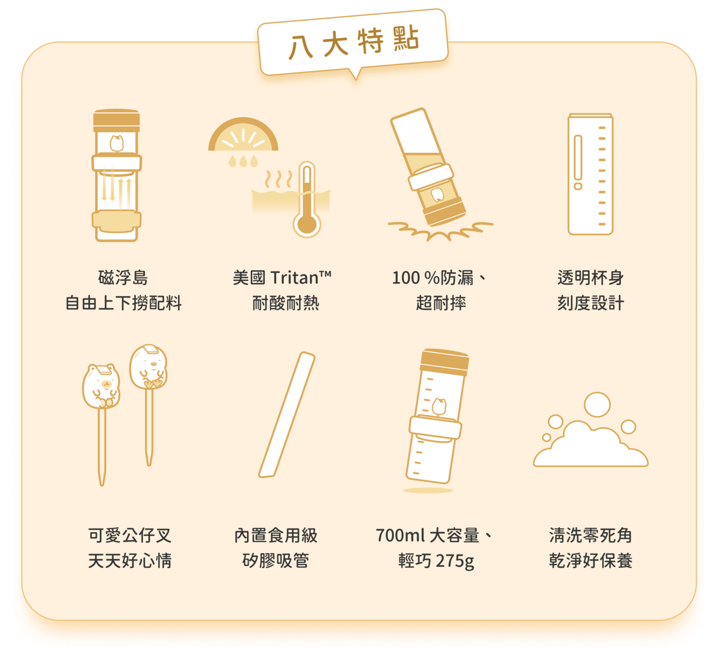 ❚ 杯身:美國 Tritan™ TX1001 材質,耐溫 0°C 到 100°C。