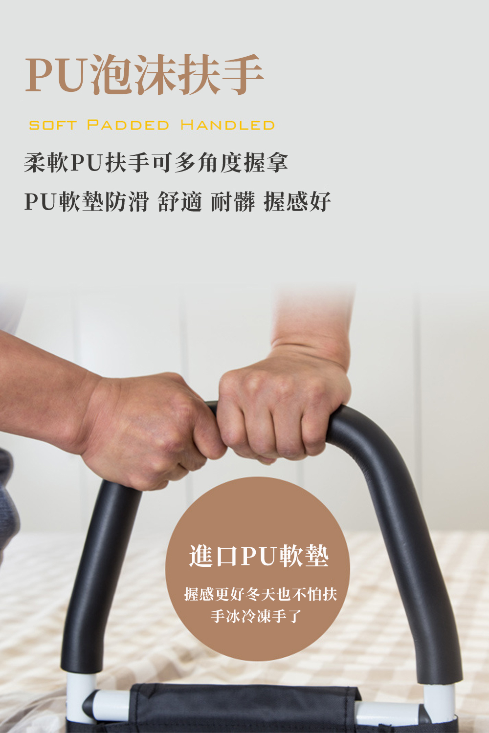 可折疊:只需將兩邊拉銷拉開,即可180度折疊扶手,不占空間