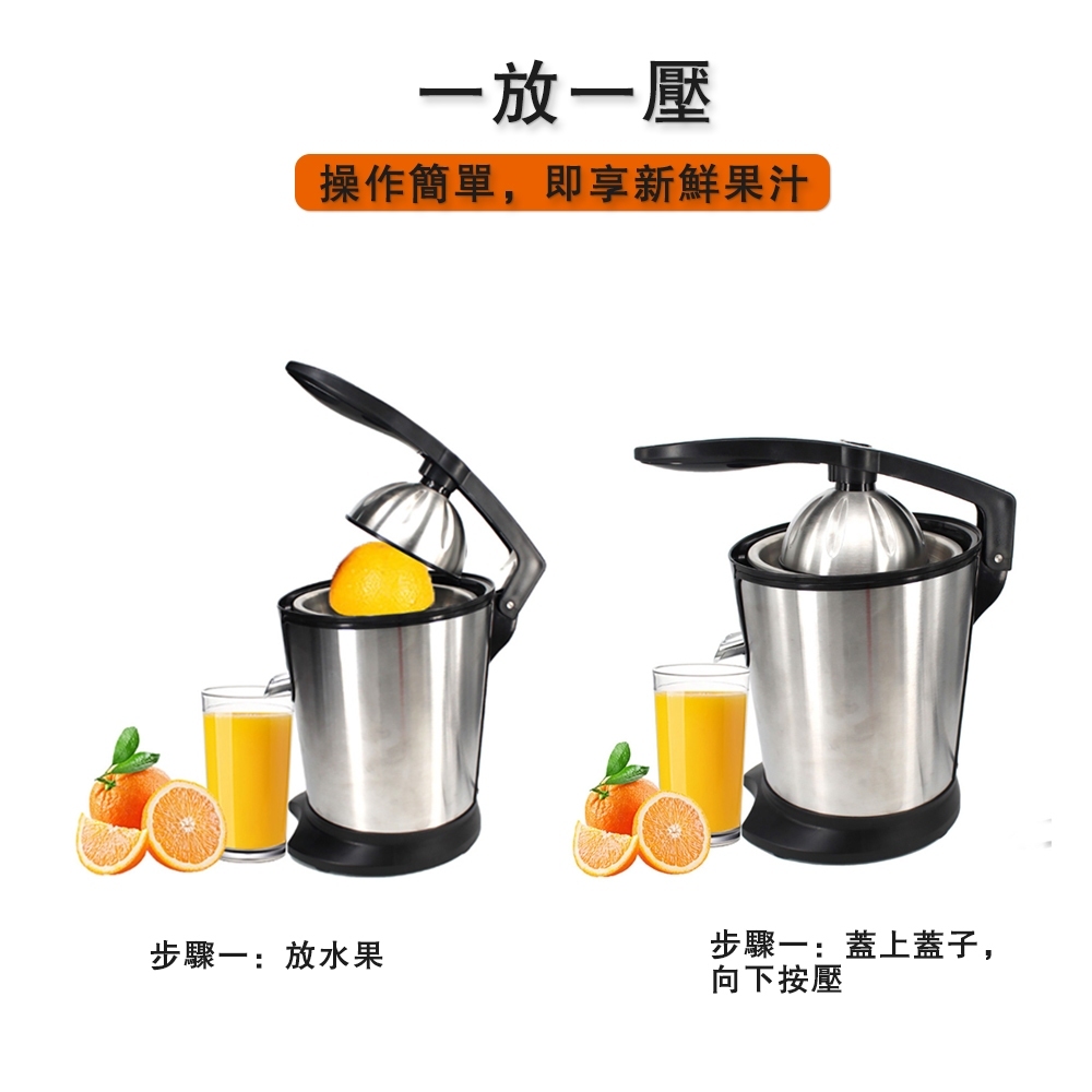 【OSLE歐適樂】110v果汁機不銹鋼手壓式電動原汁機檸檬橙渣汁分 離料理機 柳橙榨汁機 破壁果汁機 壓果汁機 電動果汁機