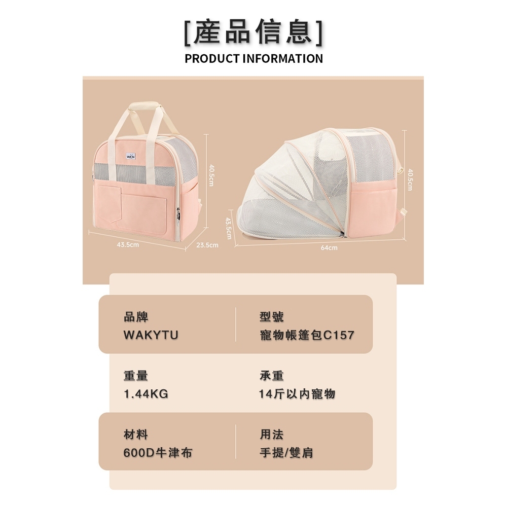【OSLE歐適樂】新款寵物帳篷包外出大容量透氣單面擴容單肩雙肩寵物包