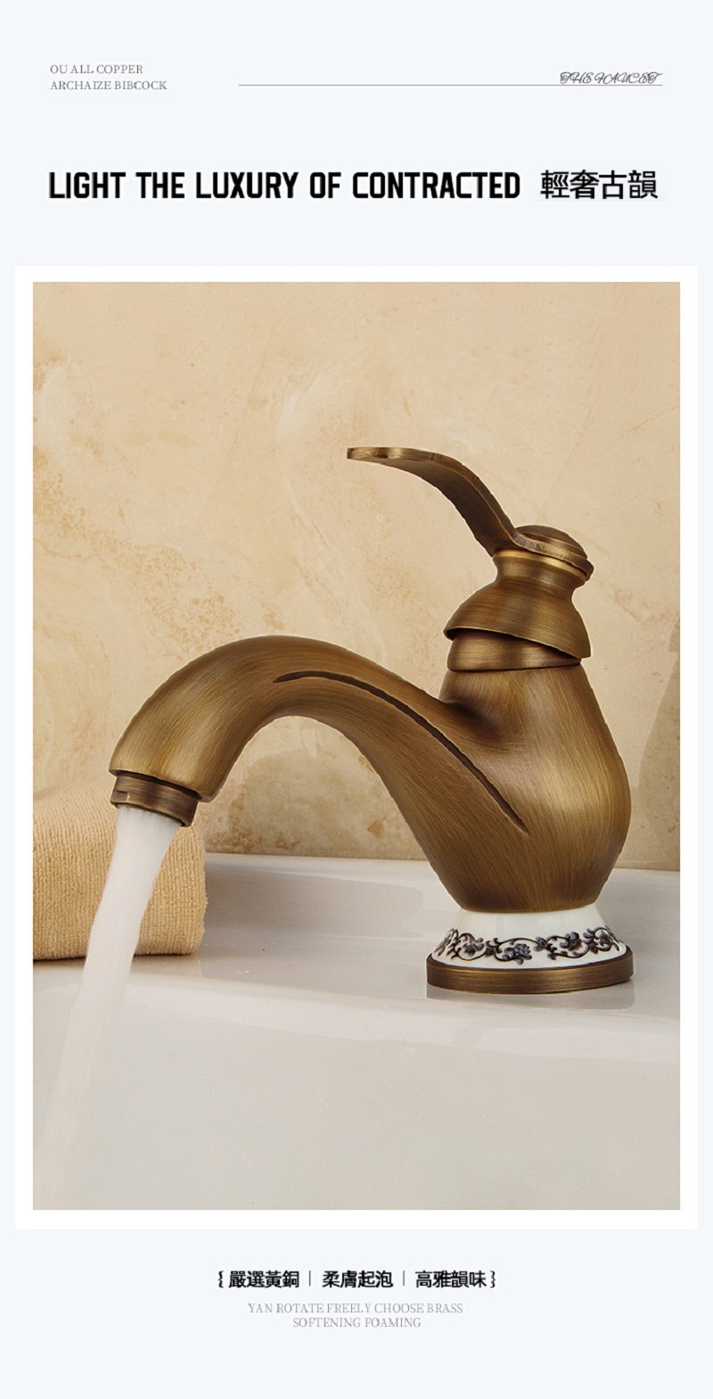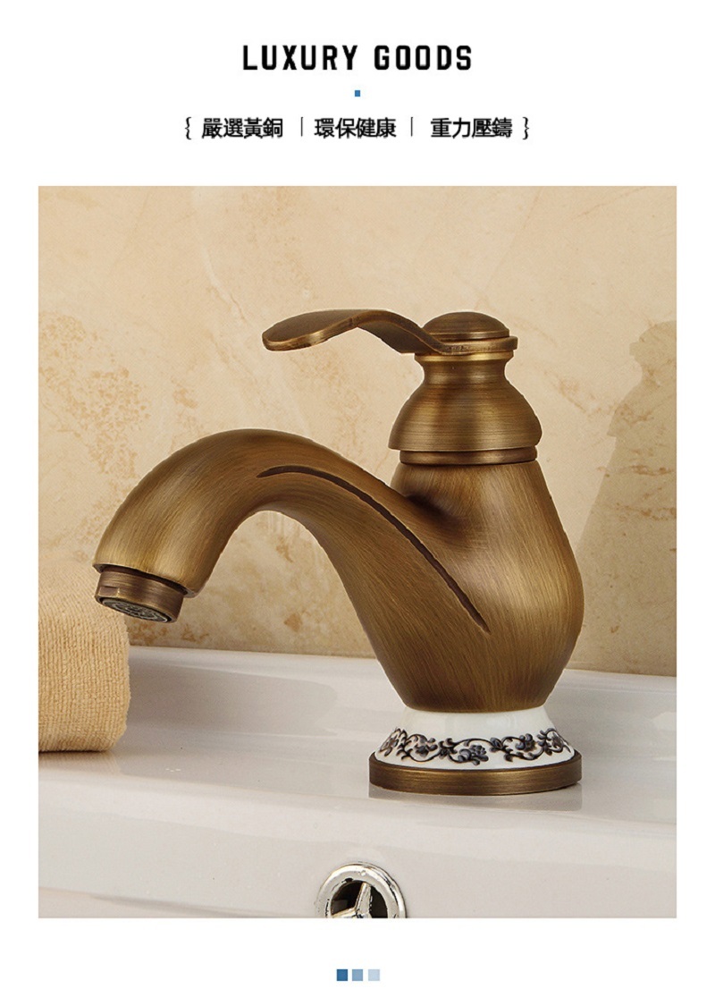 【小山THL】全銅仿古洗臉盆面盆青花瓷冷熱水龍頭衛生間單孔黑色龍頭