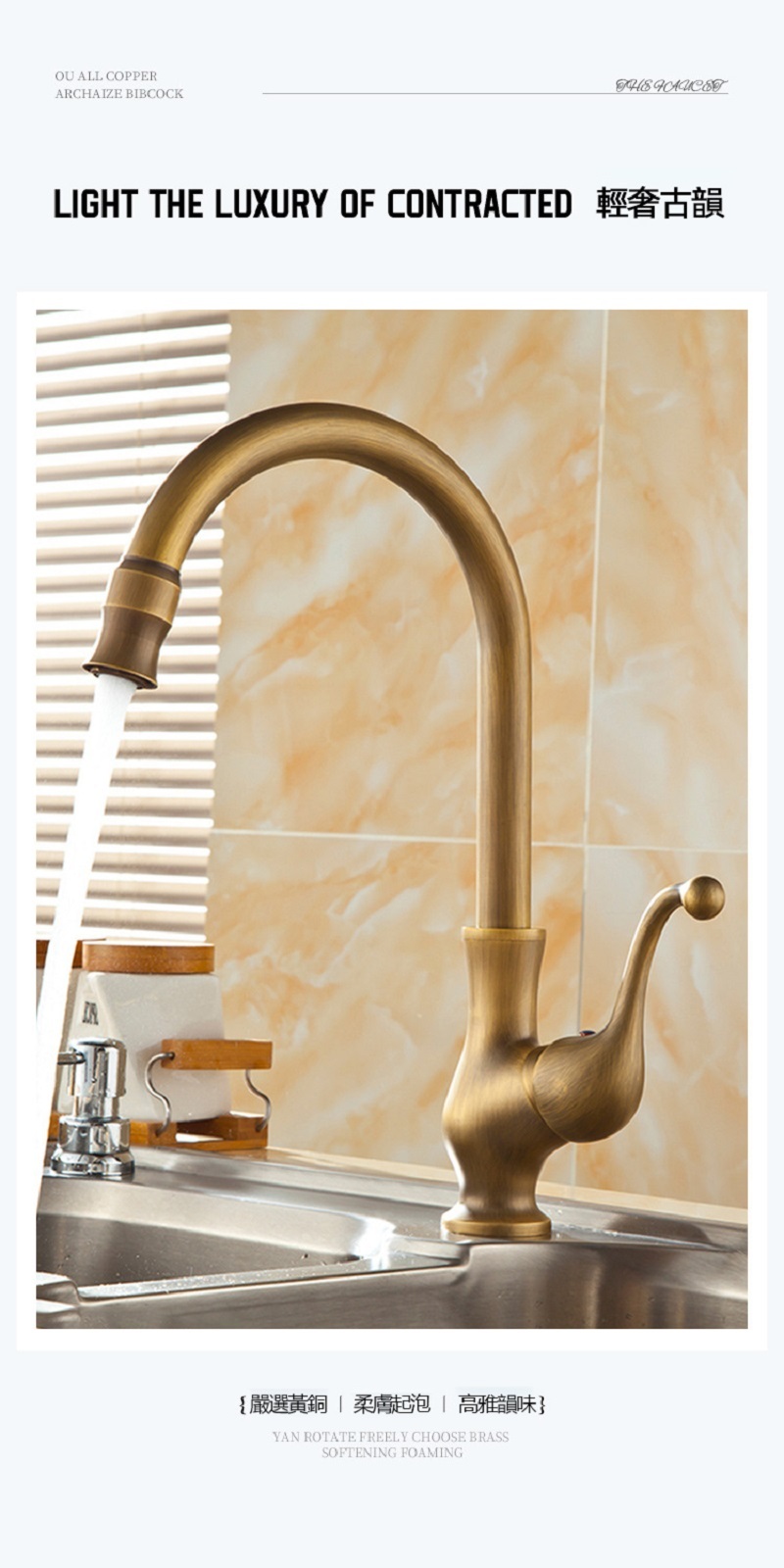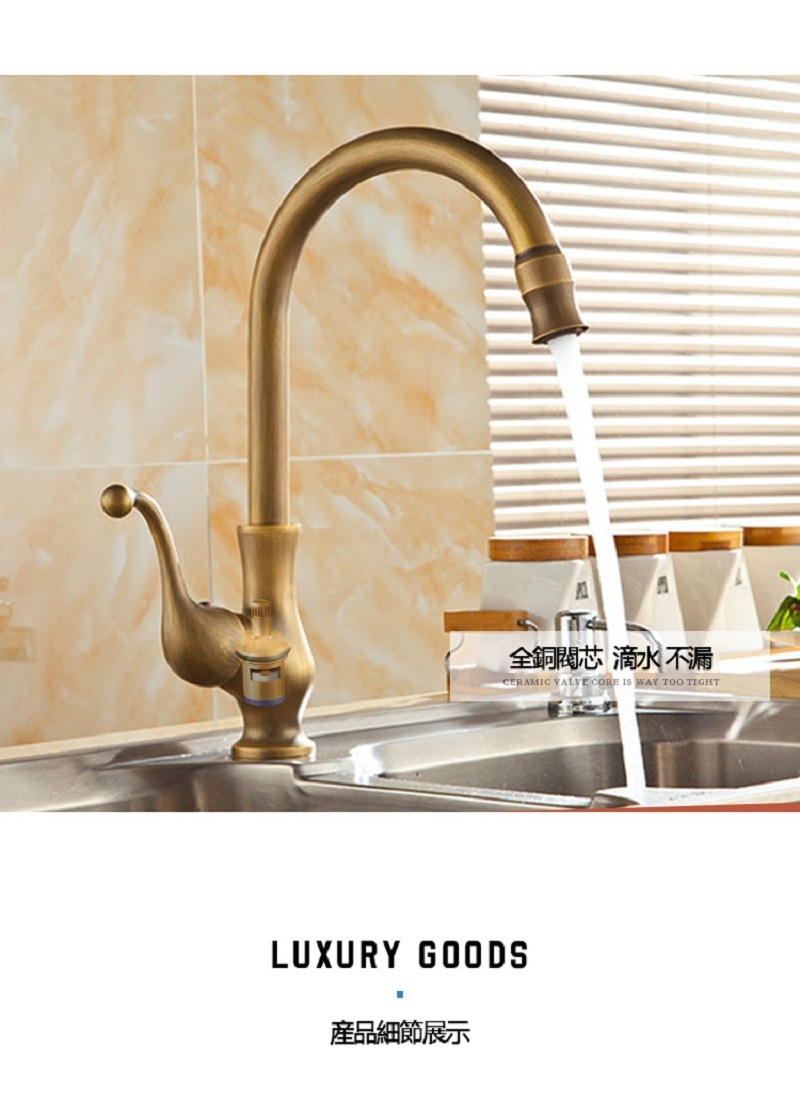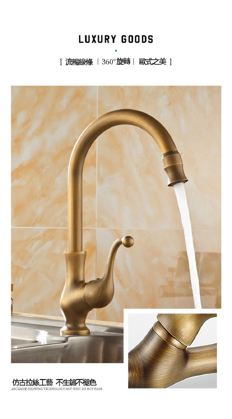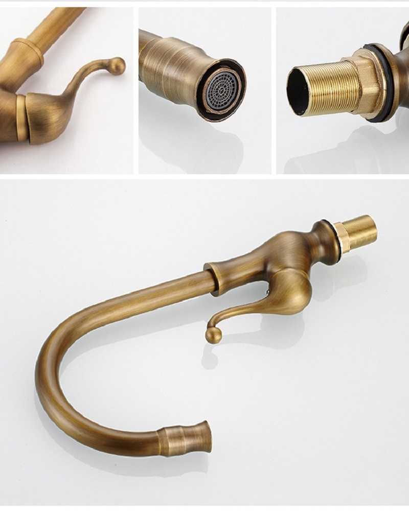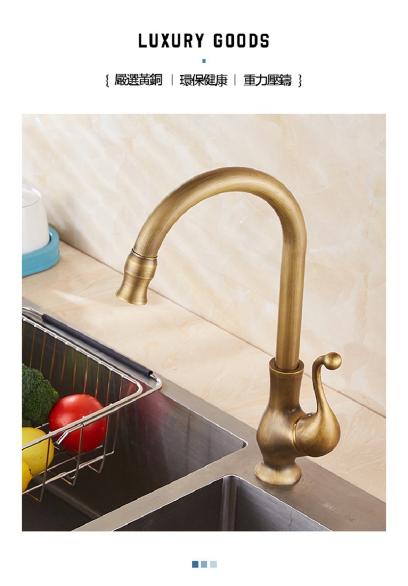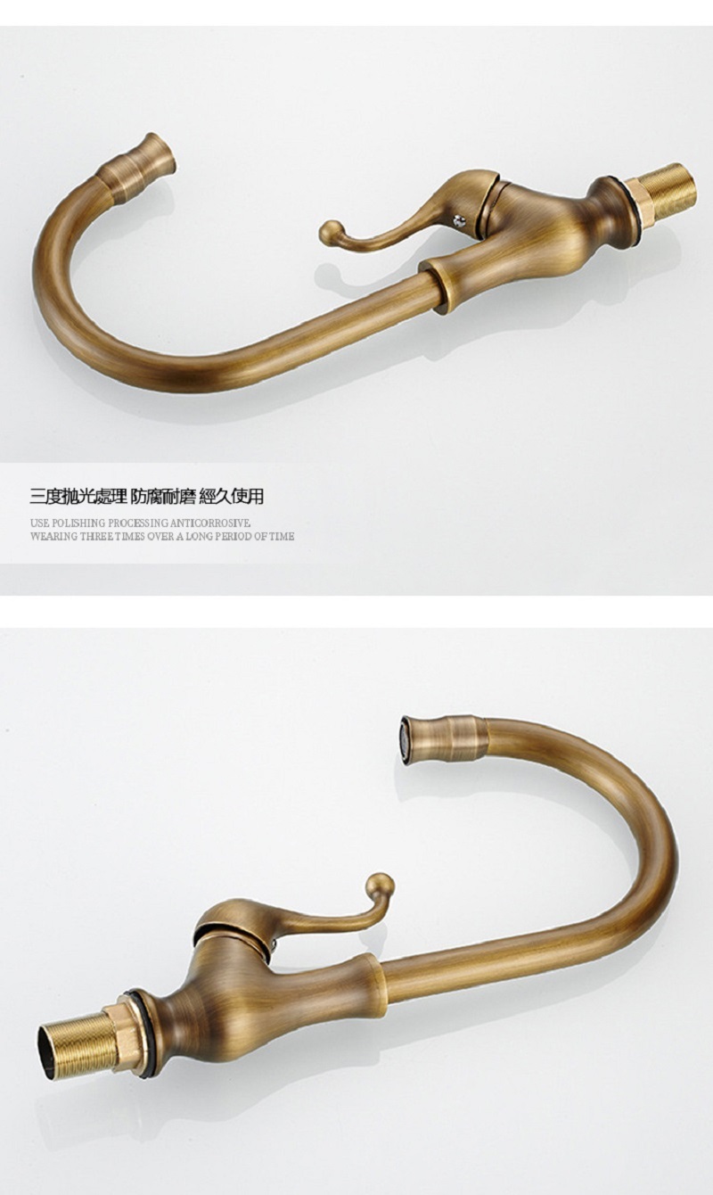 【小山THL】全銅歐式仿古冷熱水龍頭面盆台盆龍頭複古廚房水槽可旋轉花瓶龍頭