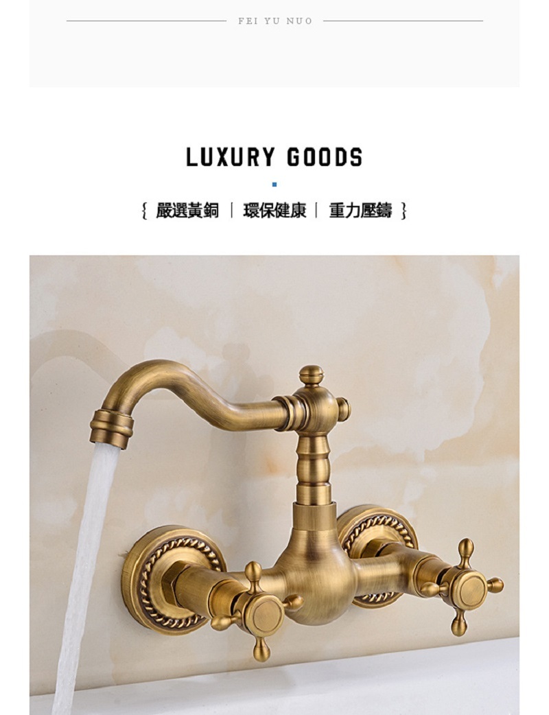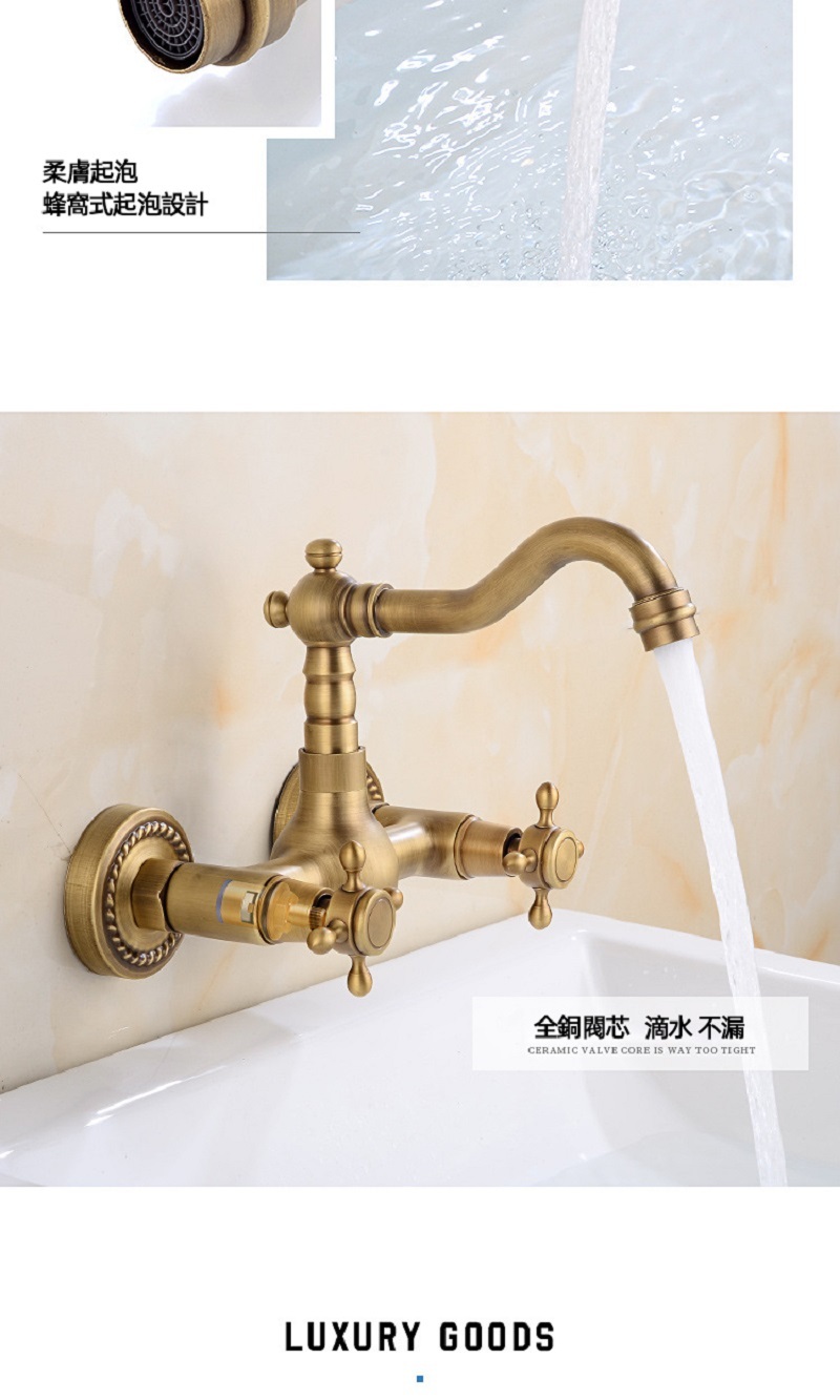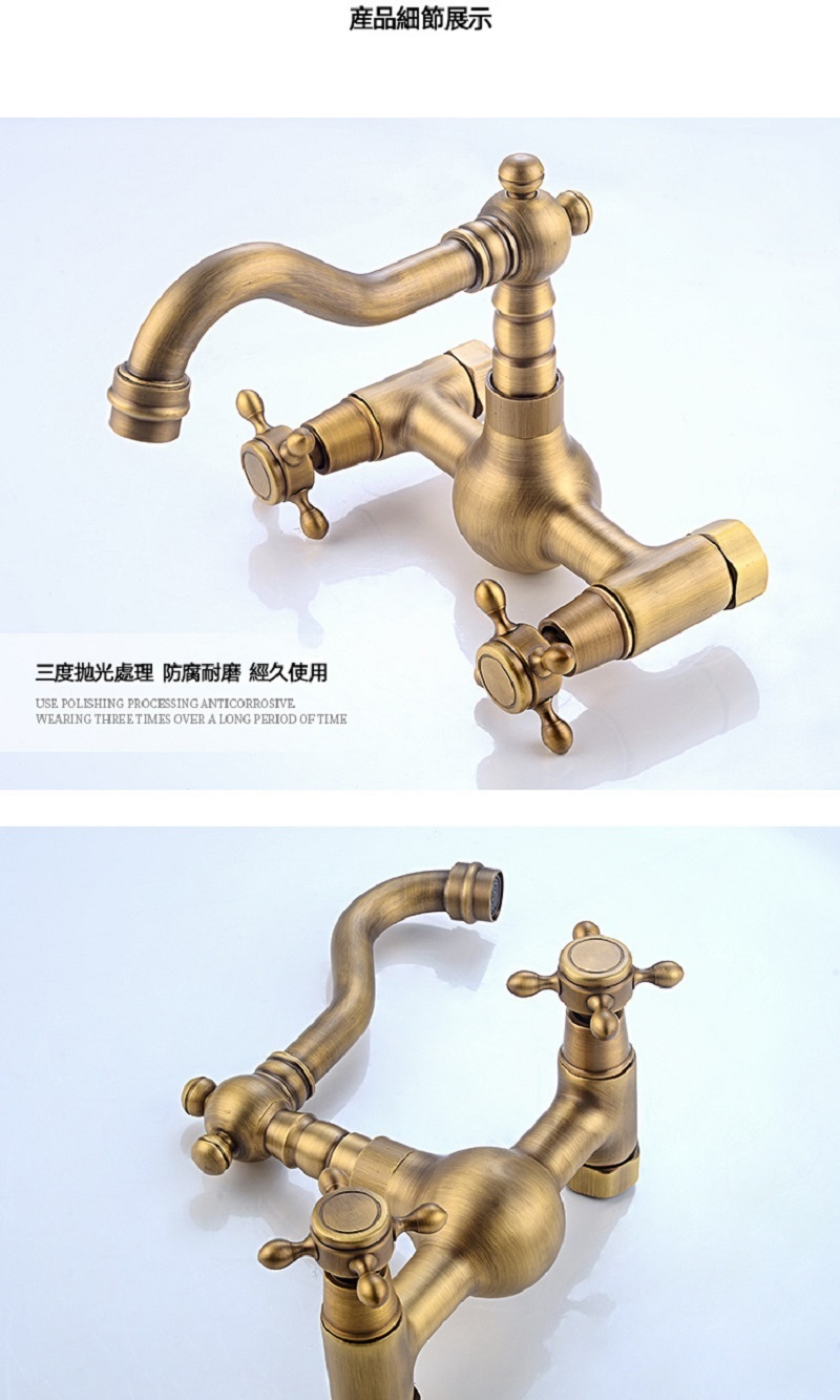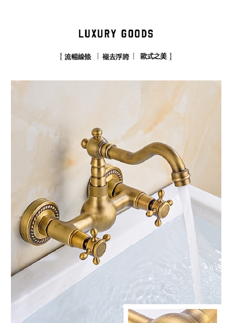 【小山THL】全銅複古歐式簡約入牆式冷熱水龍頭浴缸廚房可旋轉雙把雙用龍頭