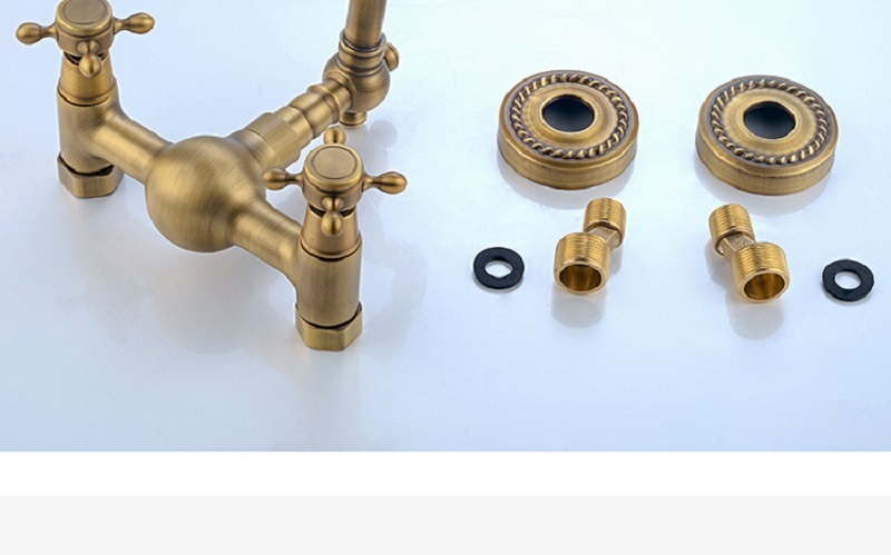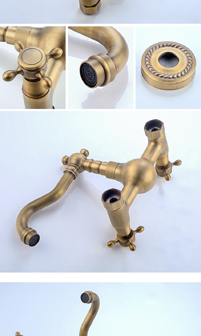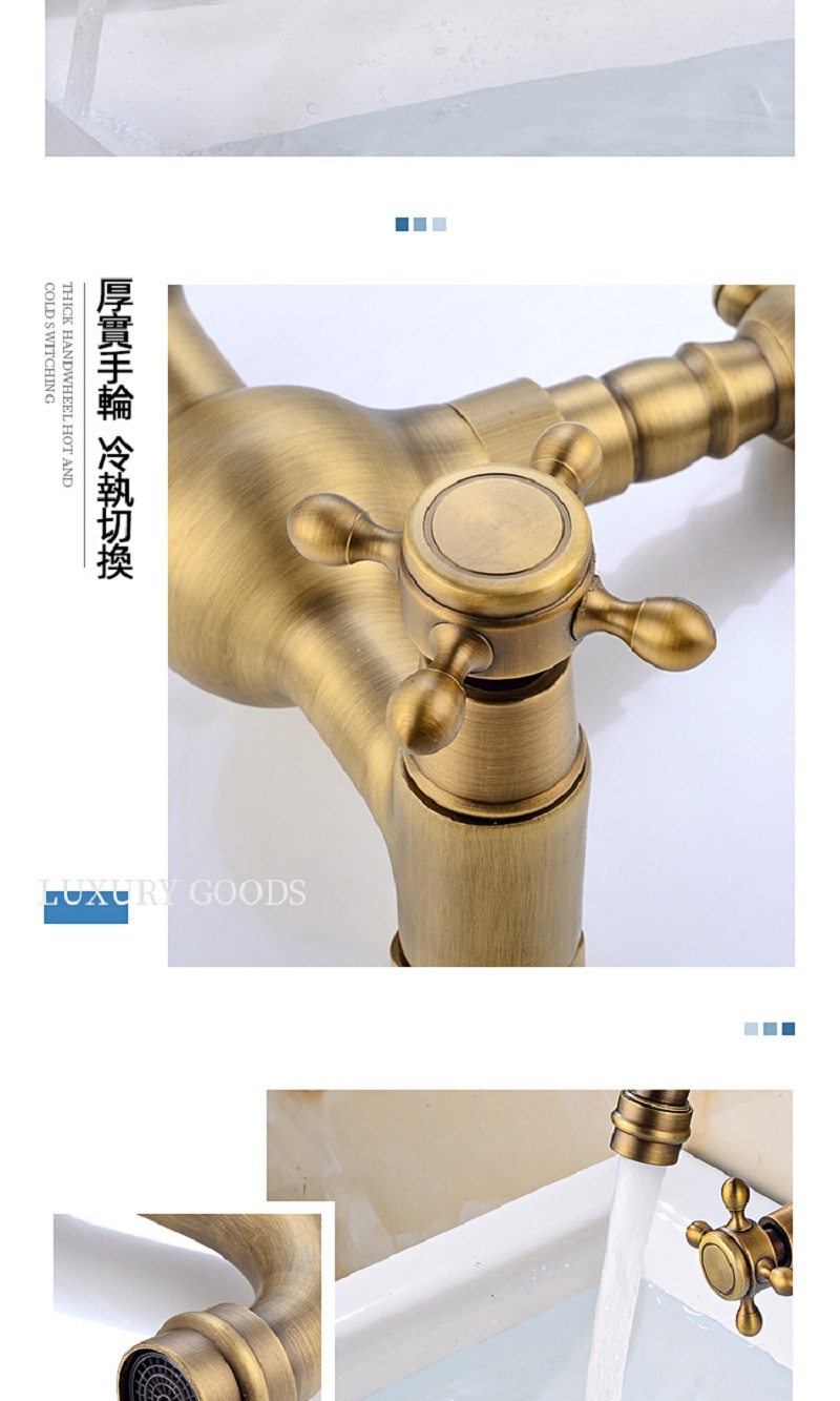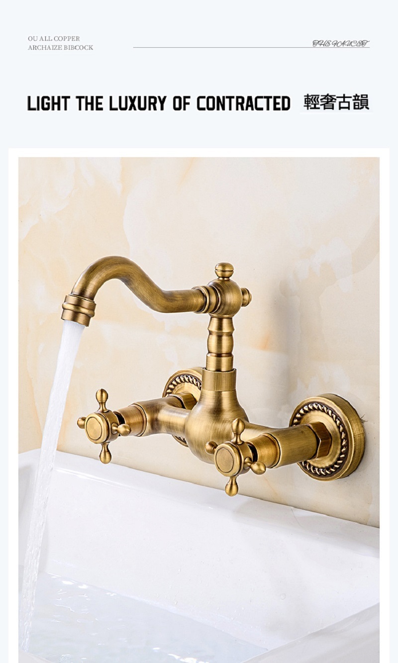 【小山THL】全銅複古歐式簡約入牆式冷熱水龍頭浴缸廚房可旋轉雙把雙用龍頭
