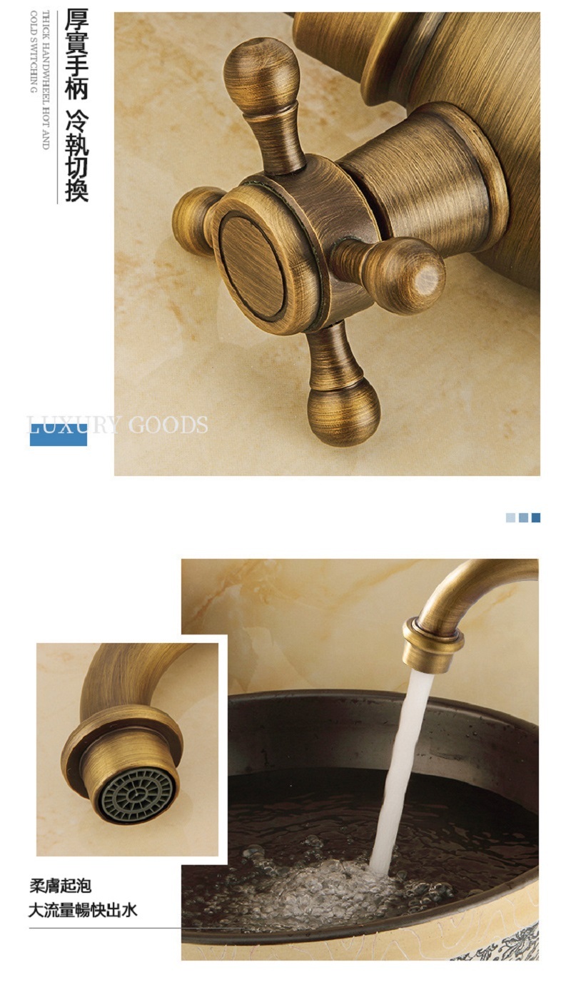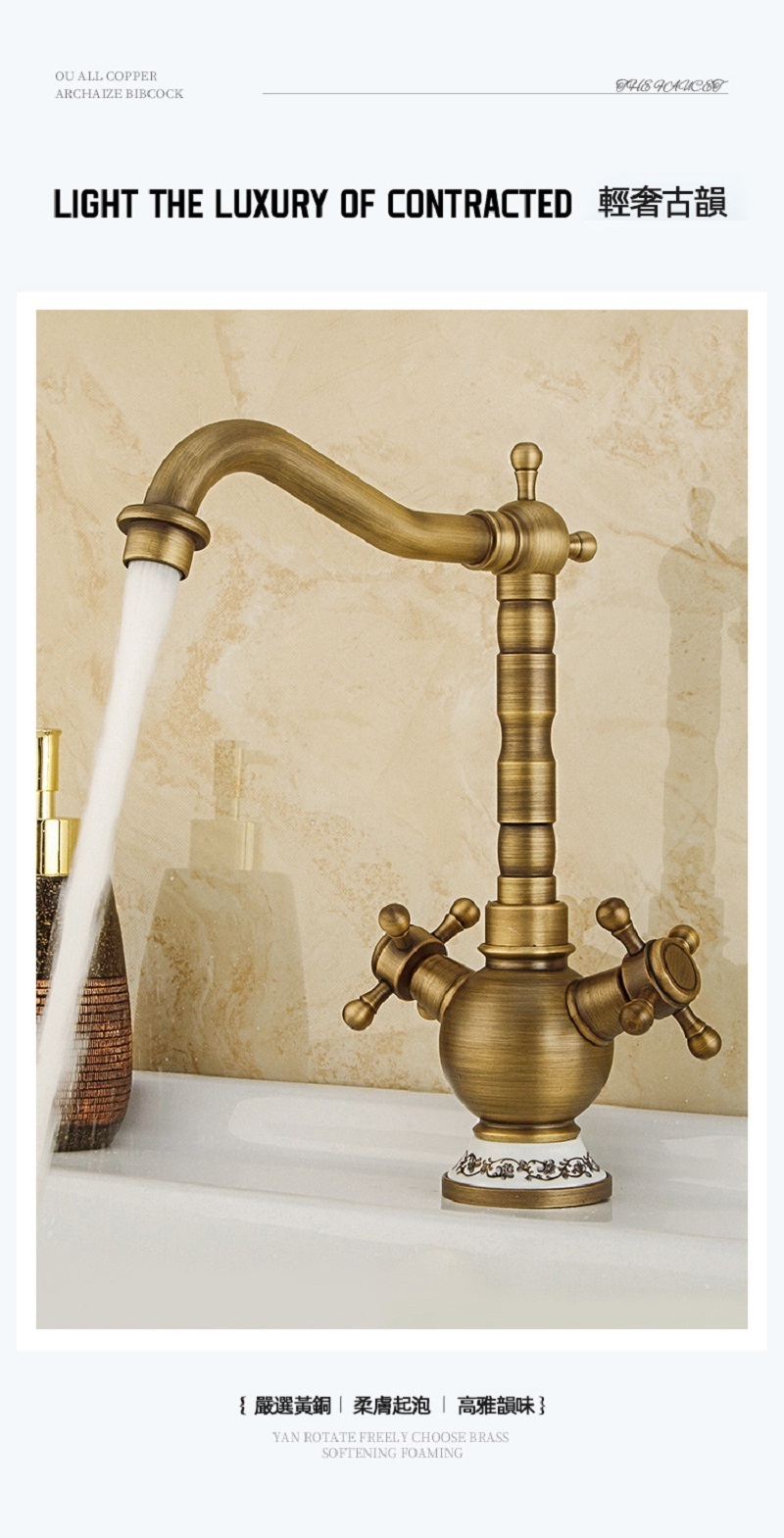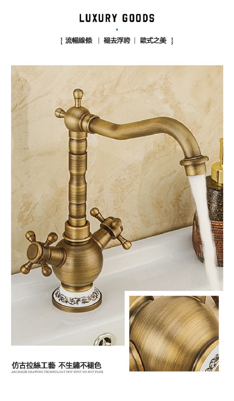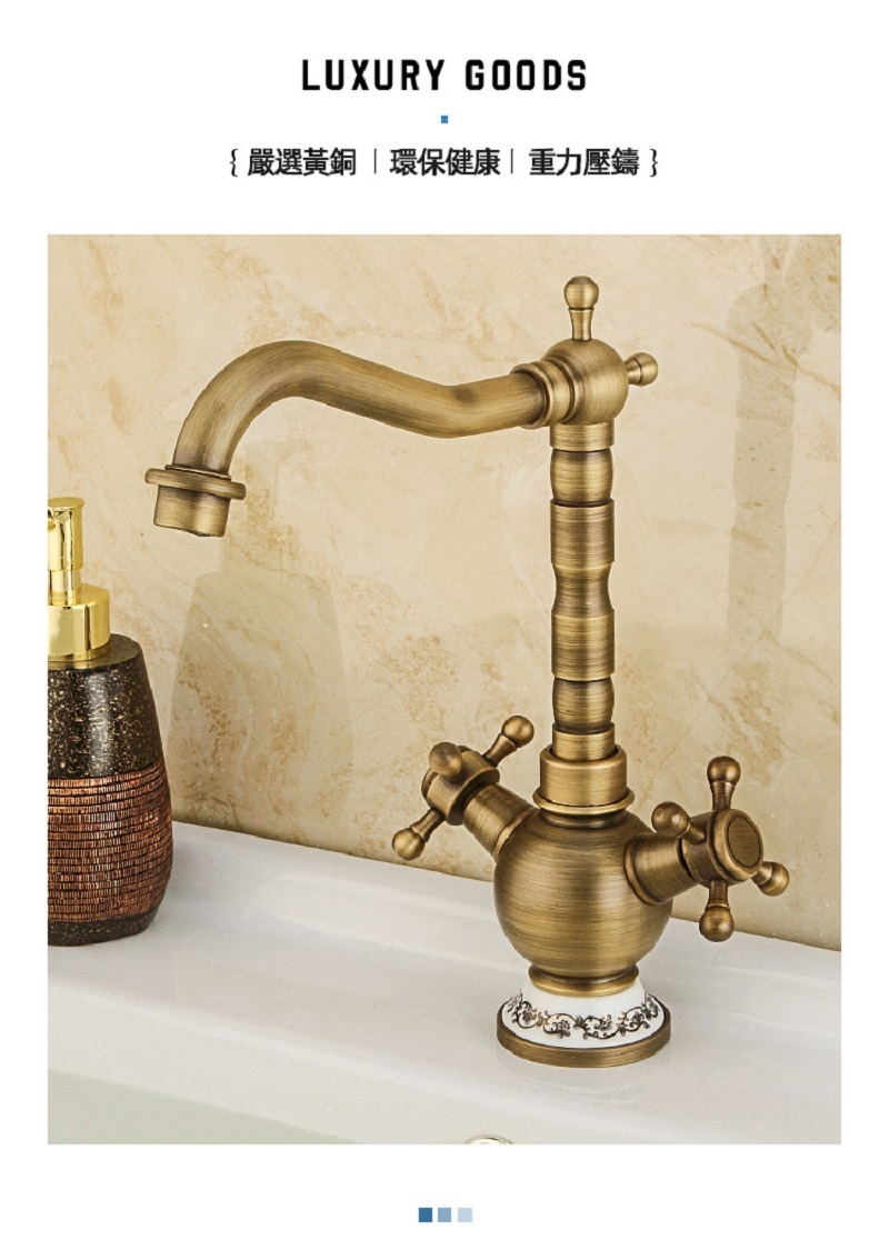 【小山THL】歐式 全銅複古 陶瓷雙控加高龍頭 洗手間台上盆 洗臉家用冷熱水龍頭