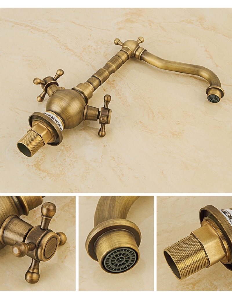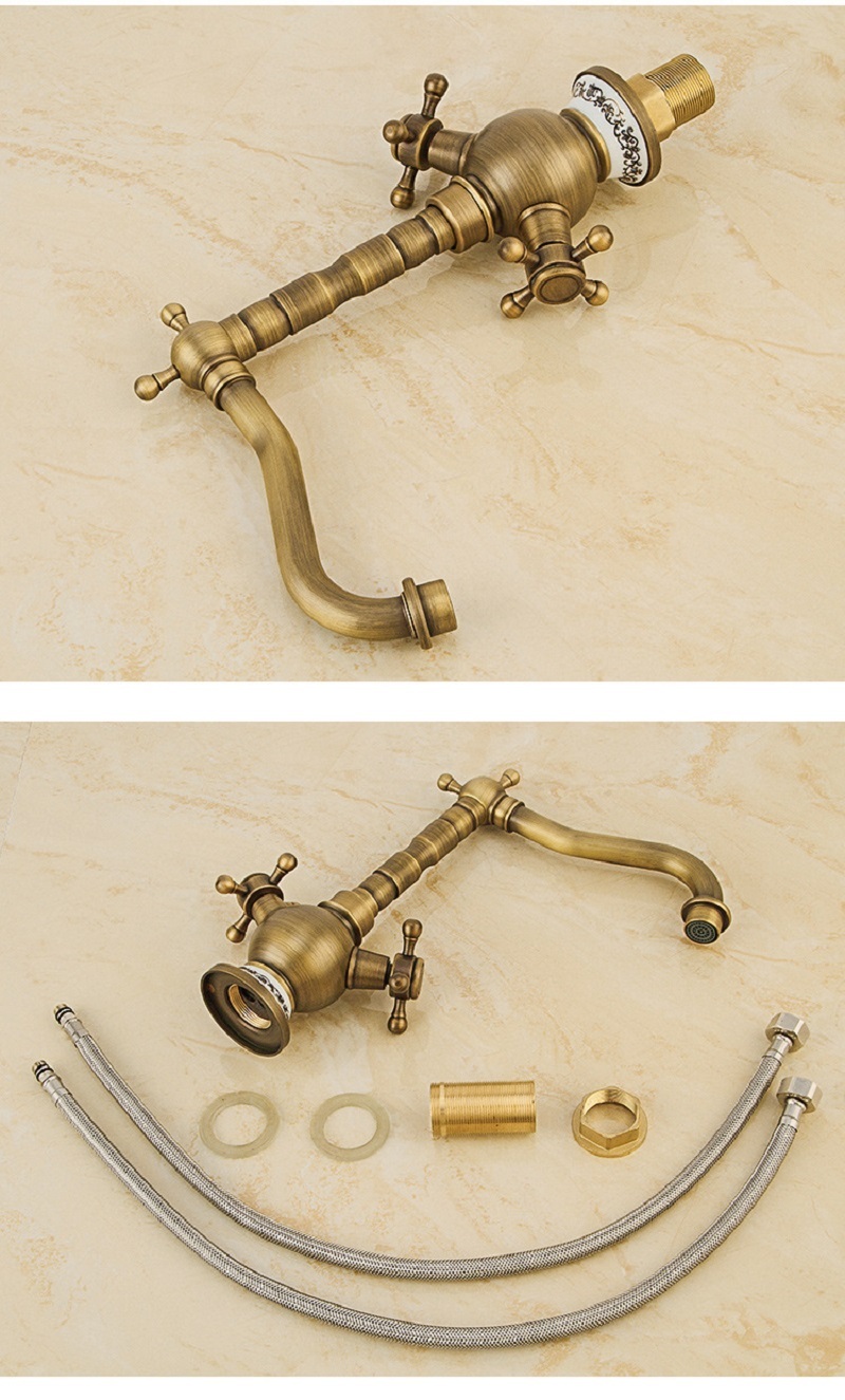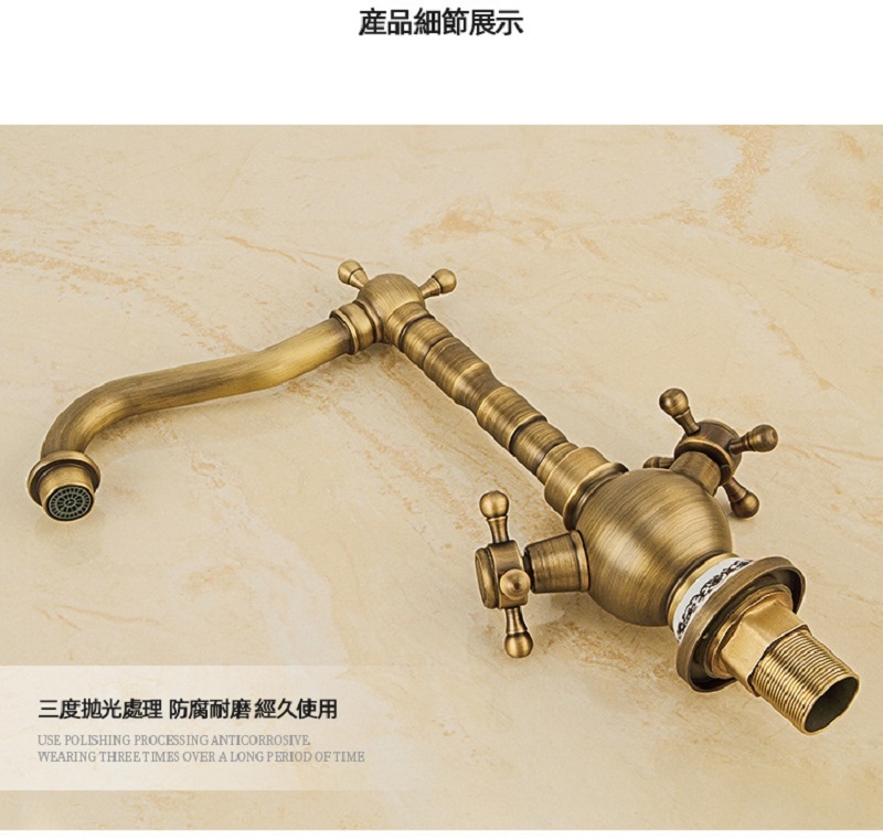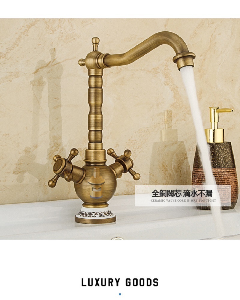 【小山THL】歐式 全銅複古 陶瓷雙控加高龍頭 洗手間台上盆 洗臉家用冷熱水龍頭