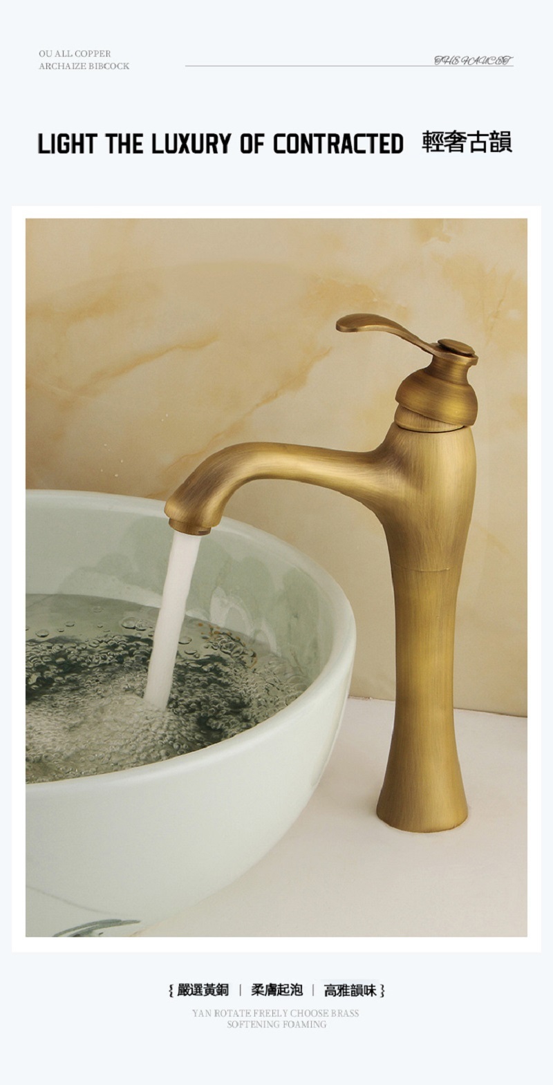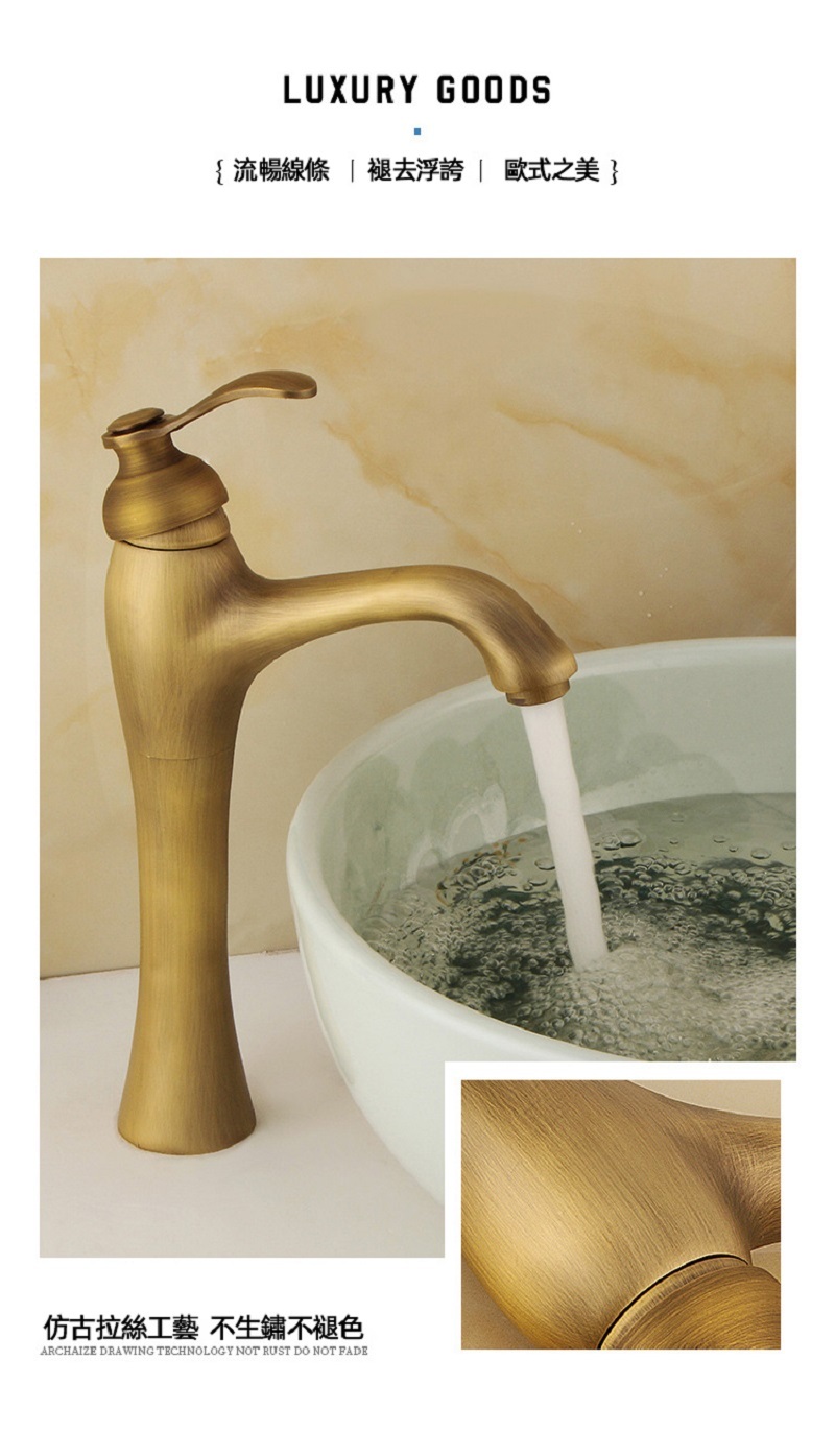 【小山THL】歐式仿古 全銅浴室台上盆 混水龍頭 批發家用衛生間 單孔冷熱龍頭