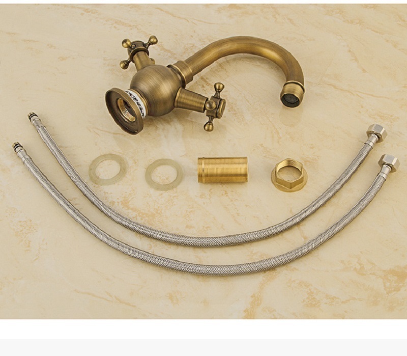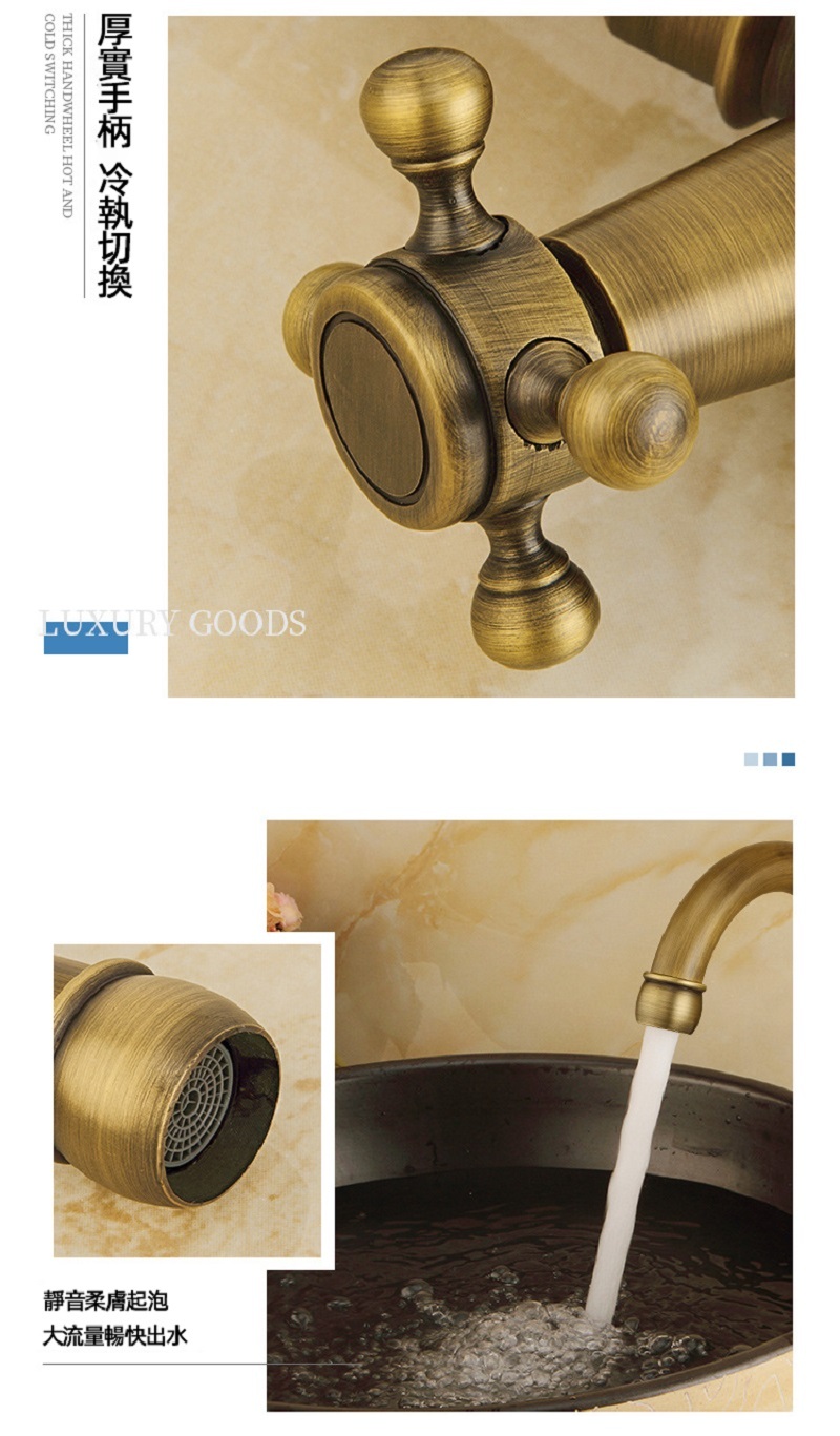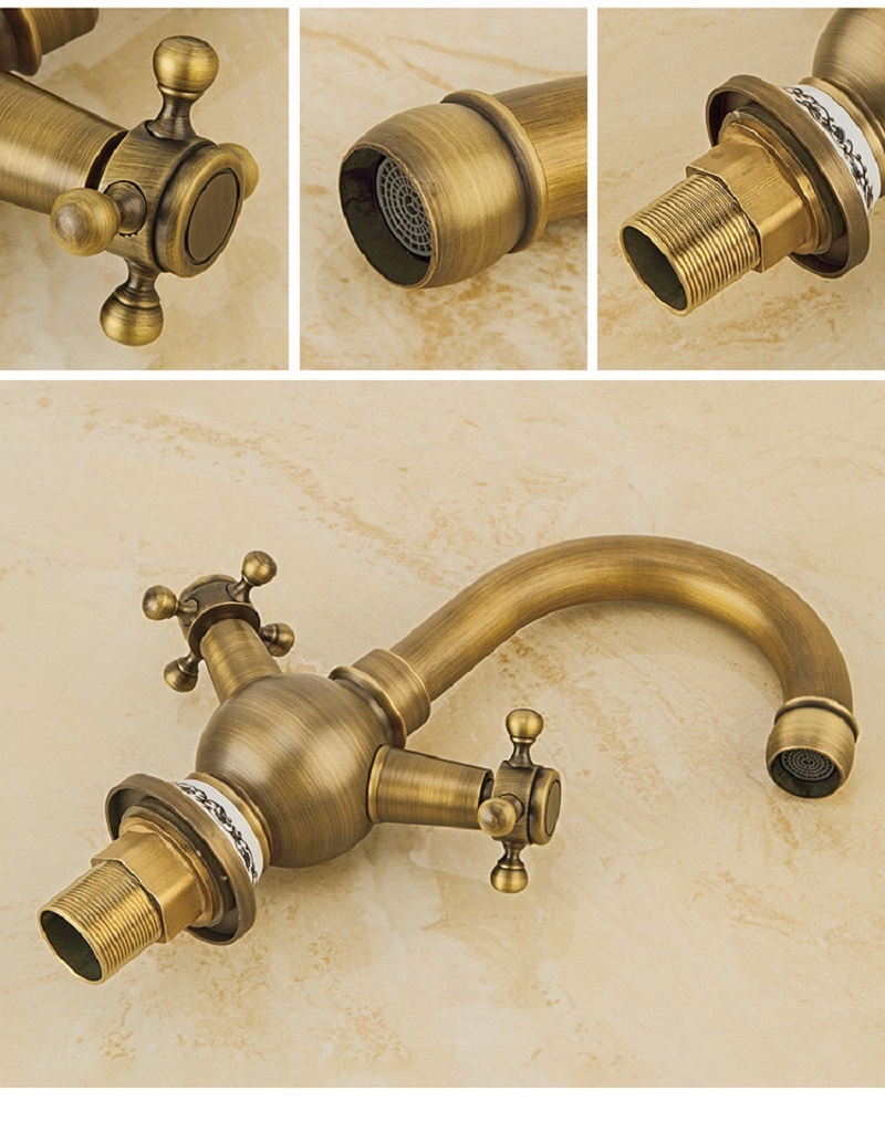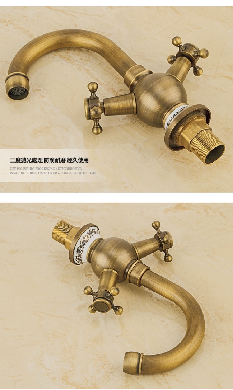 【小山THL】歐式仿古 全銅青花瓷 雙把手龍頭 複古單孔面盆 冷熱雙用 防濺水龍頭