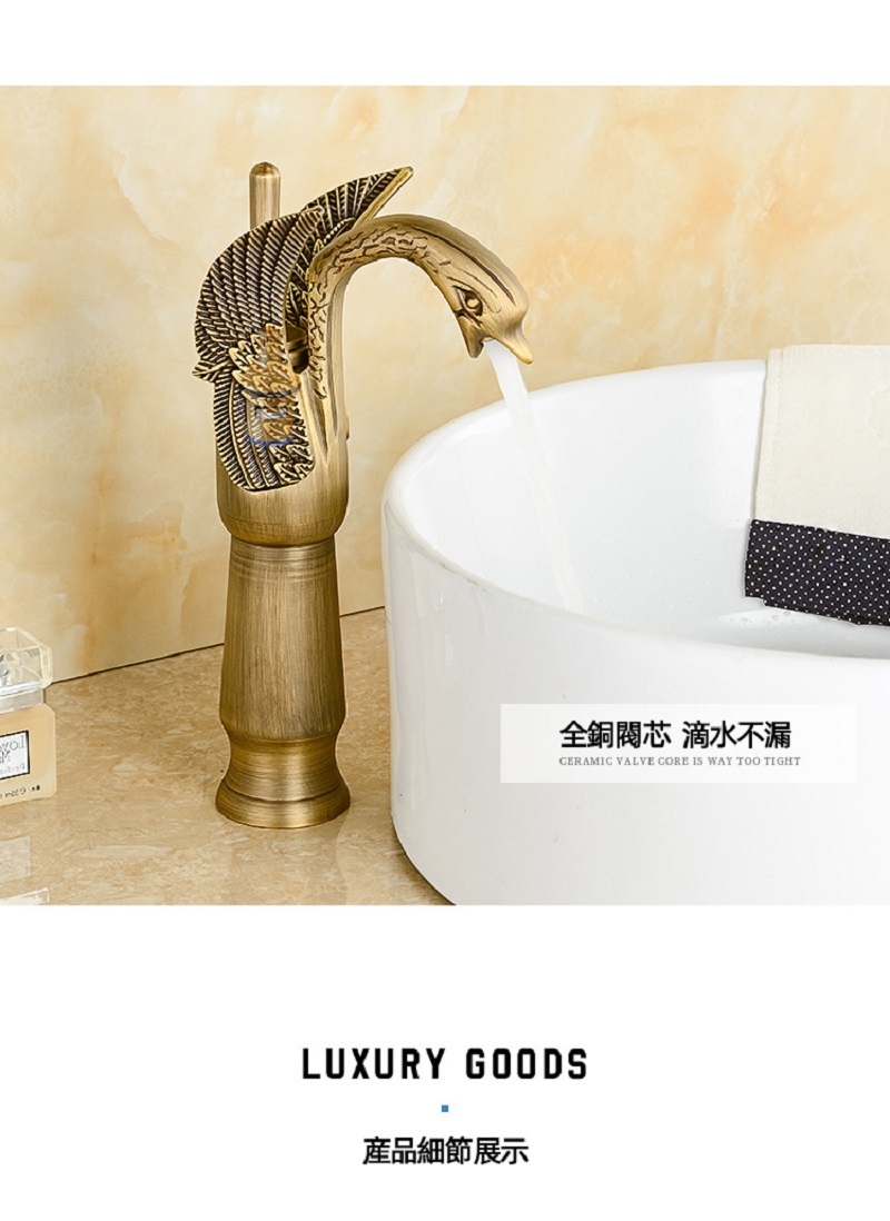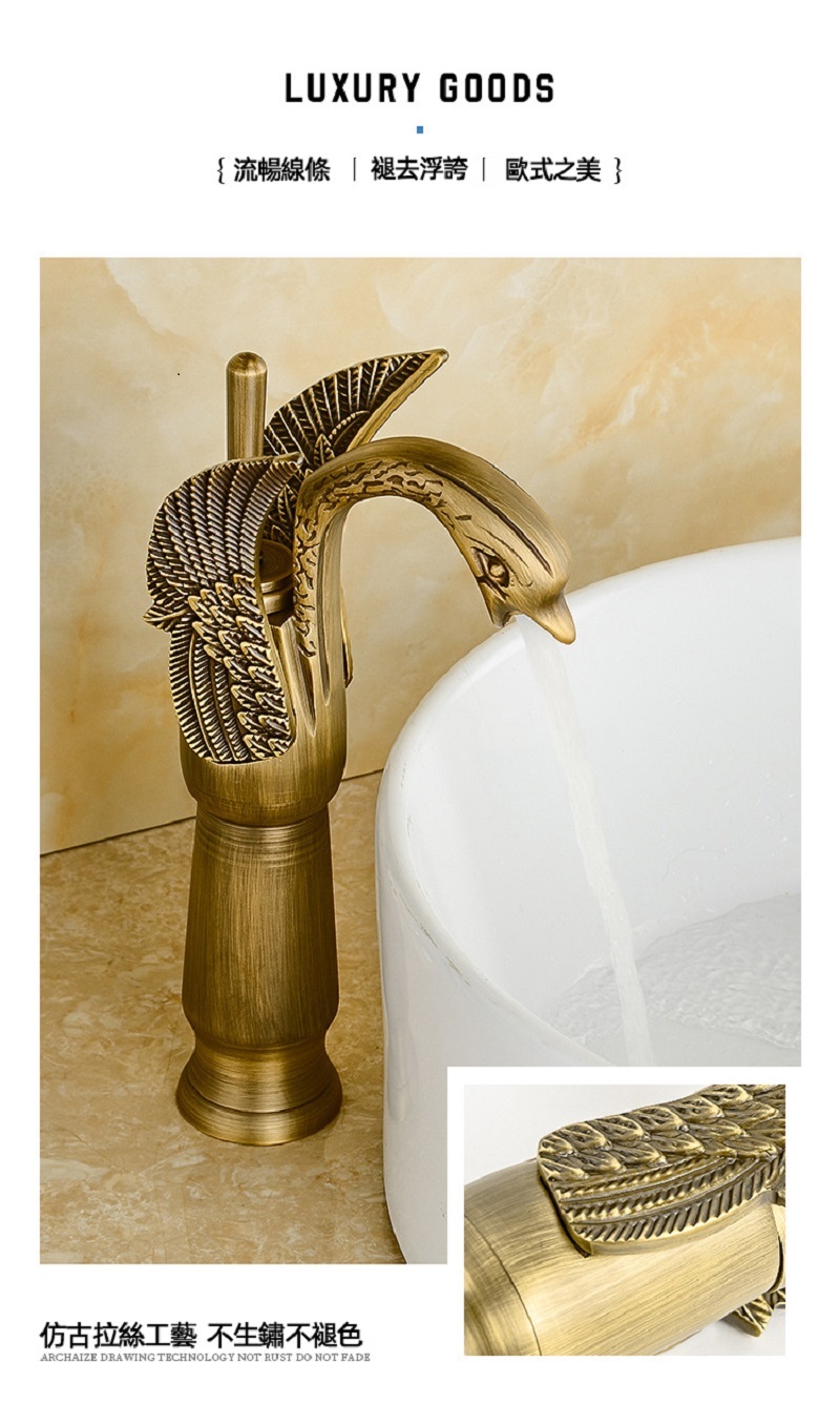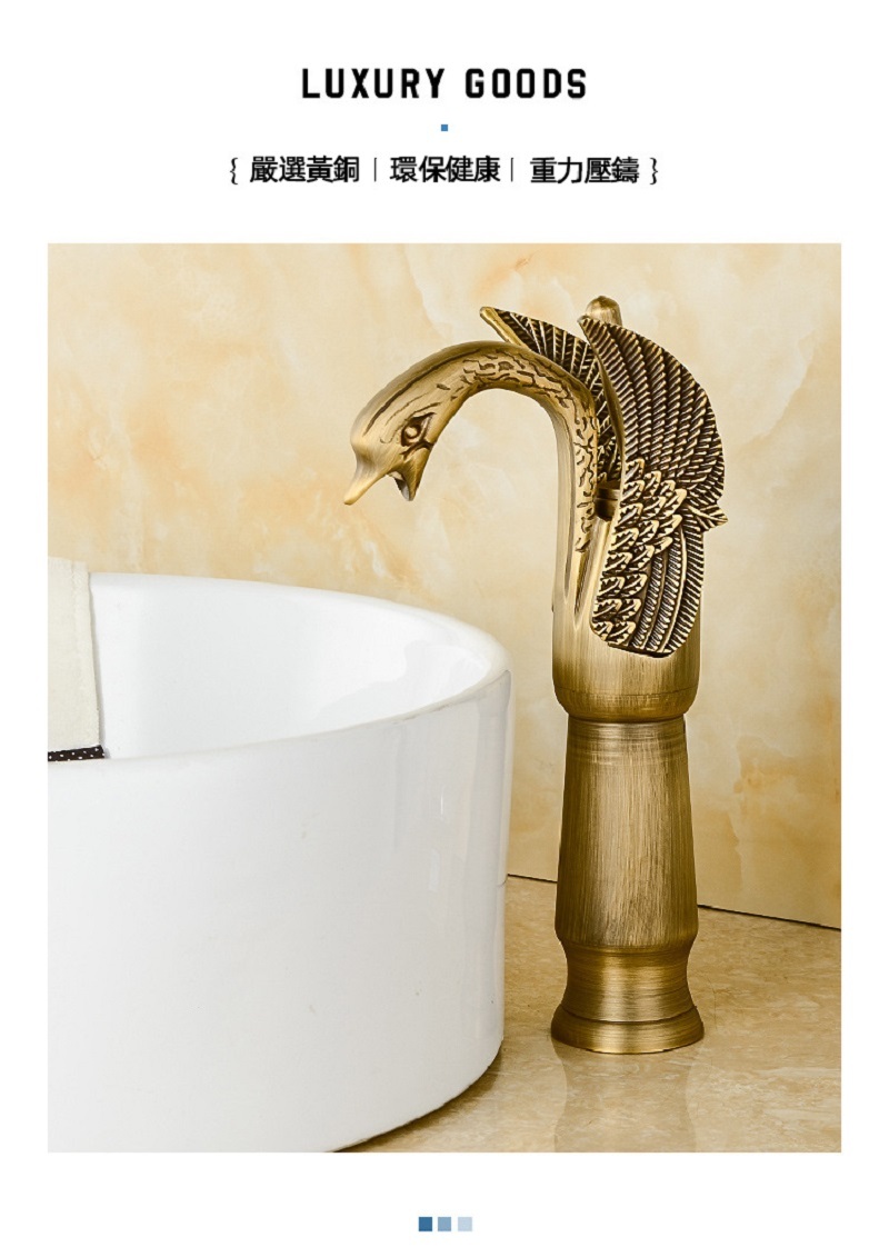 【小山THL】歐式仿古水龍頭 天鵝冷熱洗臉盆 水龍頭複古全銅 台下面盆銅色龍頭
