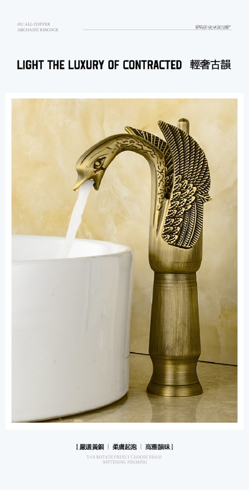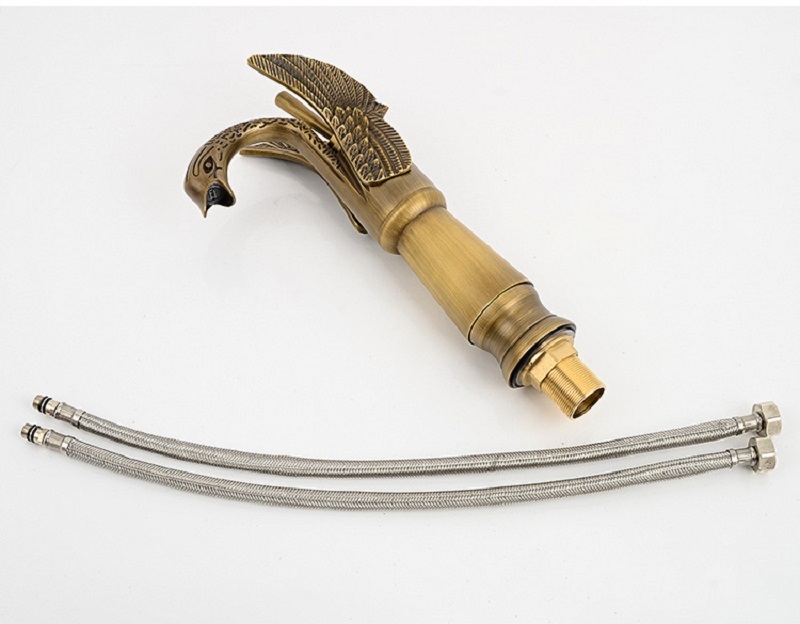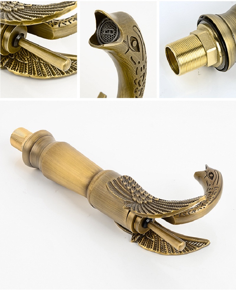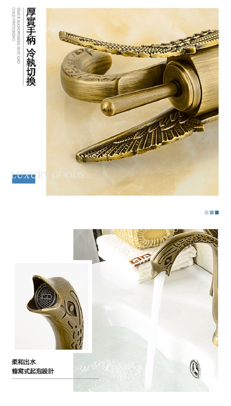 【小山THL】歐式仿古水龍頭 天鵝冷熱洗臉盆 水龍頭複古全銅 台下面盆銅色龍頭