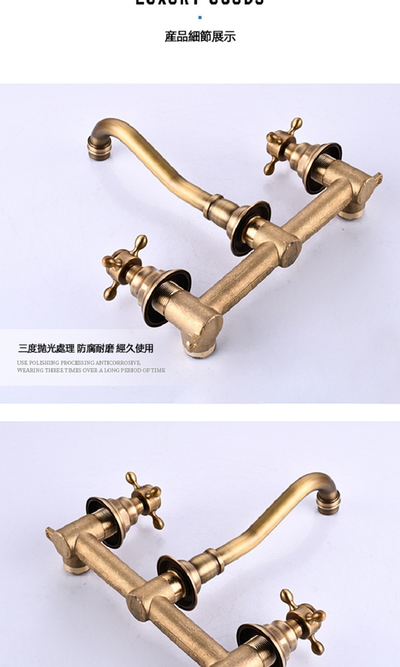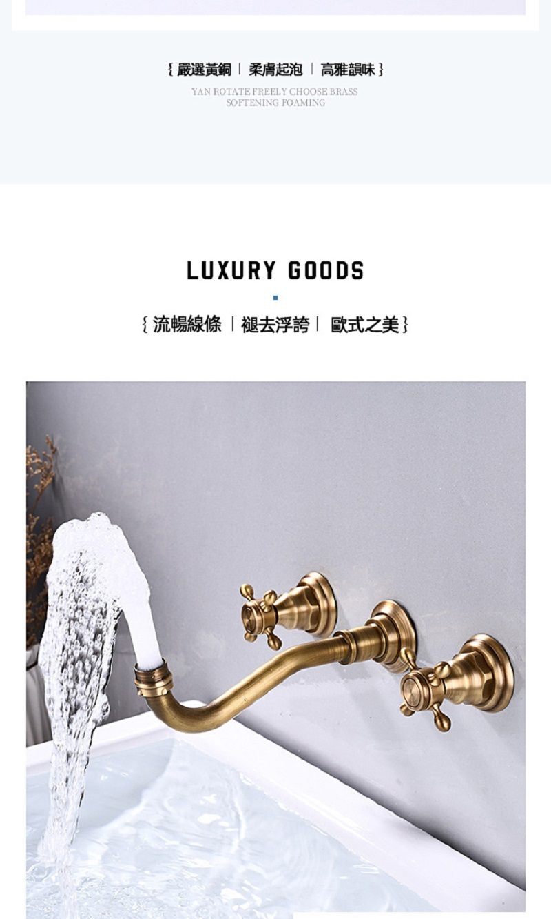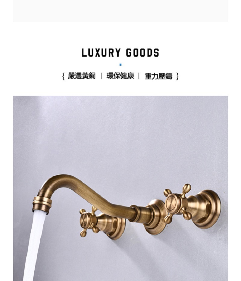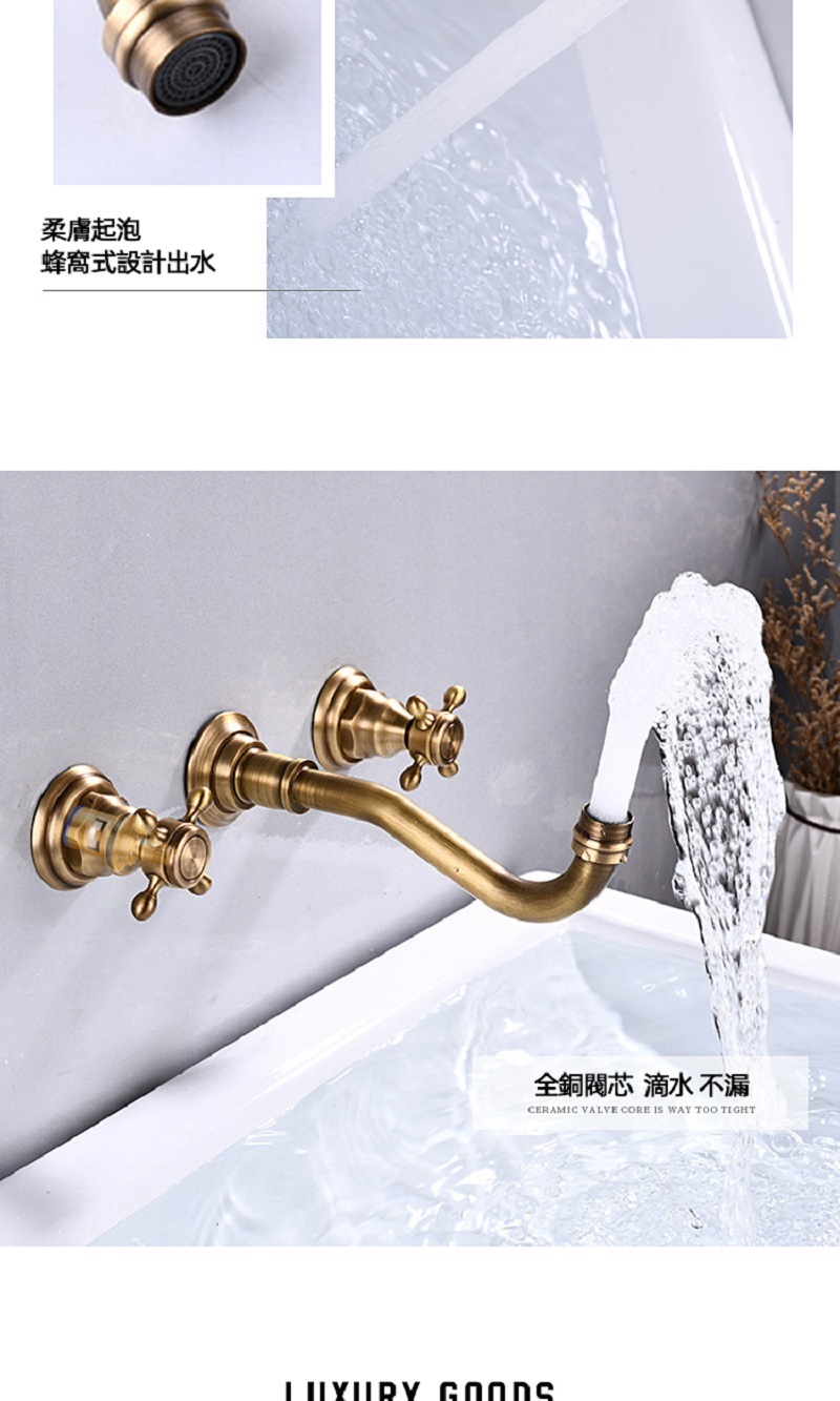 【THL小山】歐式全銅分體式三孔入牆龍頭洗臉盆面盆可旋轉冷熱雙控龍頭