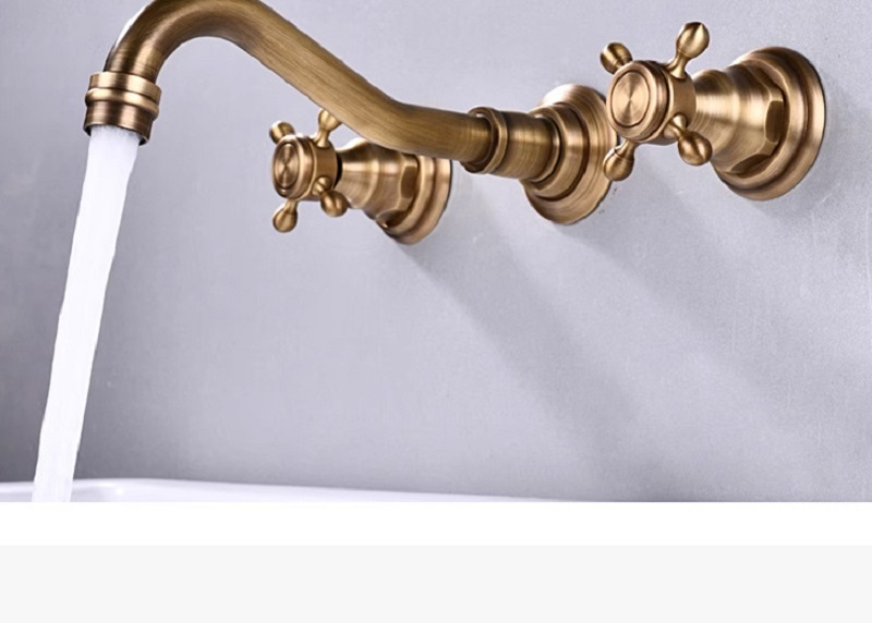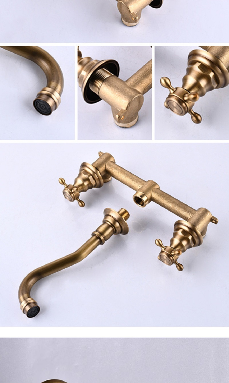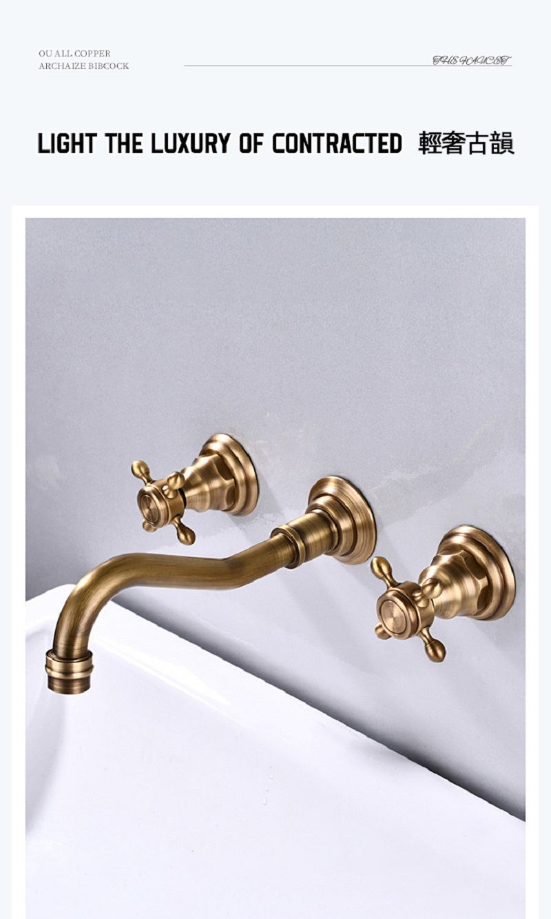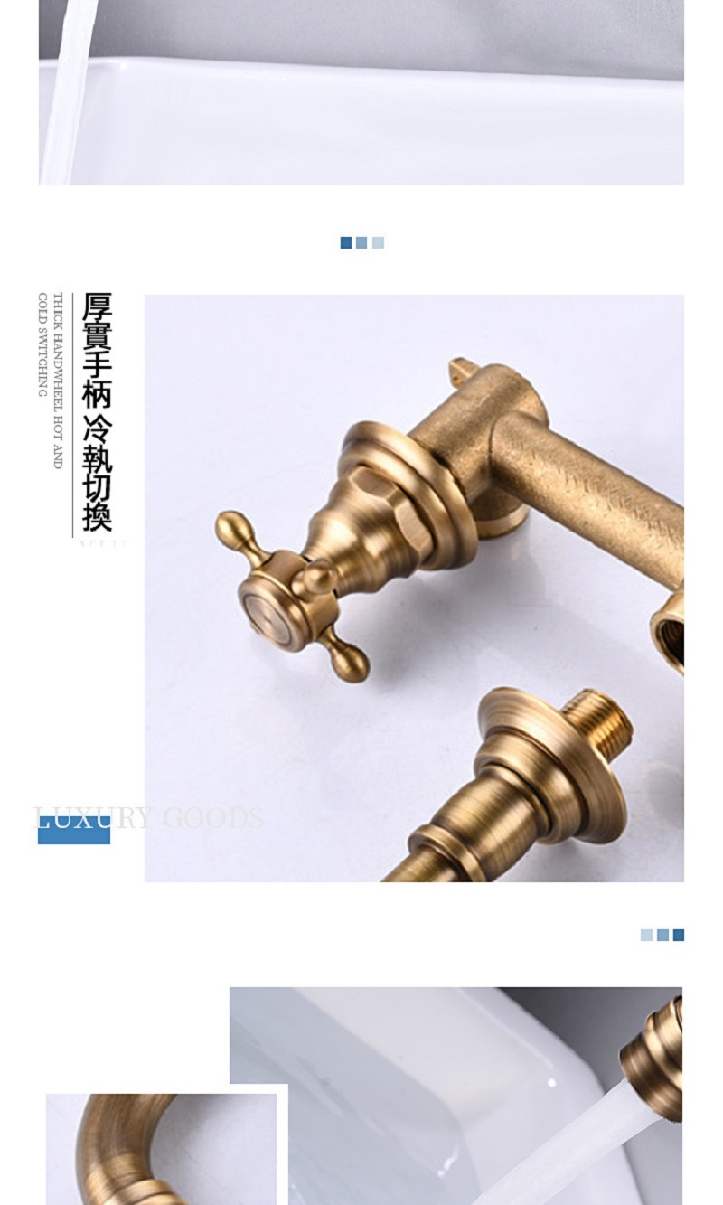 【THL小山】歐式全銅分體式三孔入牆龍頭洗臉盆面盆可旋轉冷熱雙控龍頭