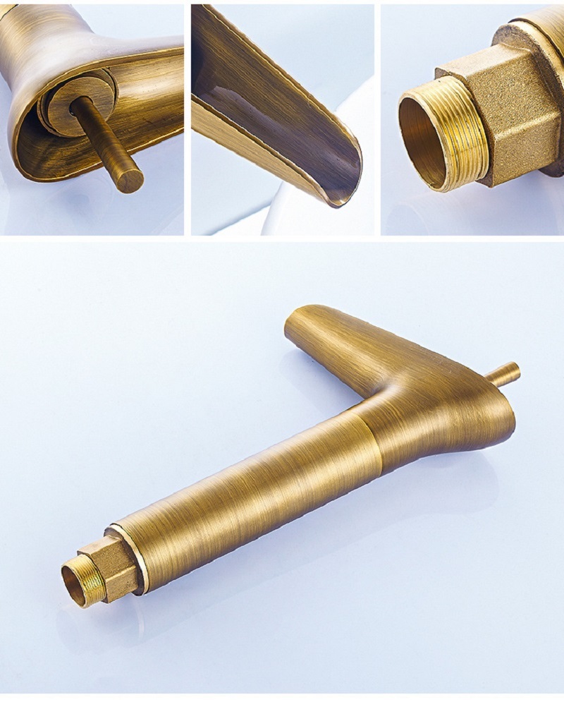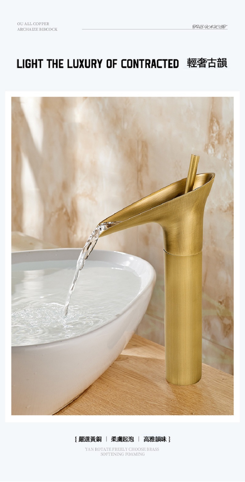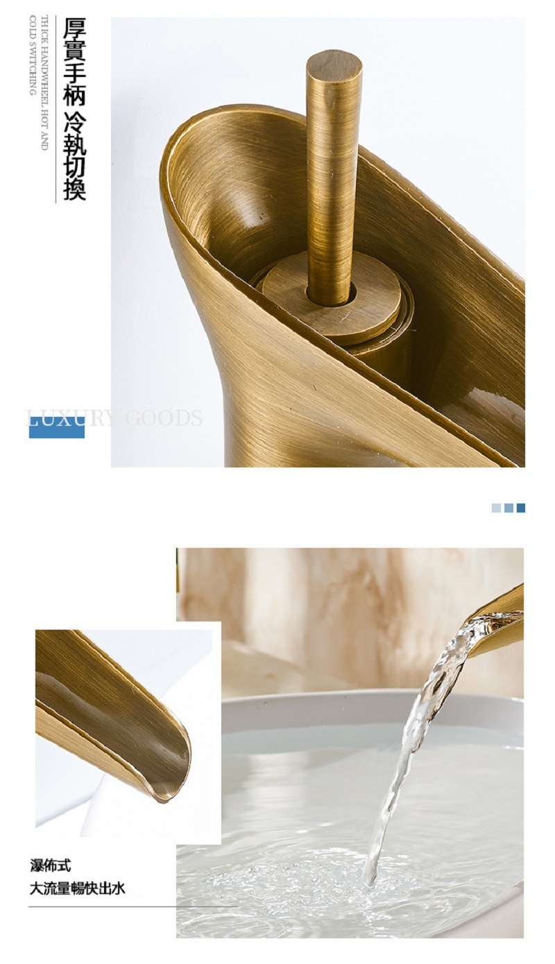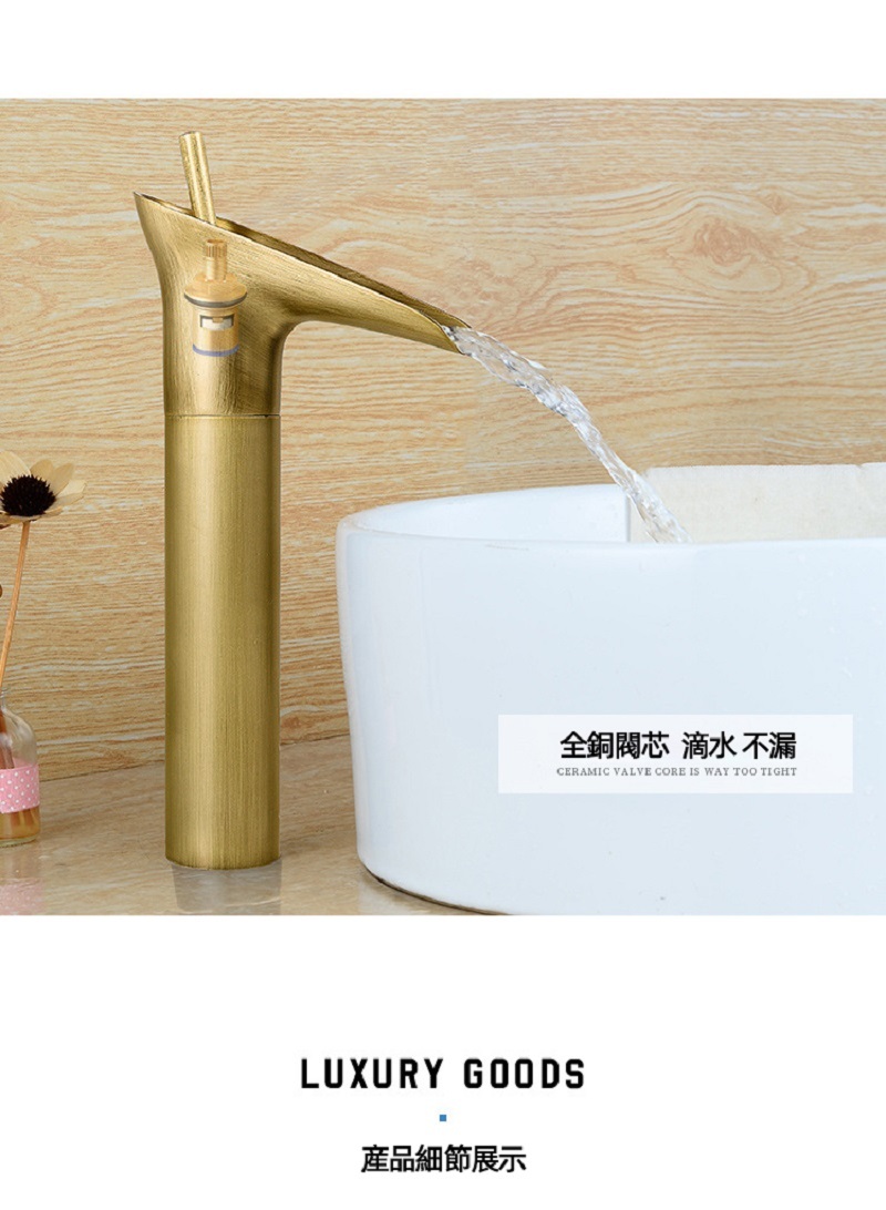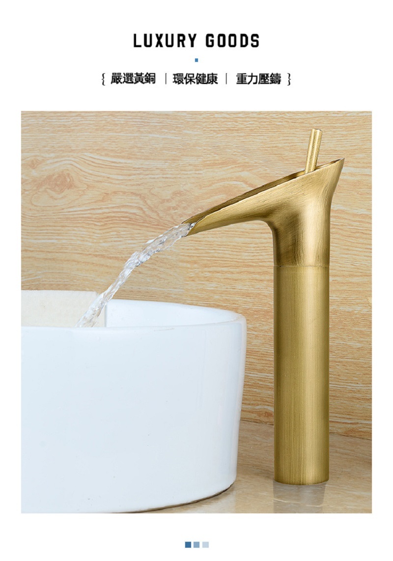 【小山THL】歐式台上盆 全銅洗臉盆 酒杯水龍頭 衛生間 仿古冷熱水瀑布面盆水龍頭