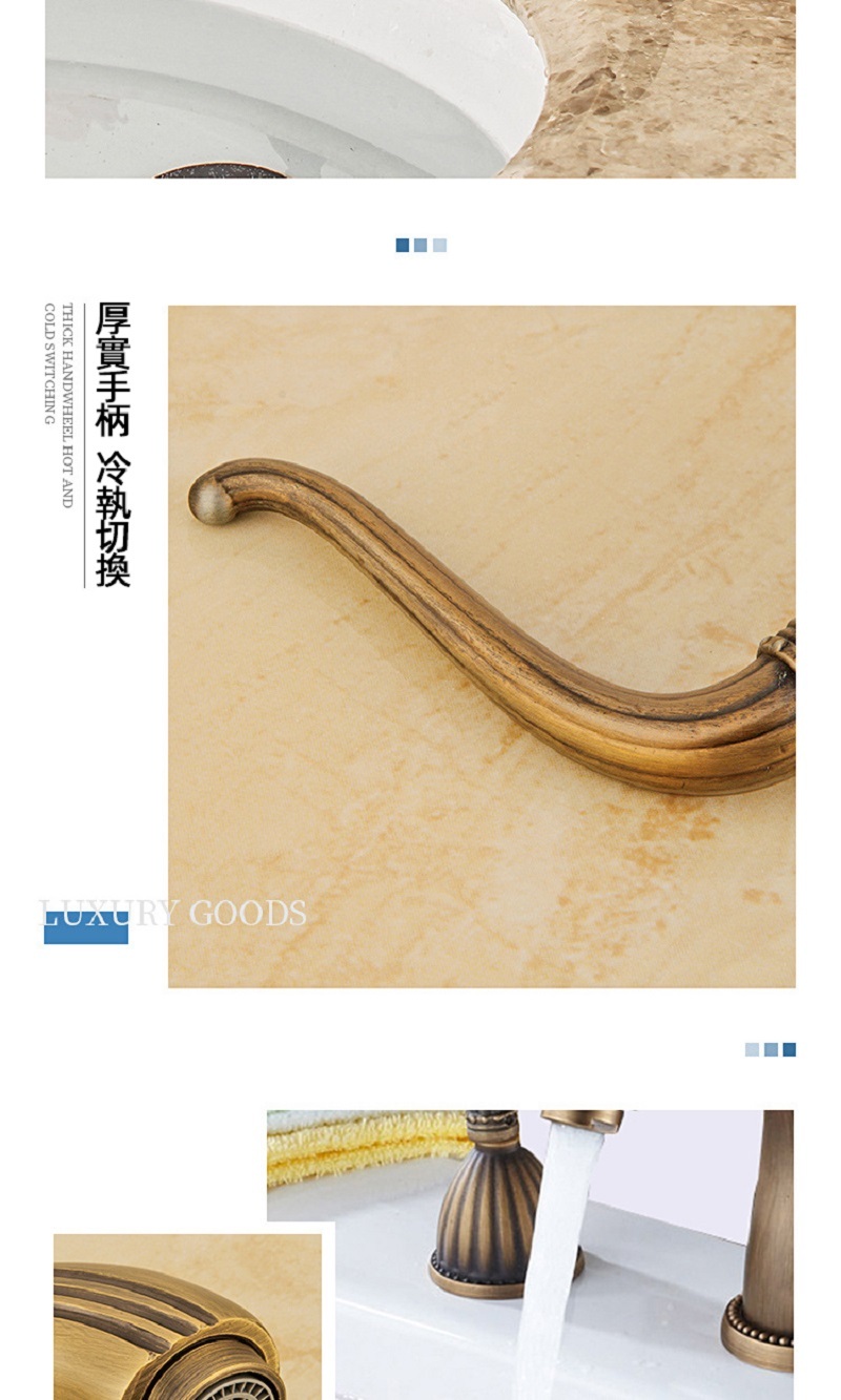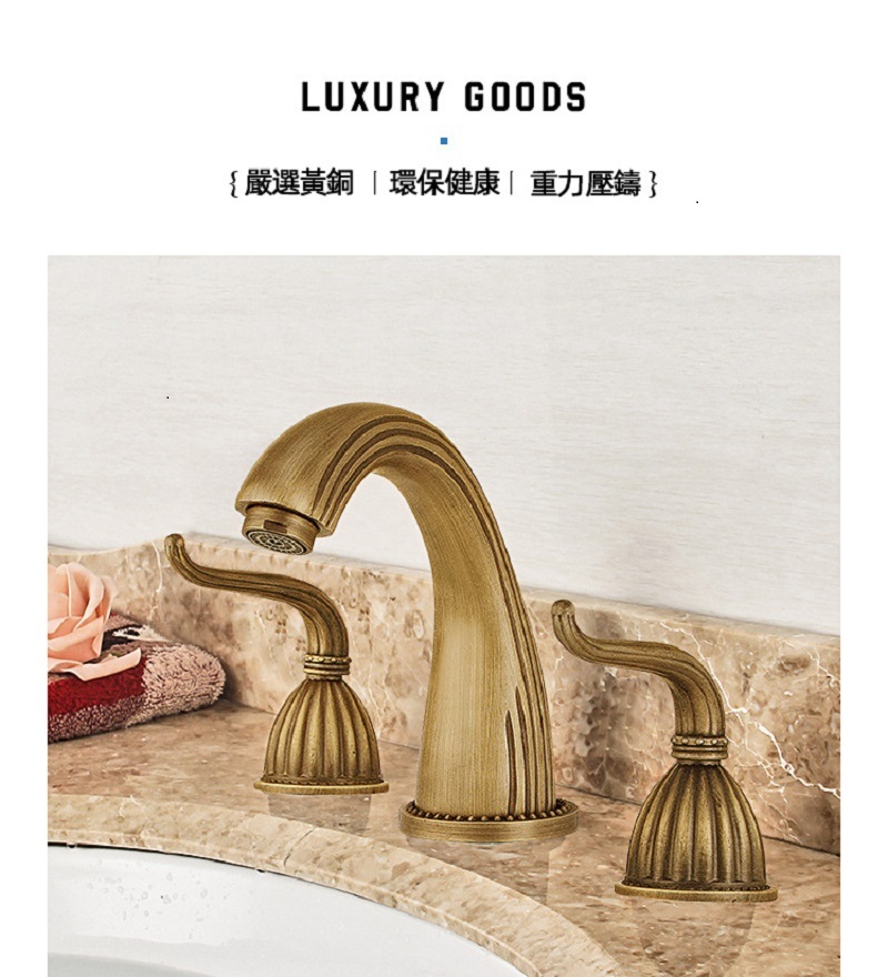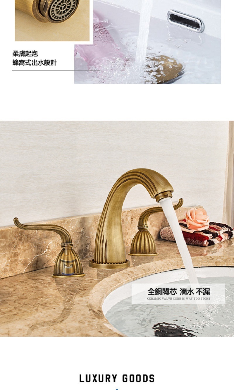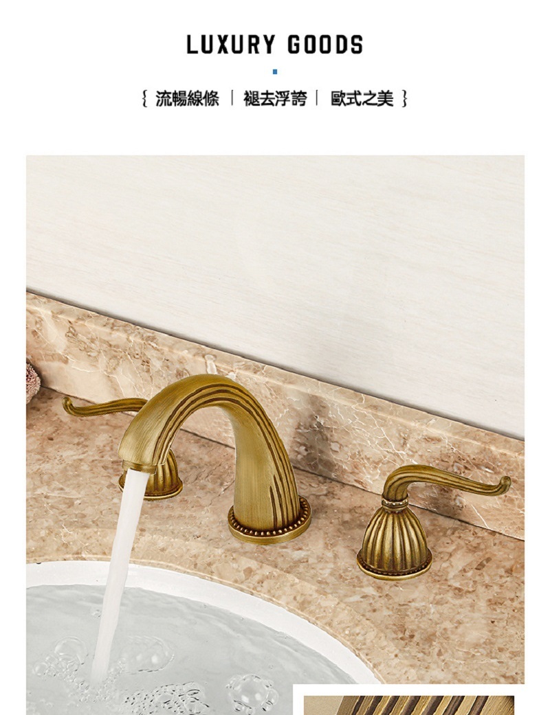 【小山THL】法式複古 全銅面盆龍頭 三件套浴室櫃台盆 分體式三孔 冷熱防濺水龍頭