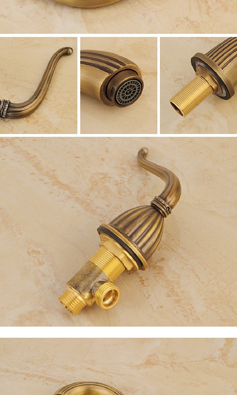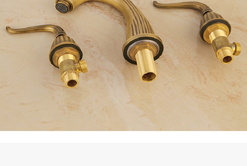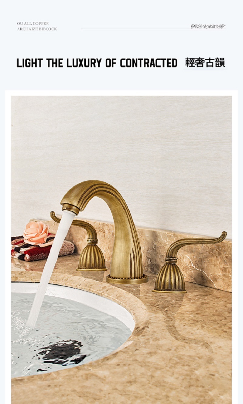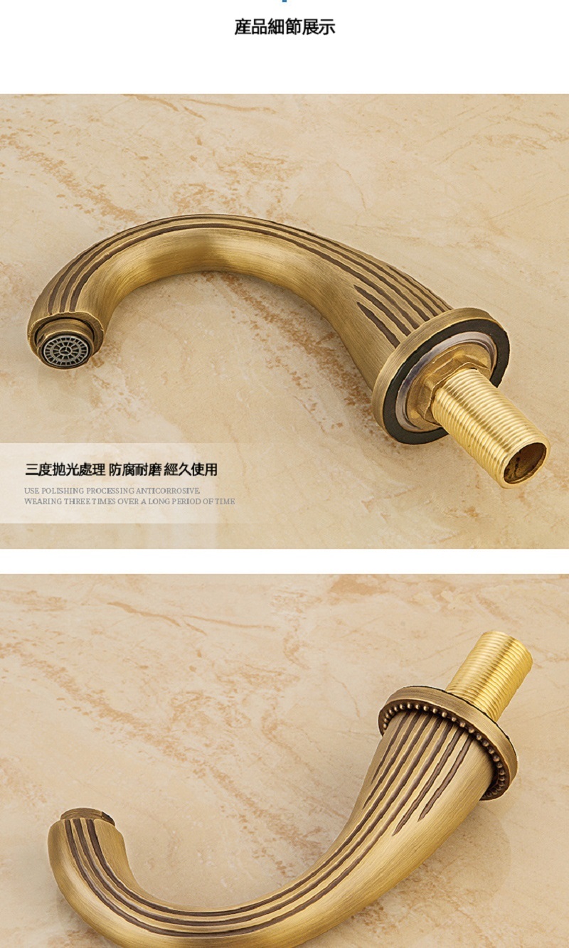 【小山THL】法式複古 全銅面盆龍頭 三件套浴室櫃台盆 分體式三孔 冷熱防濺水龍頭