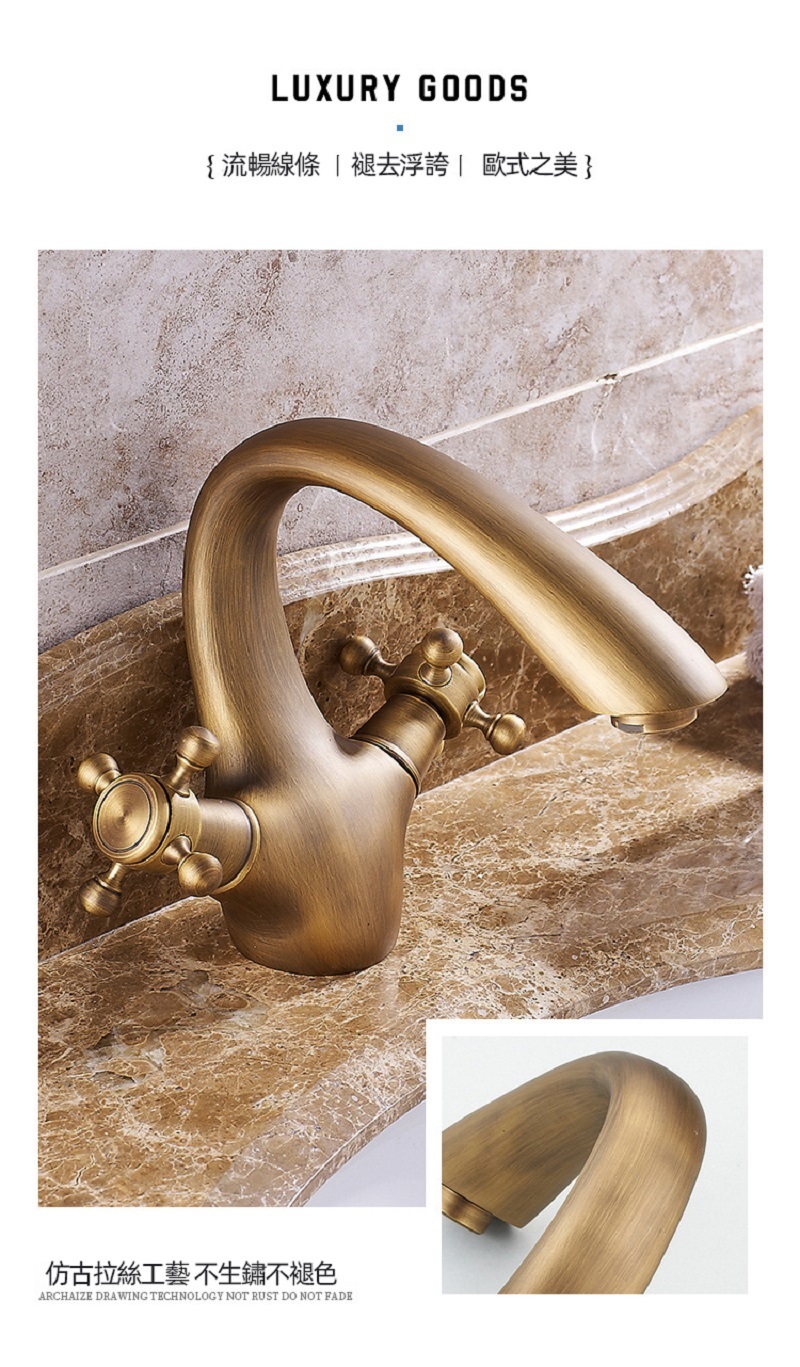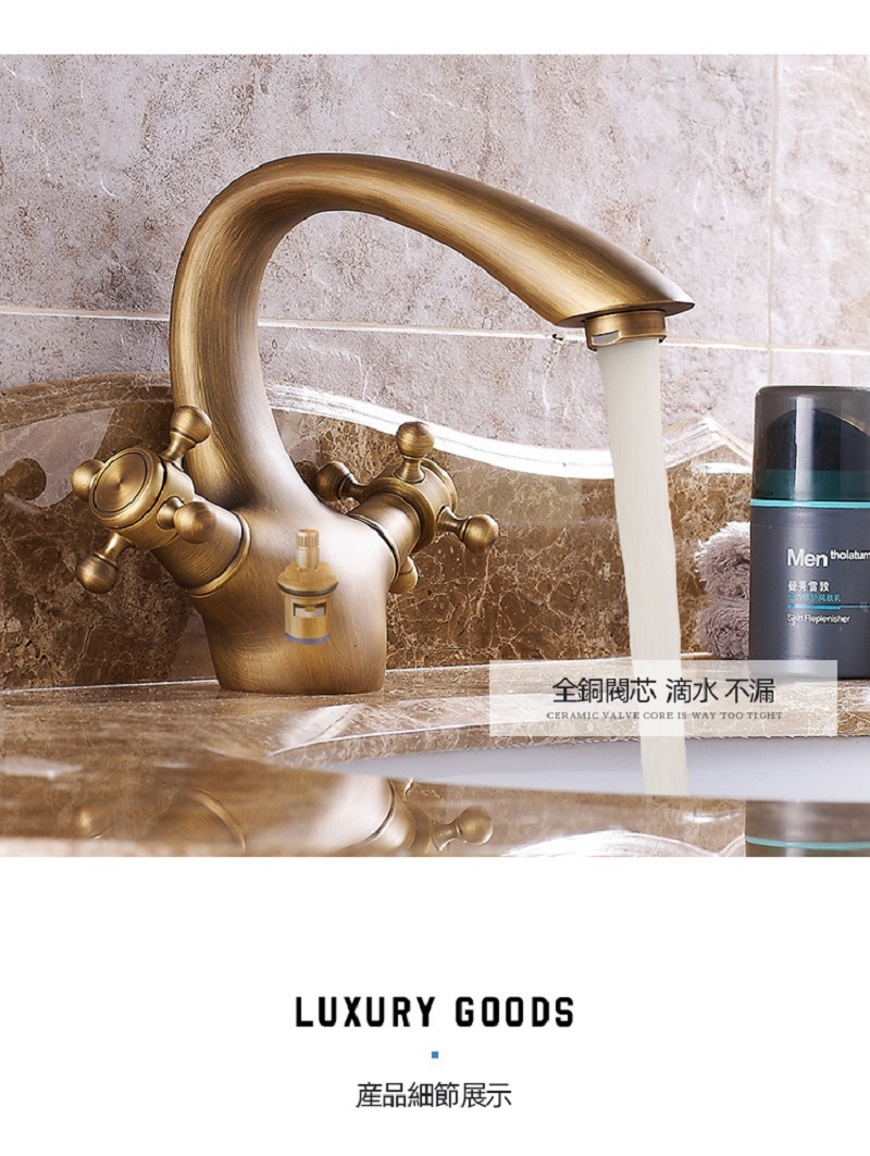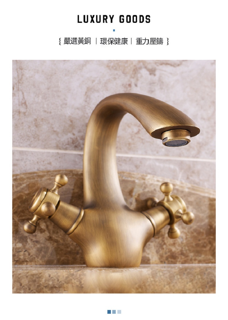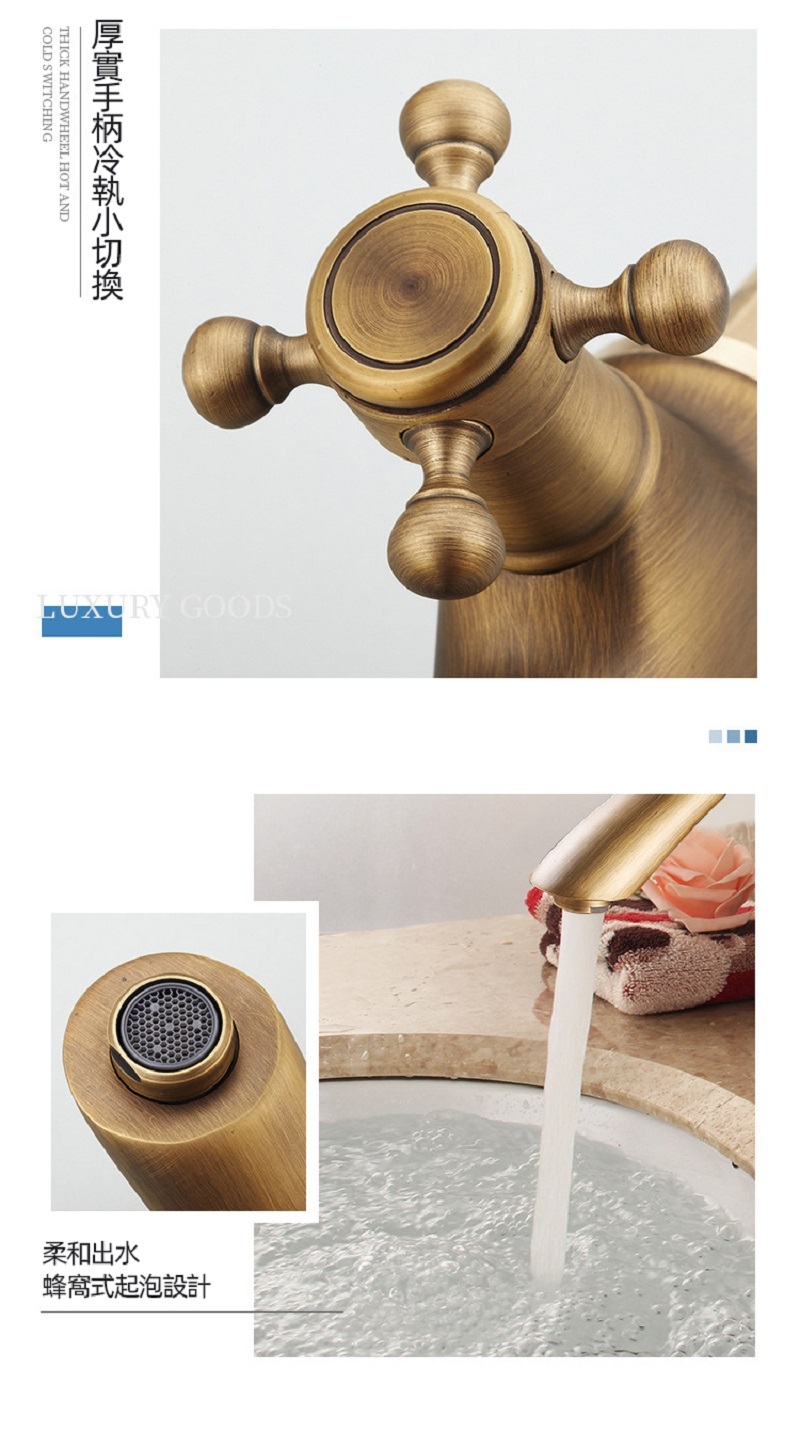 【小山THL】複古全銅雙把手單孔面盆龍頭家用浴室櫃洗臉池加高冷熱防濺水龍頭