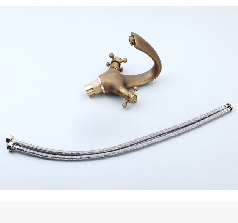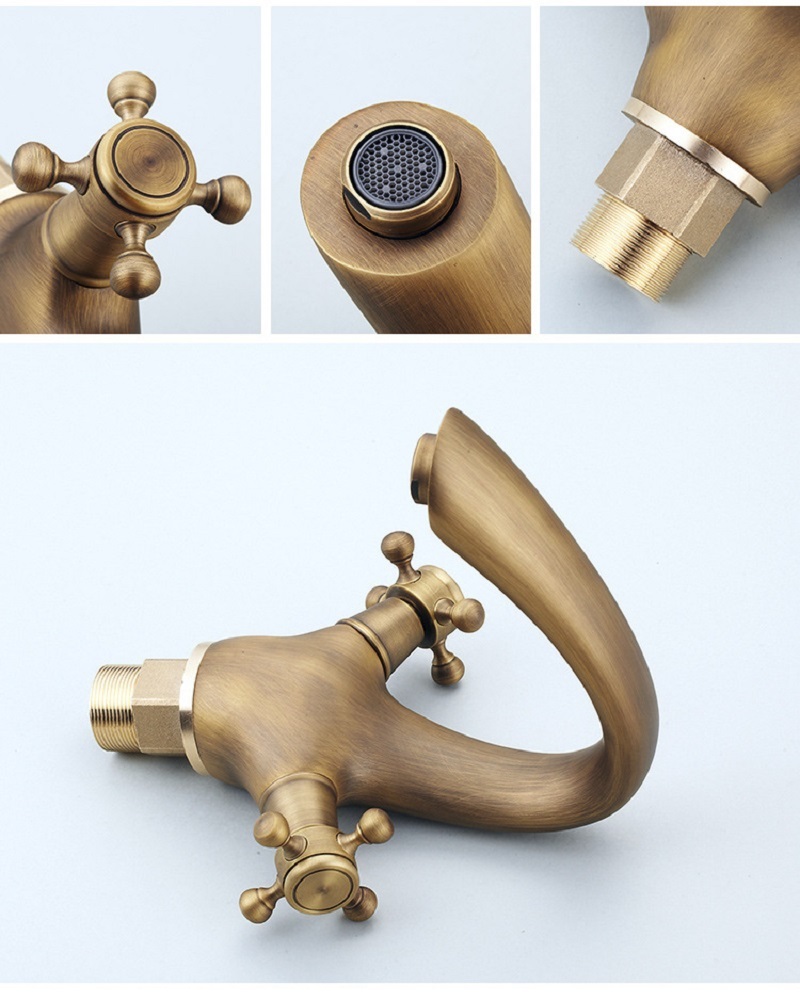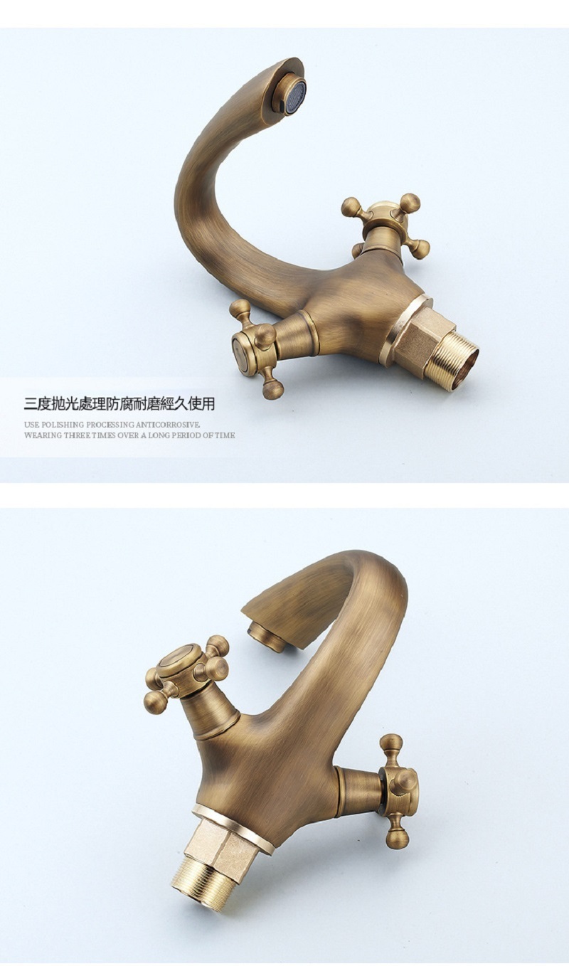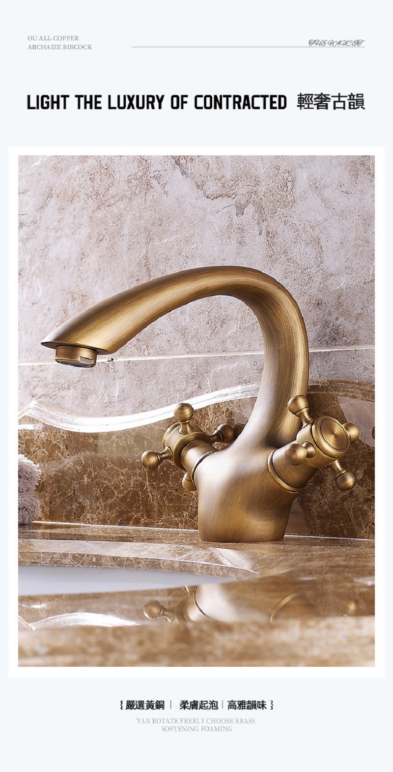 【小山THL】複古全銅雙把手單孔面盆龍頭家用浴室櫃洗臉池加高冷熱防濺水龍頭