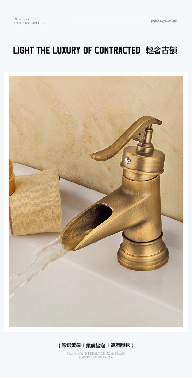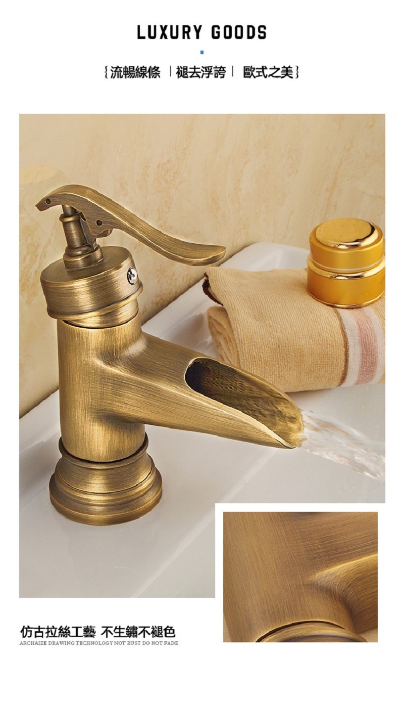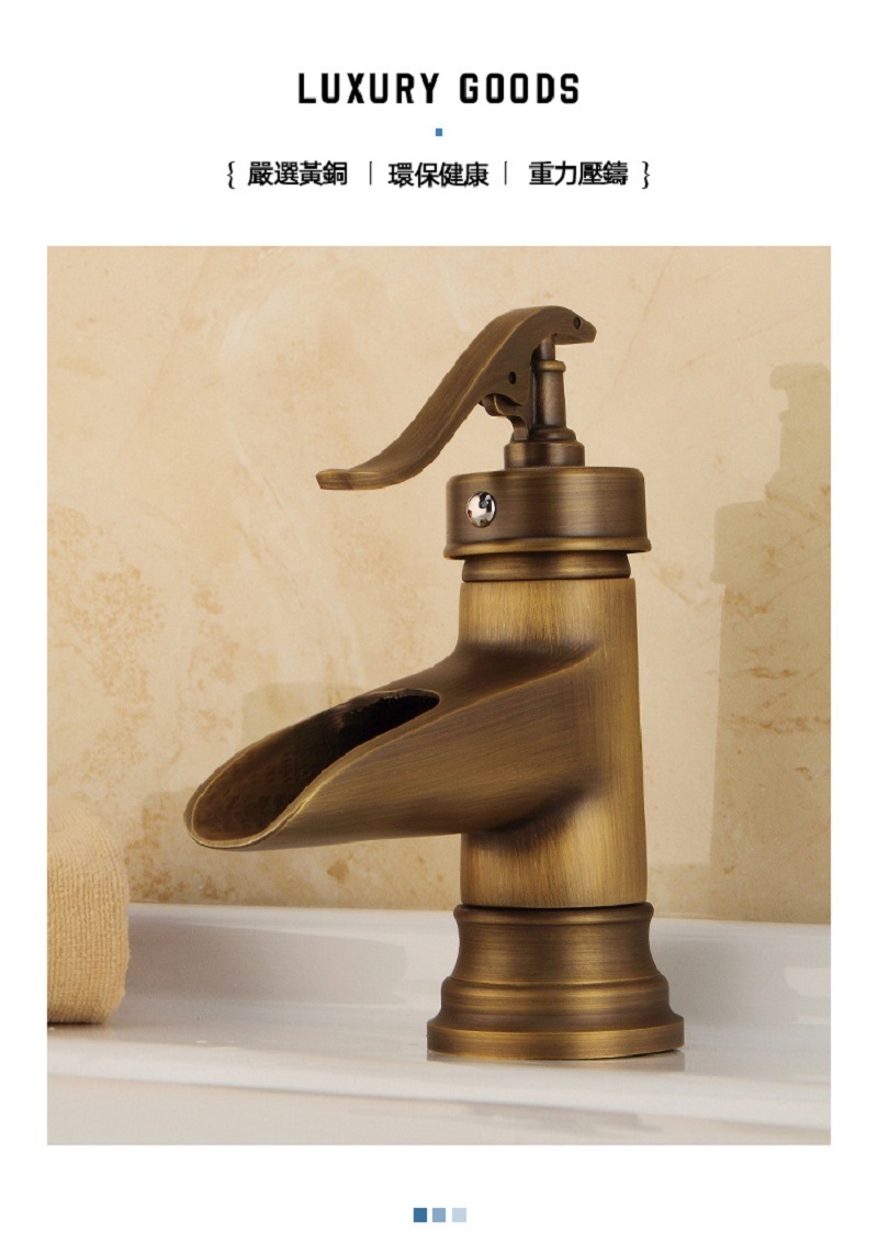 【THL小山】複古全銅面盆 龍頭衛生間 家用浴室櫃台盆 洗臉池防濺冷熱 水龍頭