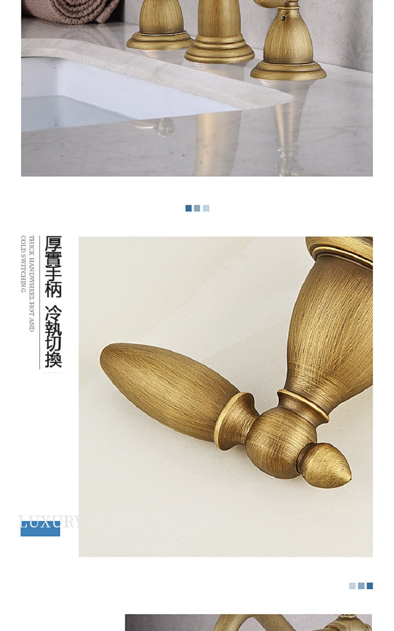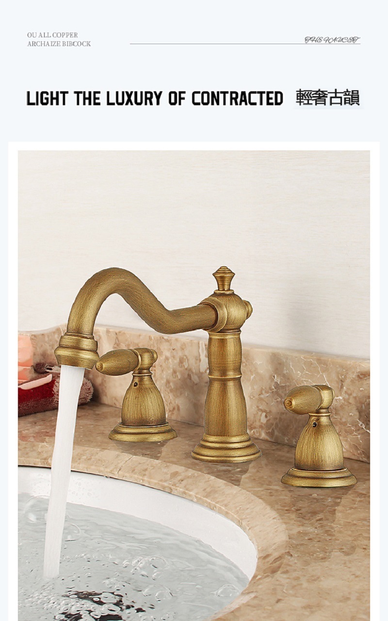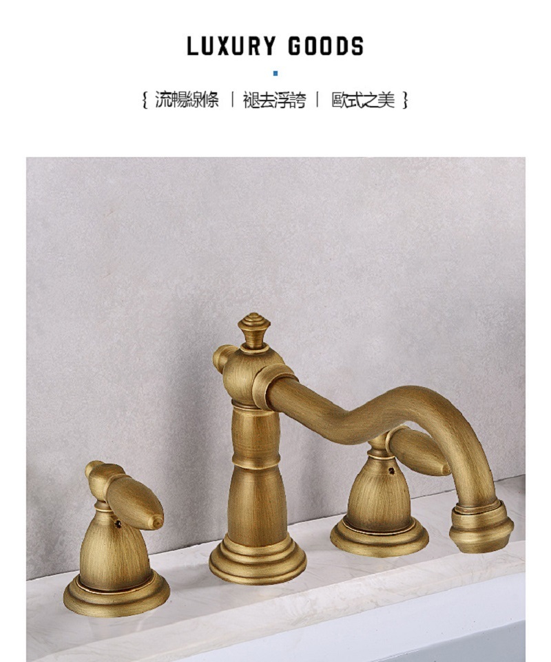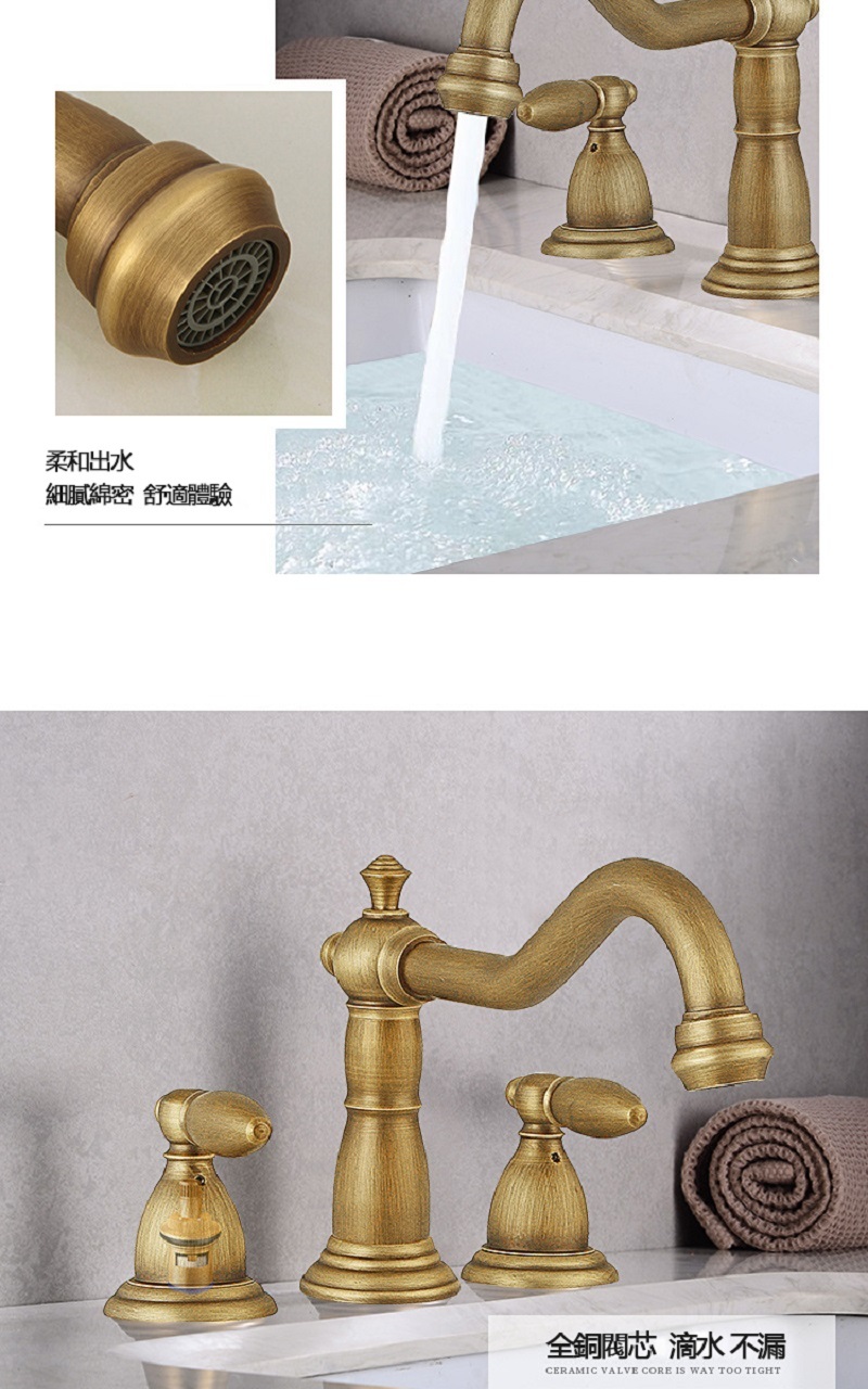 【小山THL】複古法式風全銅雙把手三孔龍頭浴室面盆分體式雙用冷熱防濺水龍頭