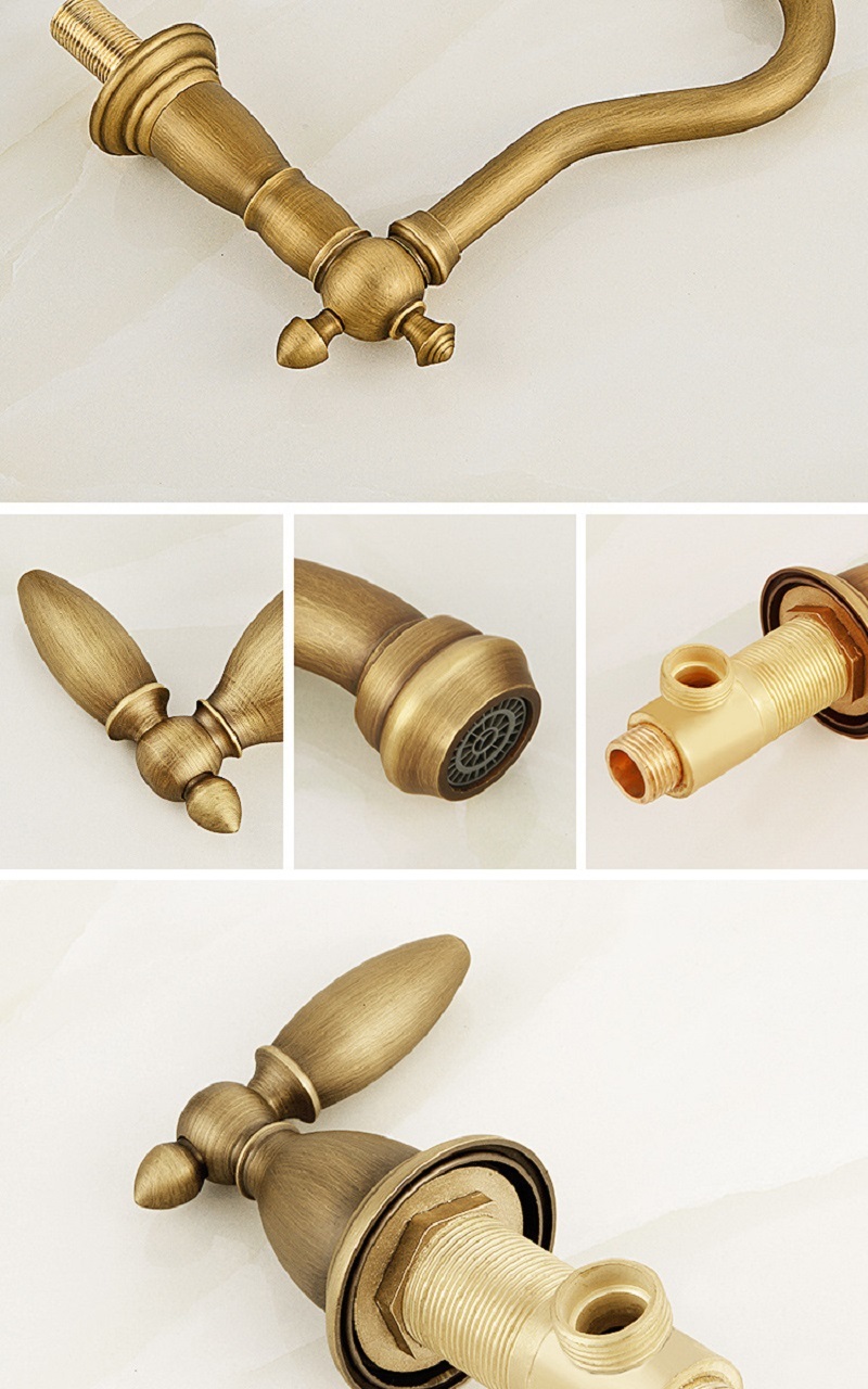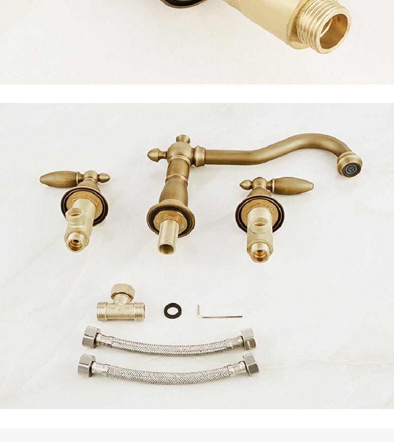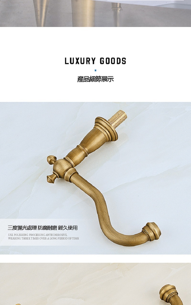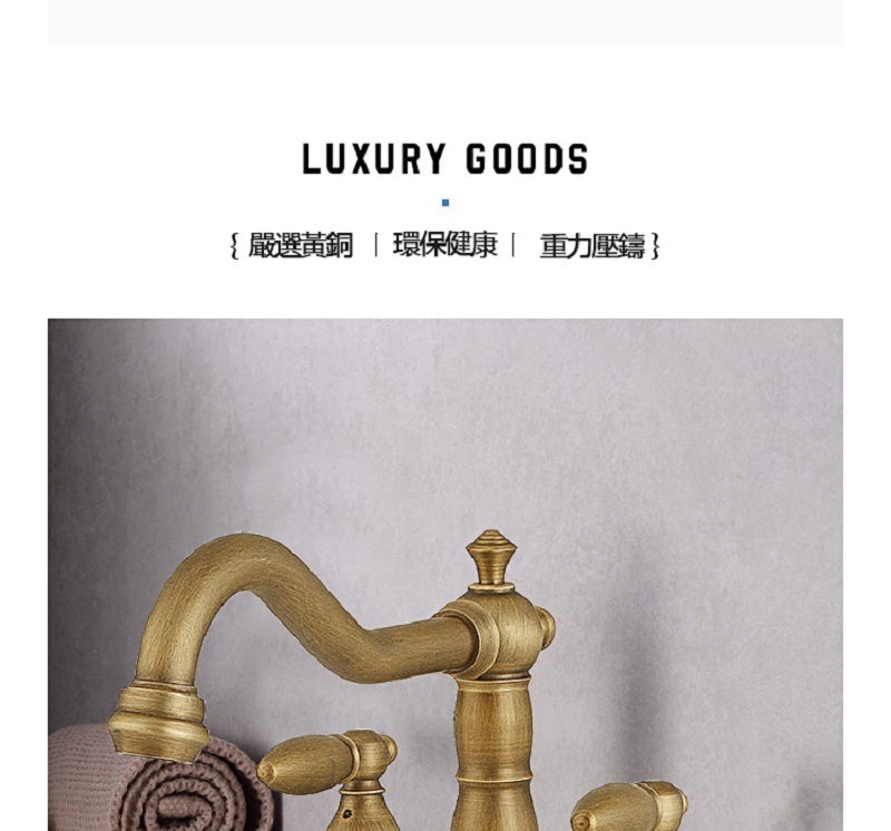 【小山THL】複古法式風全銅雙把手三孔龍頭浴室面盆分體式雙用冷熱防濺水龍頭