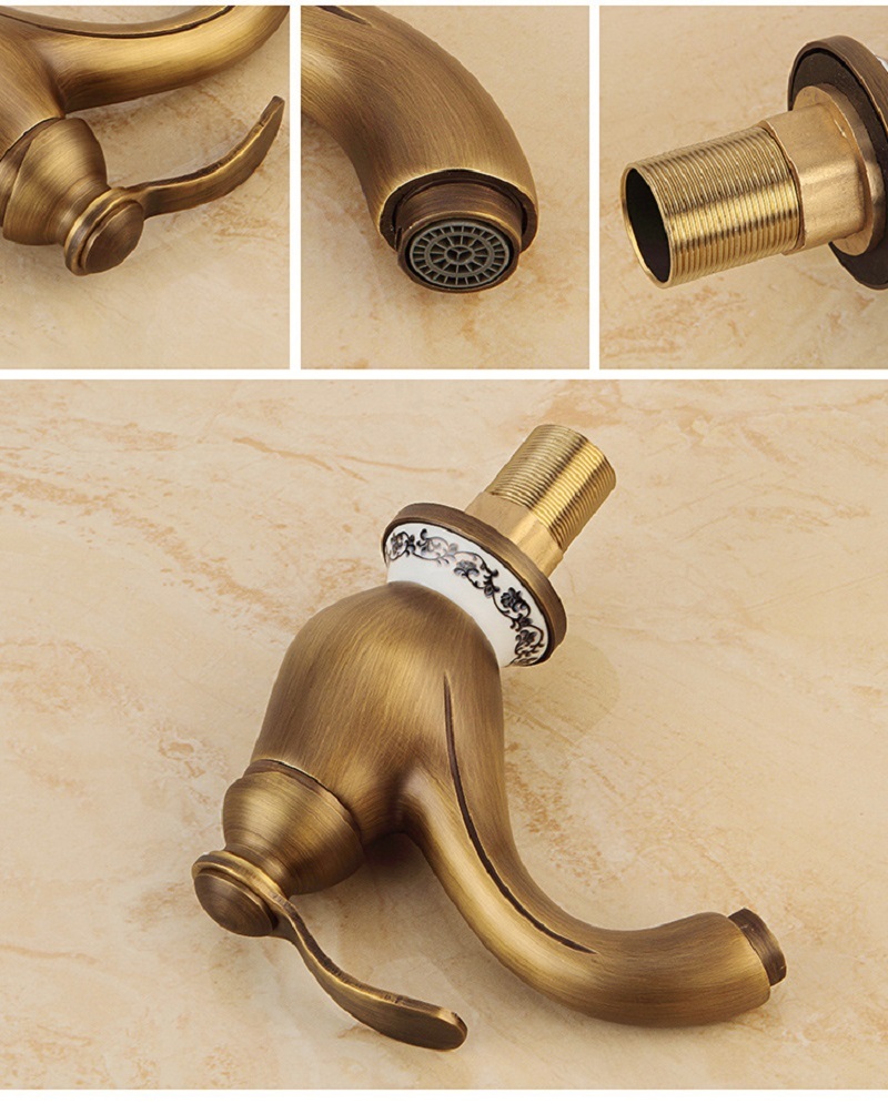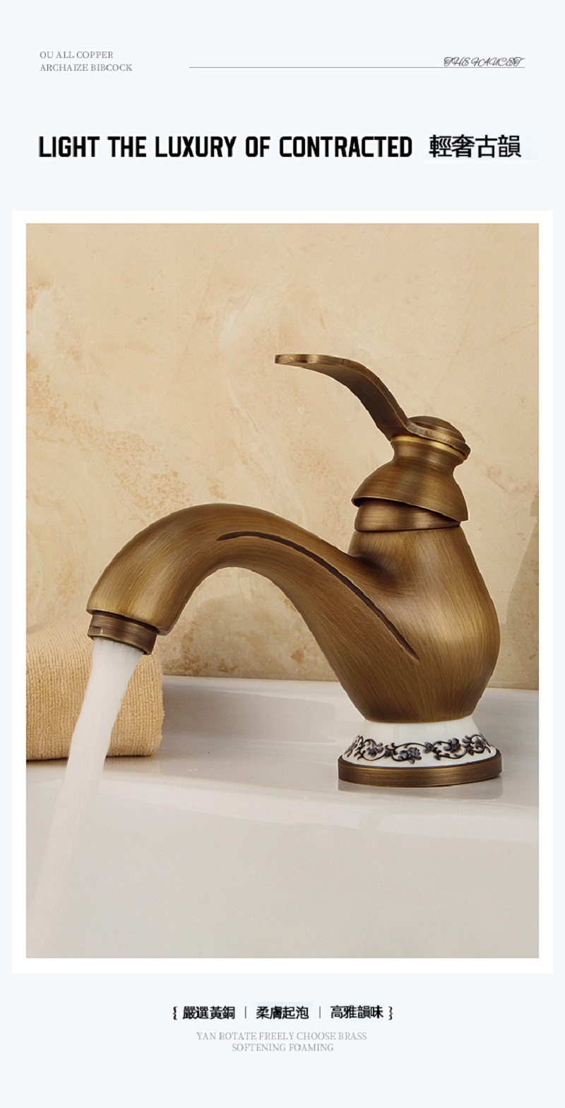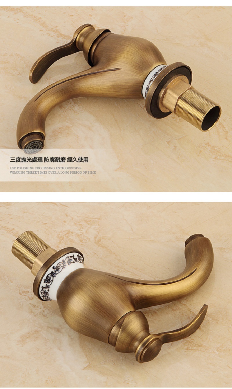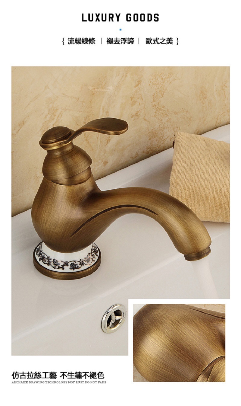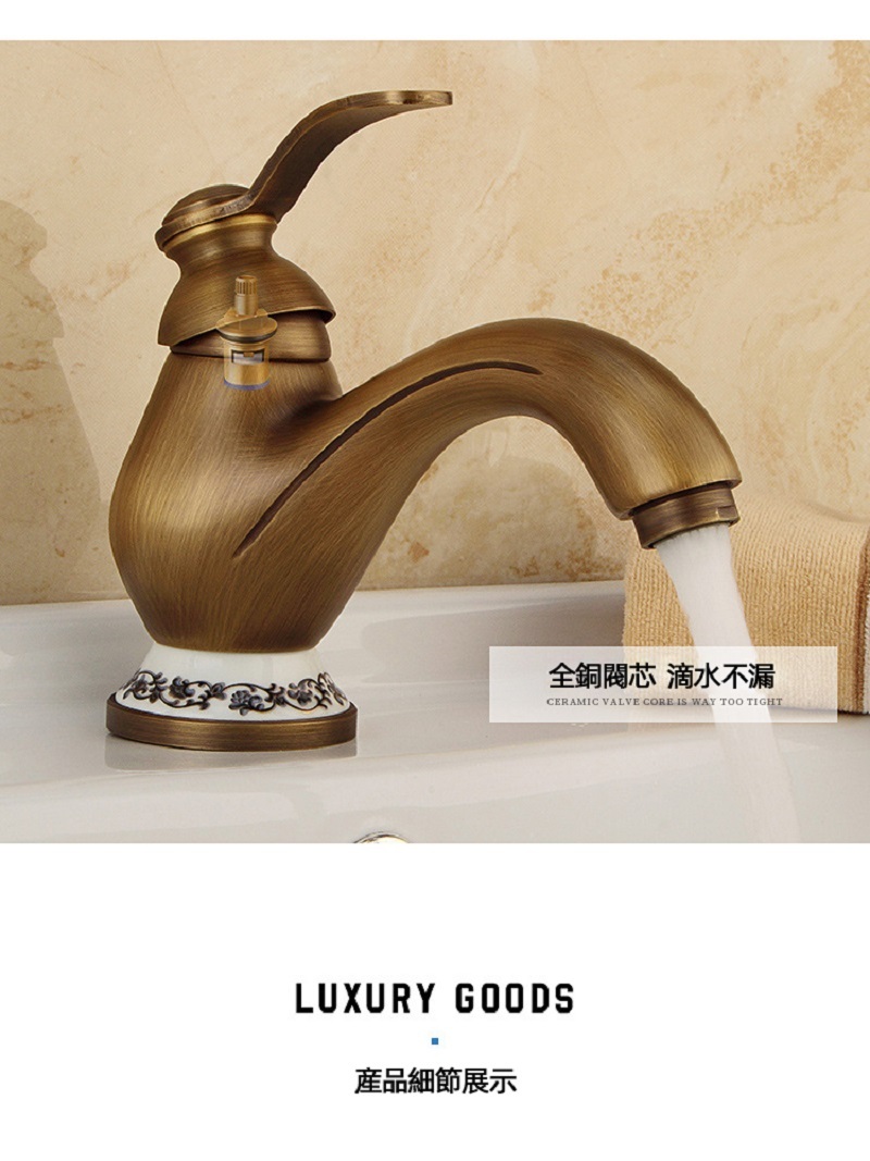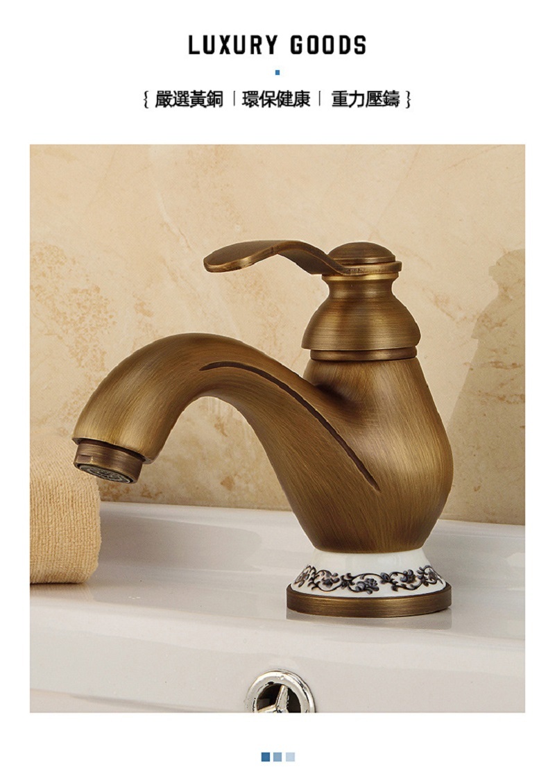 【THL小山】陶瓷閥芯 複古面盆 冷熱水龍頭 公寓衛生間洗手台上盆 黃銅水龍頭