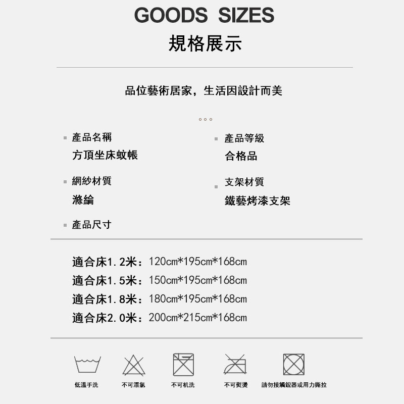 尺寸問題:網紗有彈性,為防止蚊帳掉落,會比床小2-3公分左右,只要尺寸差在±5公分內,都不會影響蚊帳正常使用的哦~
