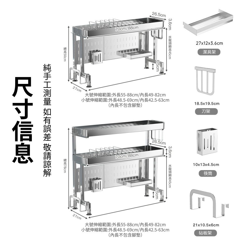 大號伸縮範圍:外長55-88公分/內長49-82公分