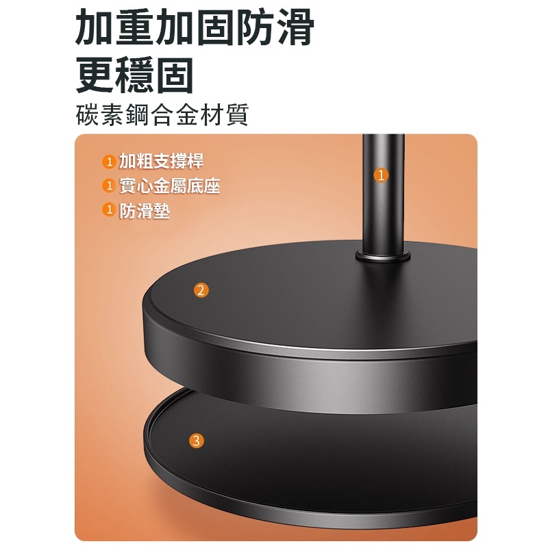 落地型:高度60-210公分(可調節)、手機桿70公分