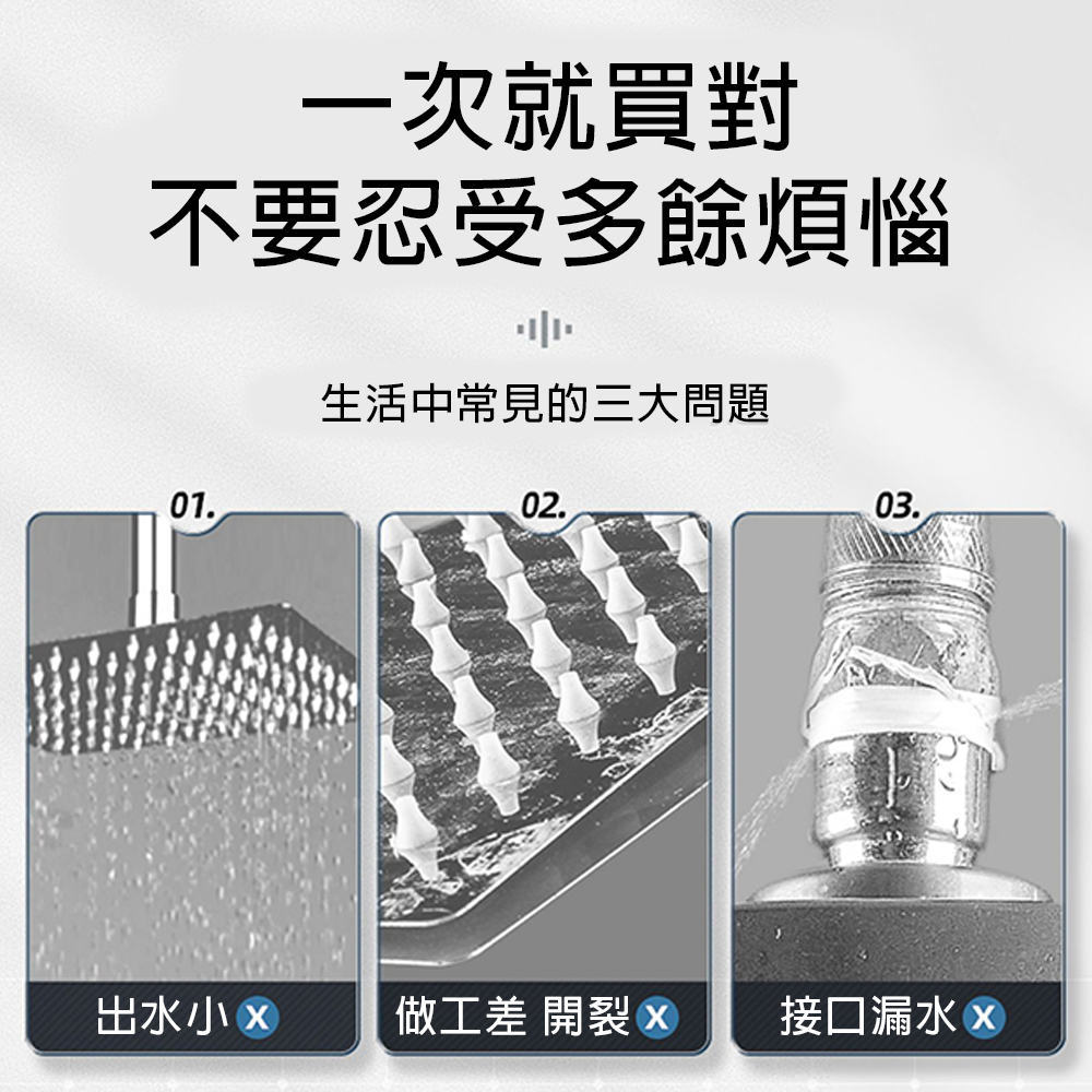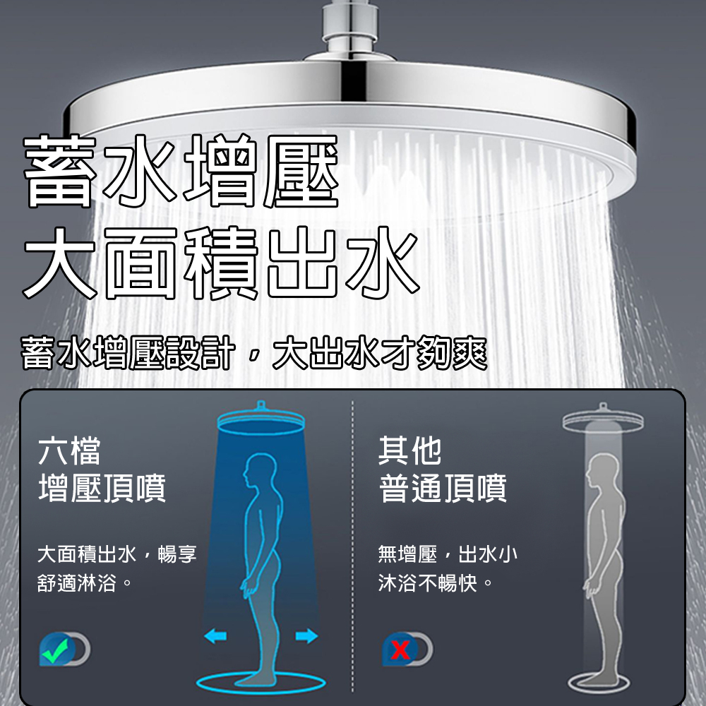 ① 六檔增壓:大面積出水 暢享舒適沐浴