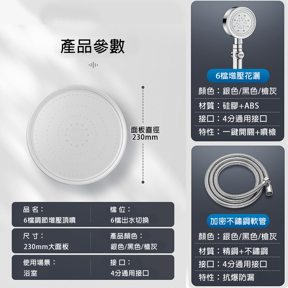 💎產品名稱:六檔增壓花灑