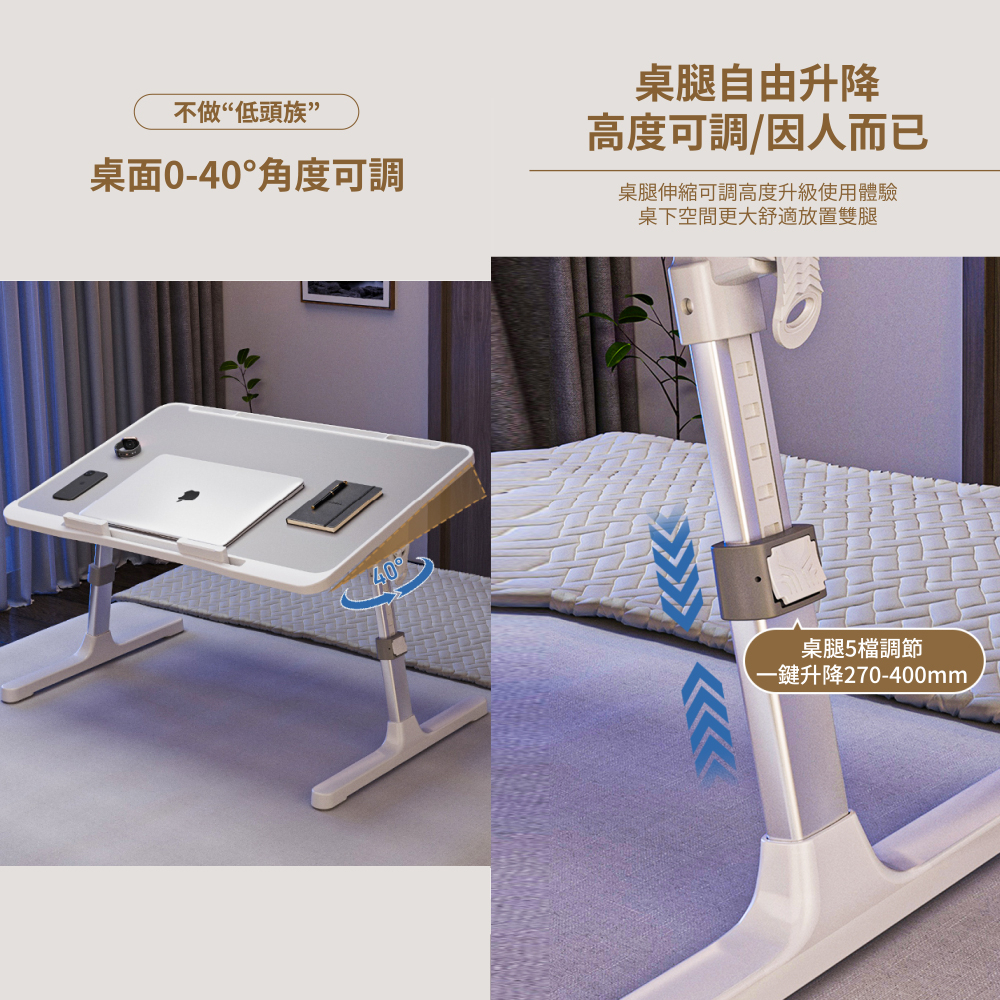 一鍵升降270- 400mm ,桌腿伸縮可調高度升級使用體驗,桌下空間更大舒適放置雙腿。