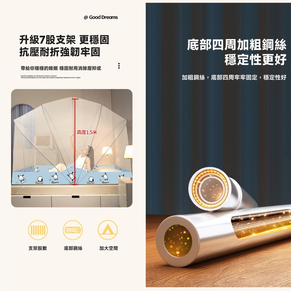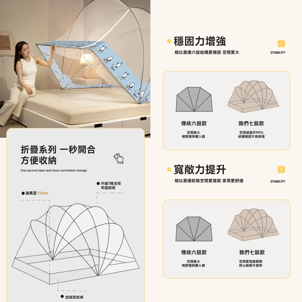 購買了一頂2股支撐骨的折疊蚊帳