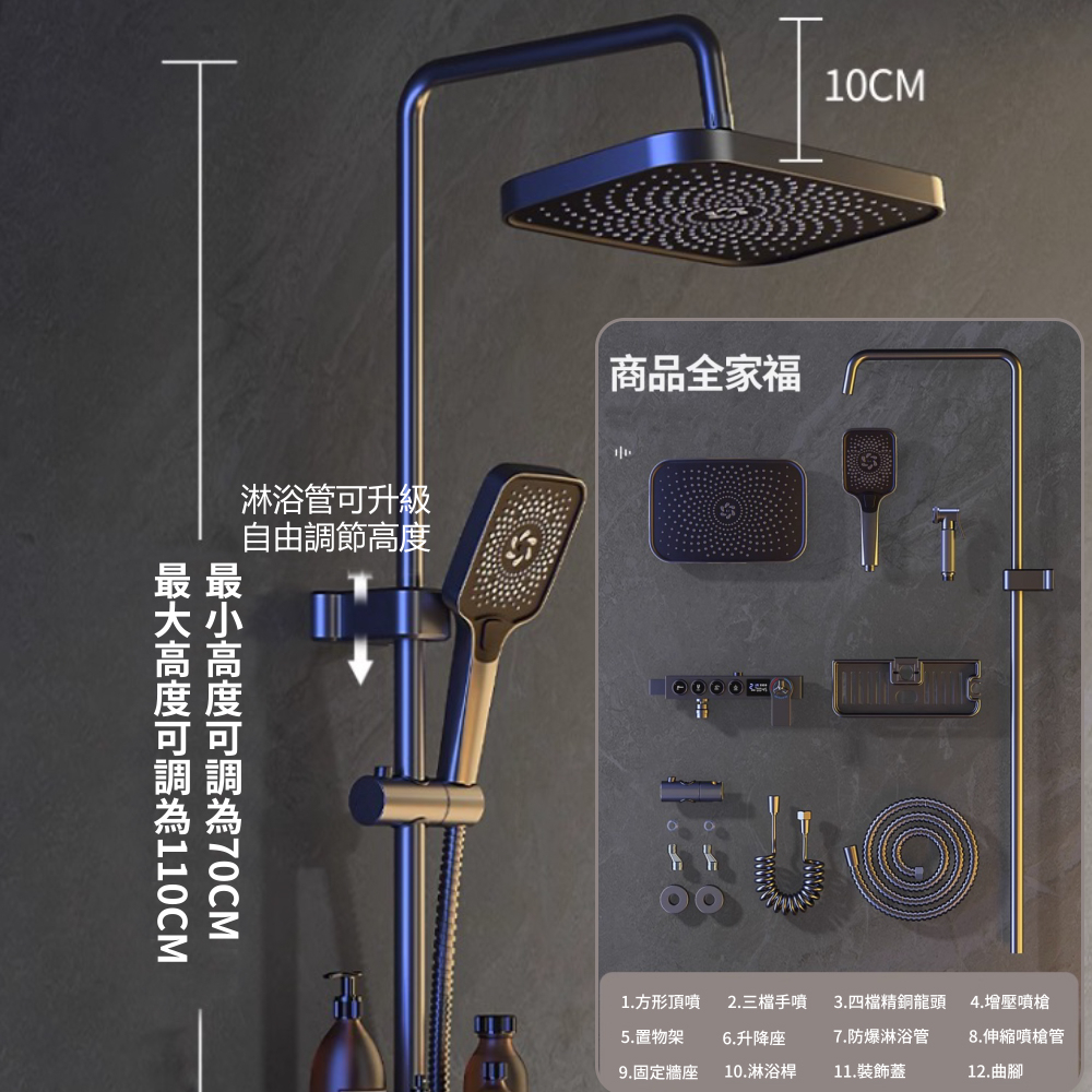 ➭淋浴桿伸縮高度範圍:70-110公分