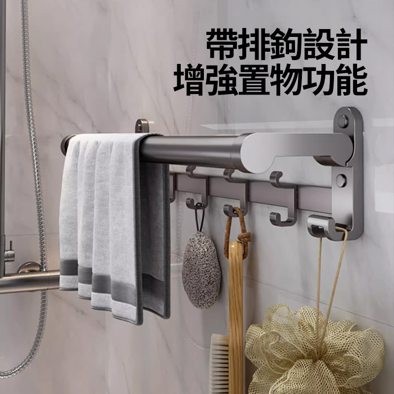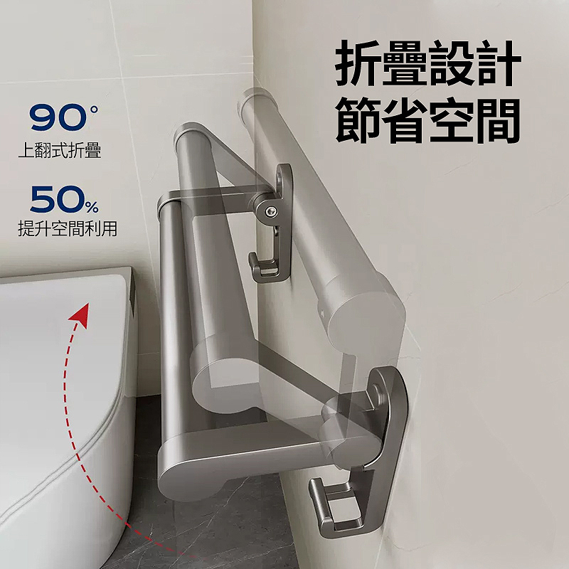 商品名稱:折疊扶手毛巾桿商品材質:加厚鋁合金商品工藝:陽極氧化商品尺寸:50CM適用環境:浴室/玄關/衛生間等安裝方式:打孔/免打孔