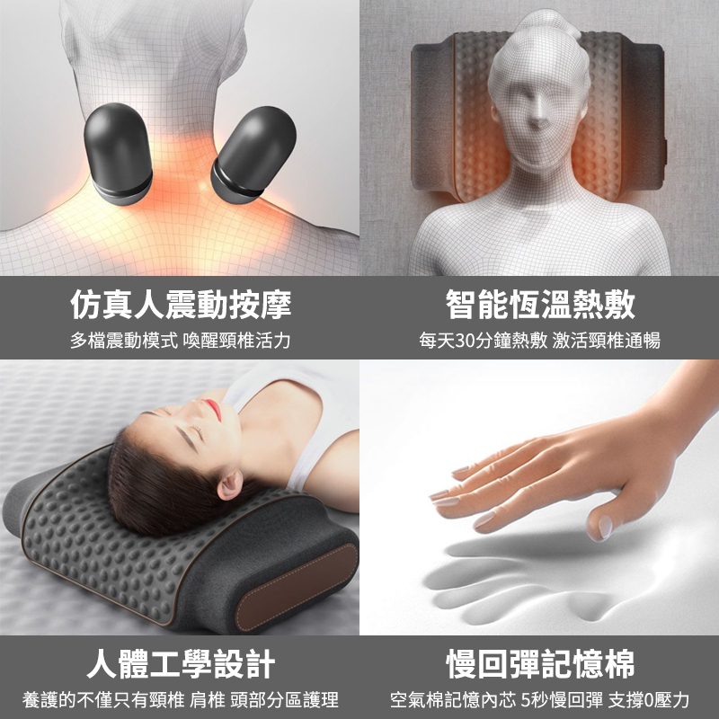 【宅造印象】升級頸椎按摩枕 肩頸按摩器(震動 熱敷 物理拉伸)