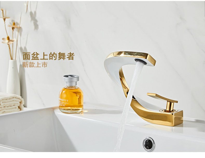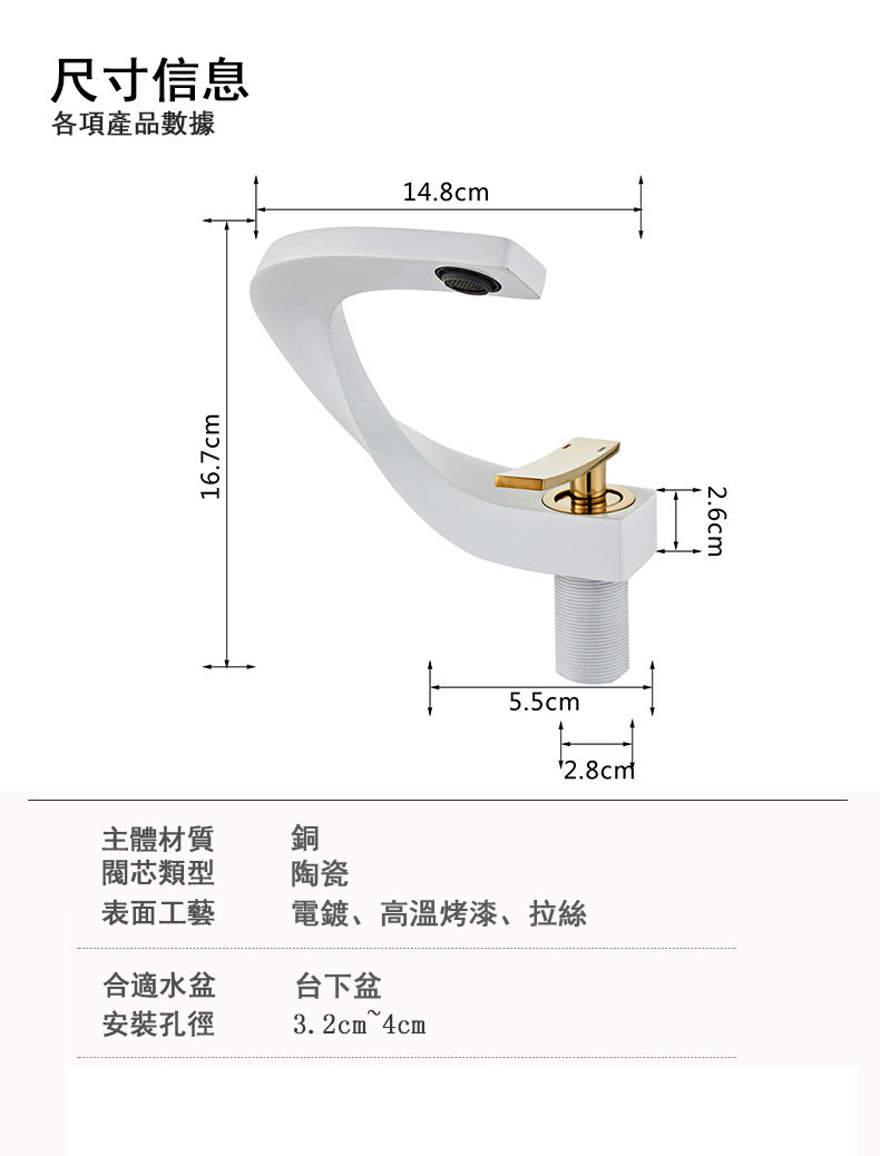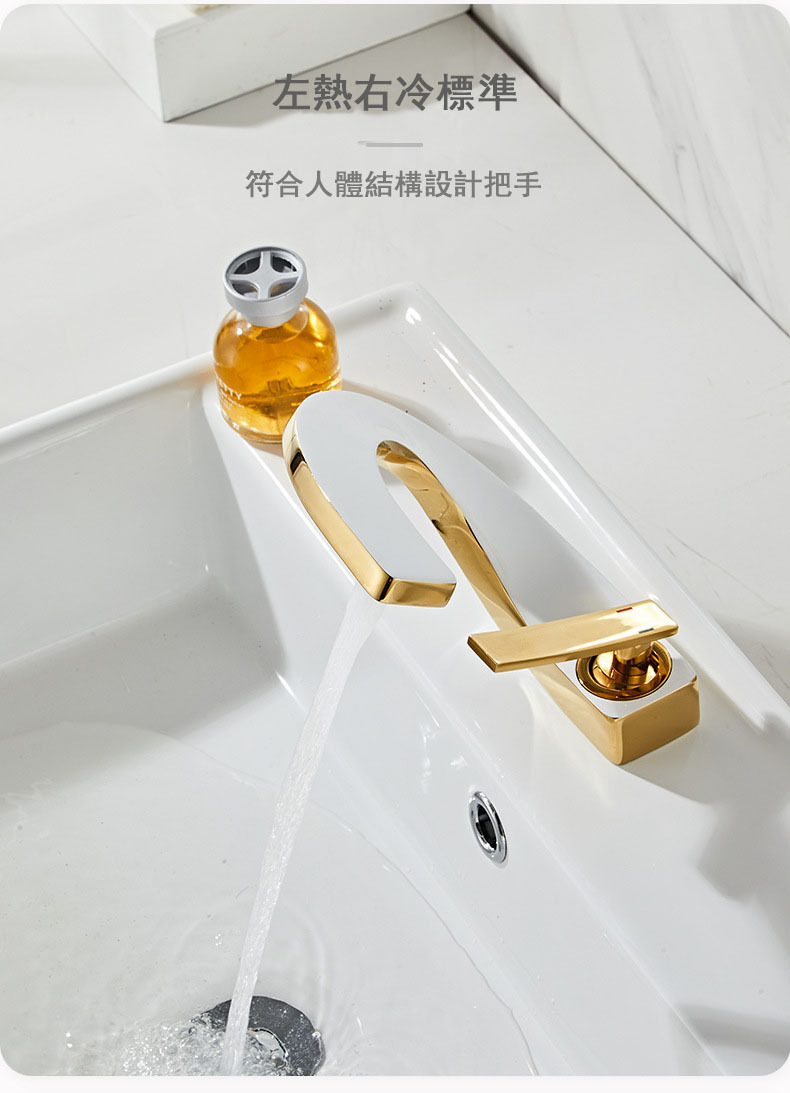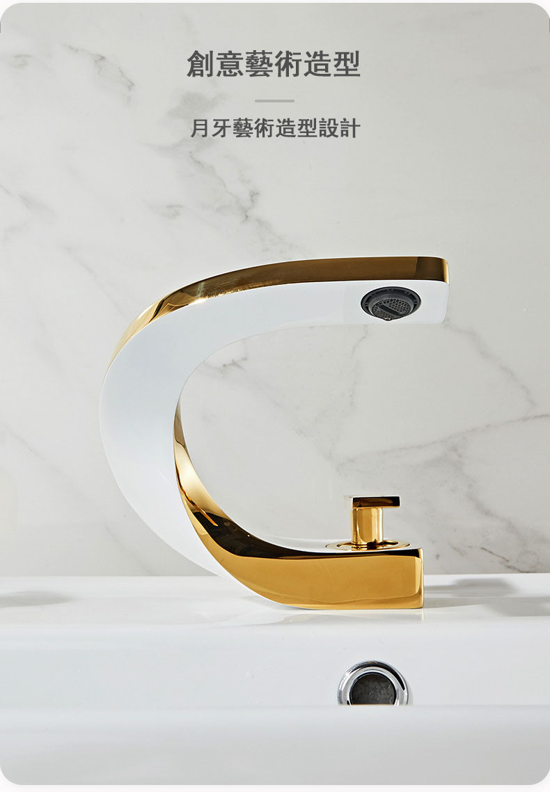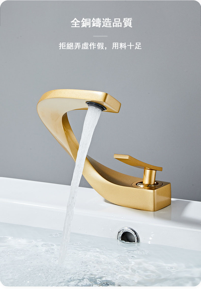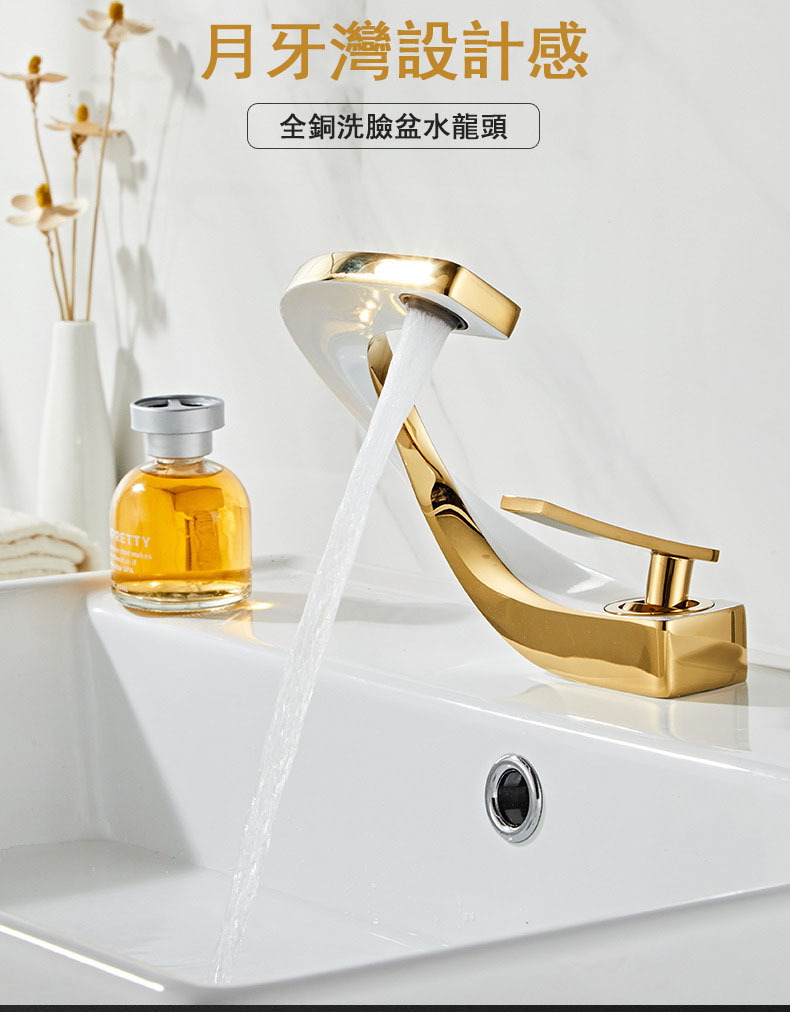 【小山THL】全銅月牙式龍頭 家用浴室衛生間台盆龍頭 單孔浴室櫃洗漱台洗手池冷熱水龍頭