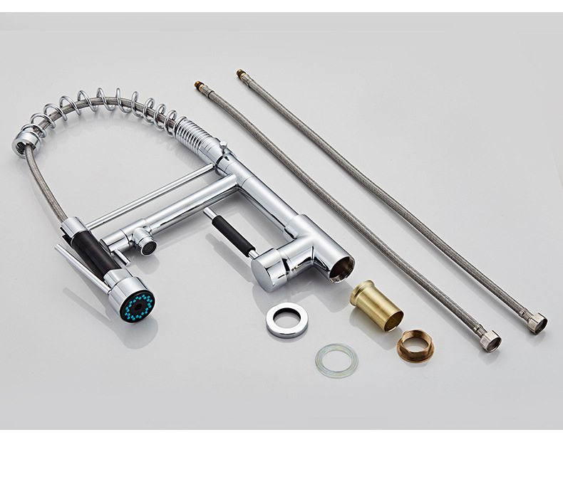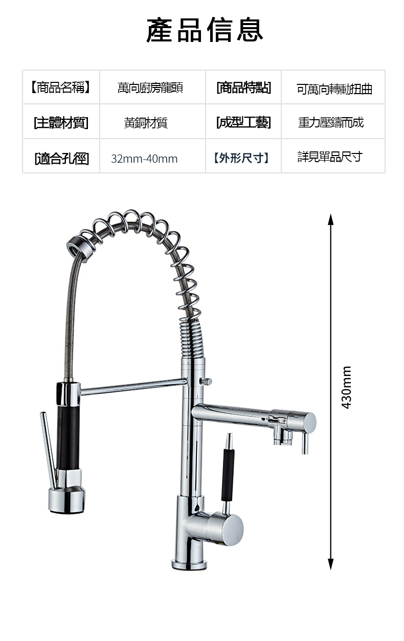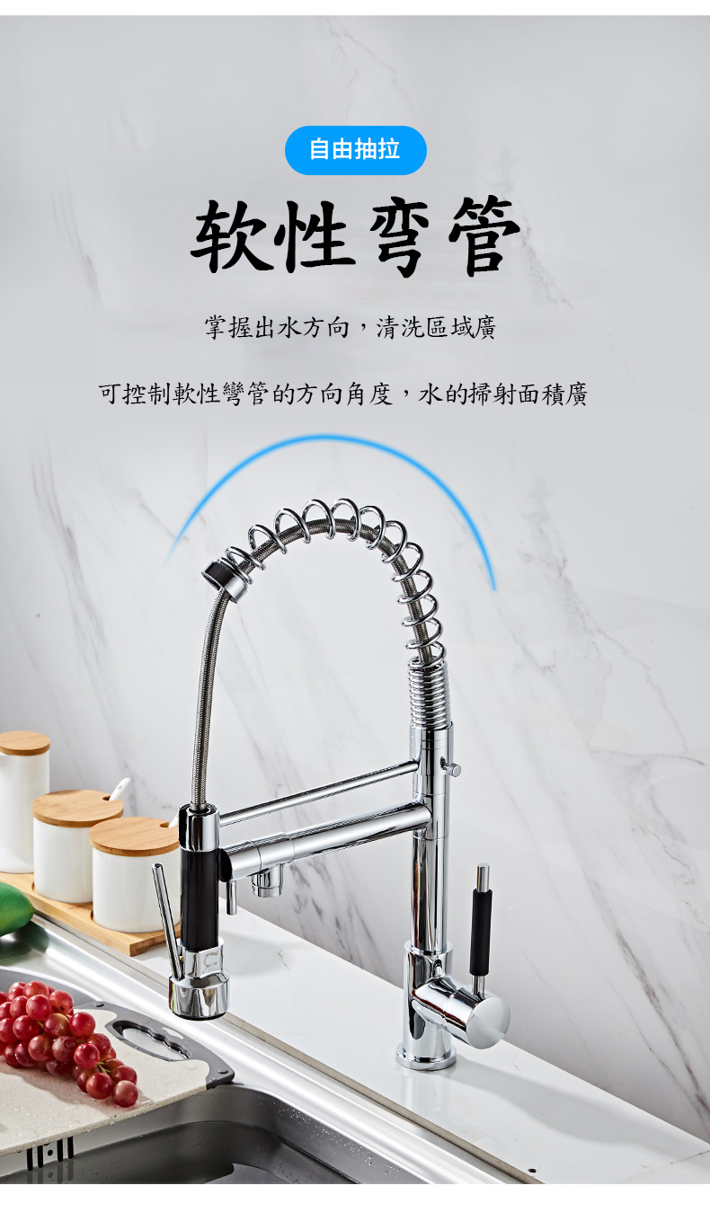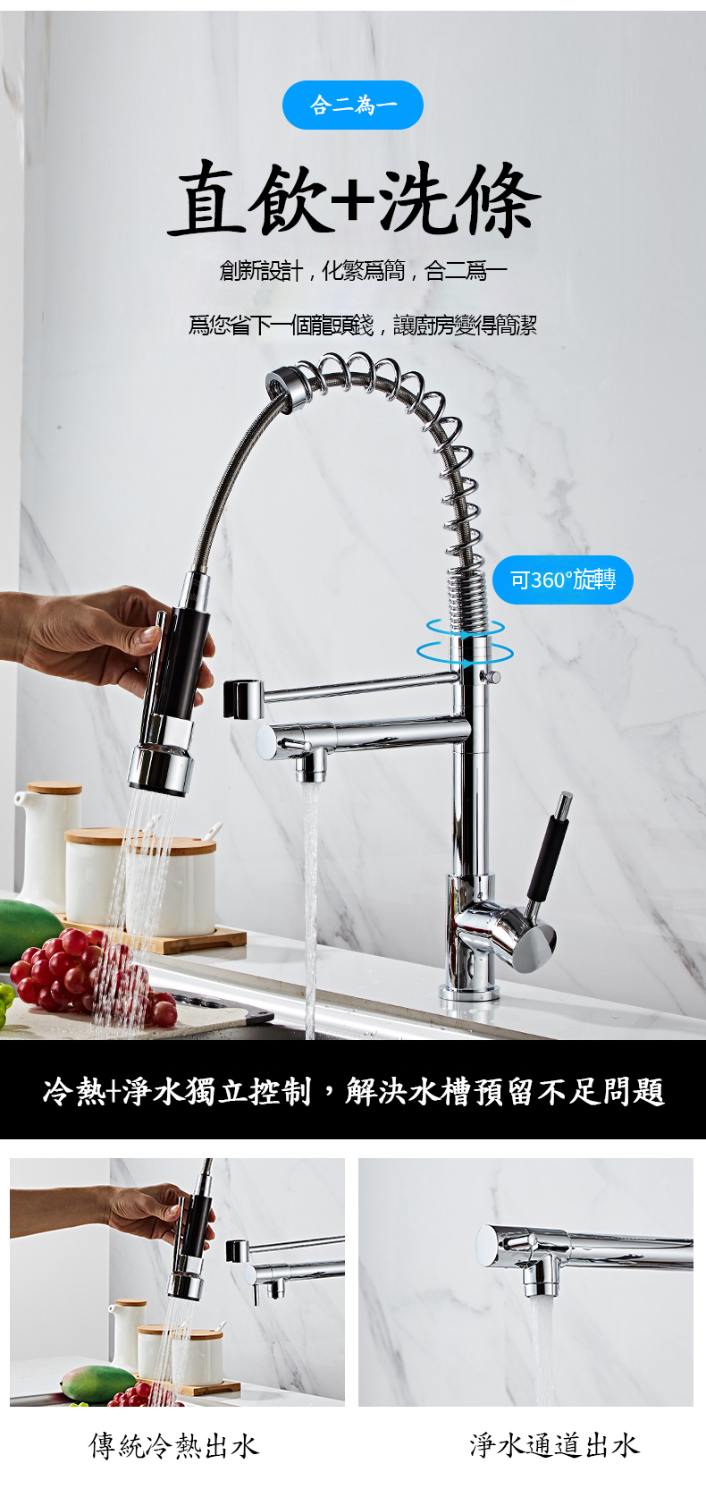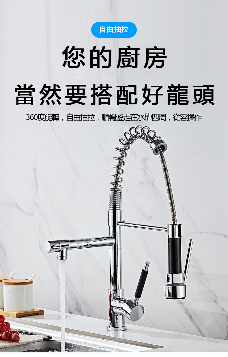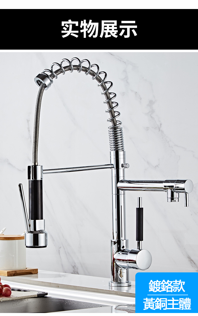 【小山THL】全銅高壓拉絲彈簧廚房水龍頭抽拉式冷熱水槽洗菜盆伸縮花灑
