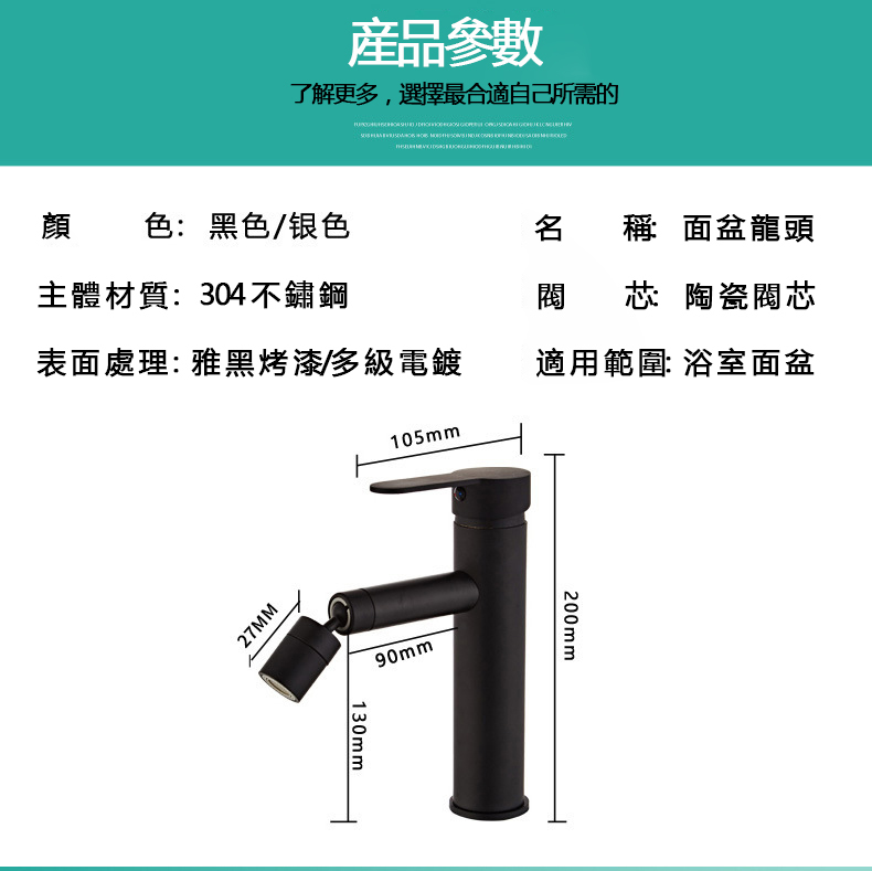 【小山THL】歐式黑色 A19 不鏽鋼面盆龍頭 浴室萬向旋轉起泡器 洗手洗臉盆 漱口冷熱水龍頭