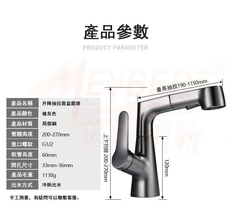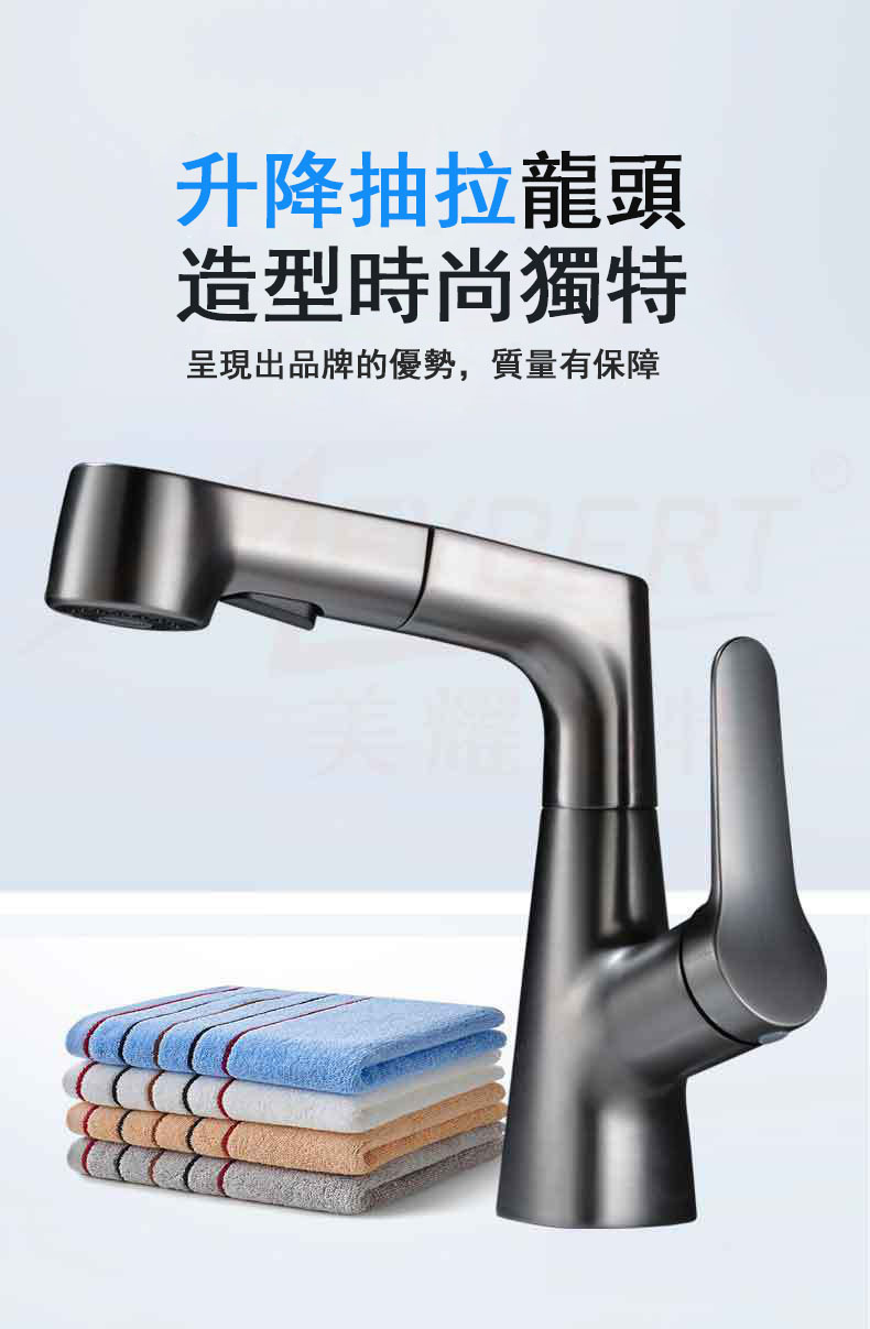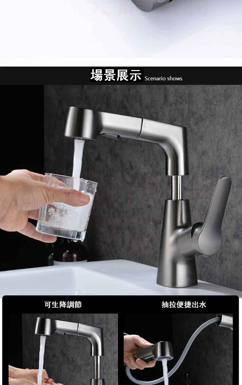 【小山THL】洗脸盆抽拉式水龍頭 升降衛生間面盆龍頭 家用浴室櫃台盆洗手盆冷熱水龍頭