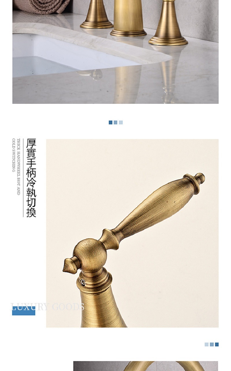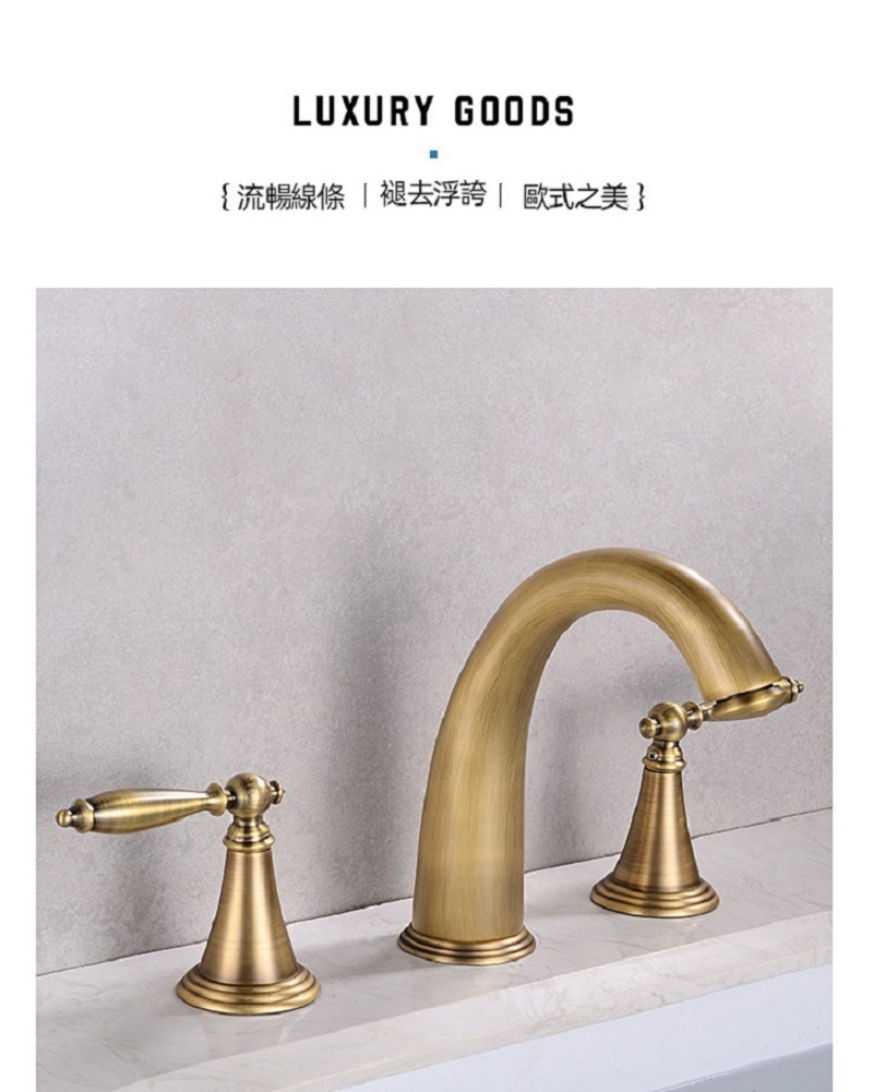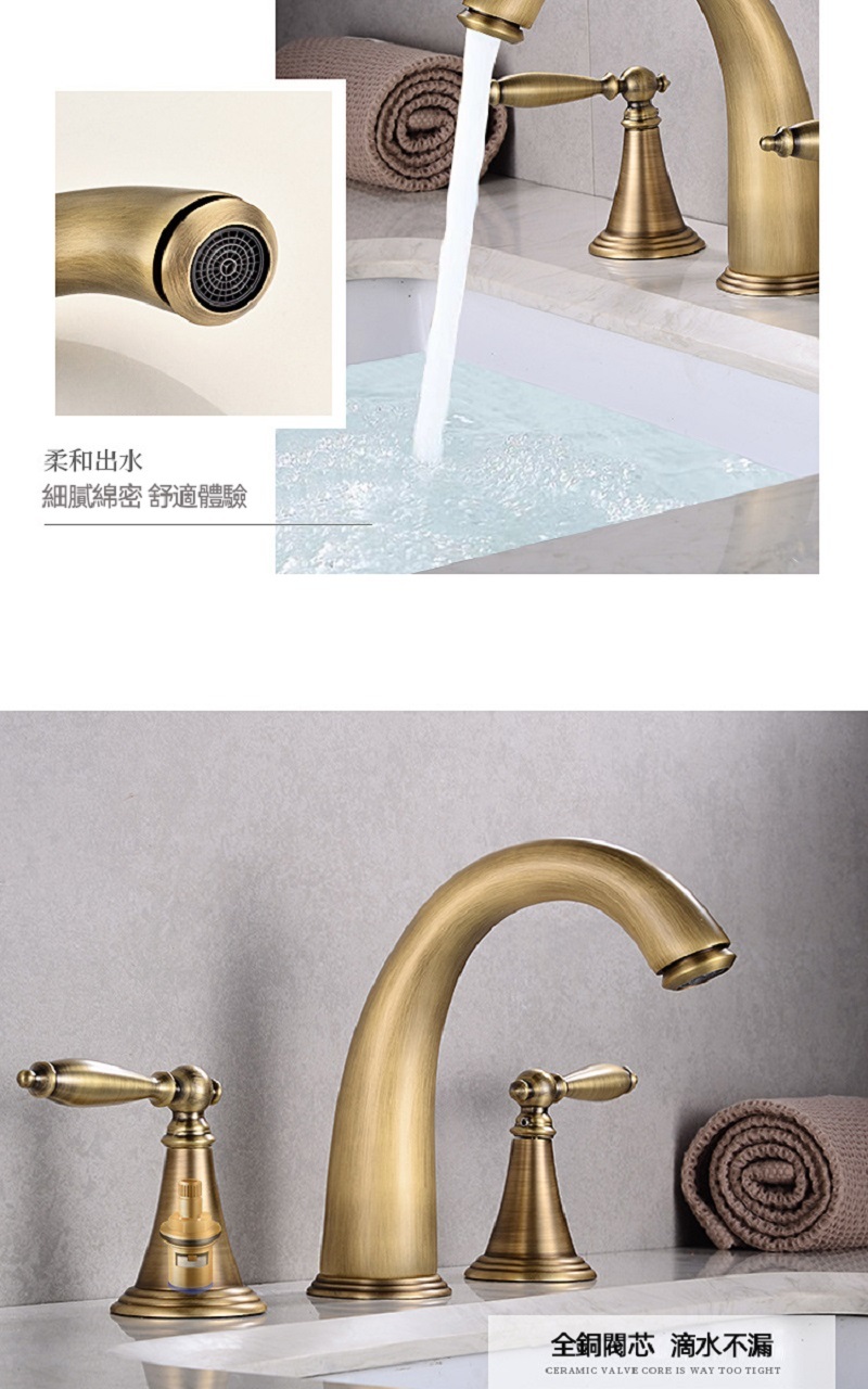 【小山THL】浴室全銅法式複古三孔面盆 龍頭浴室三件套 雙把雙孔 防濺冷熱水 兩用家用水龍頭