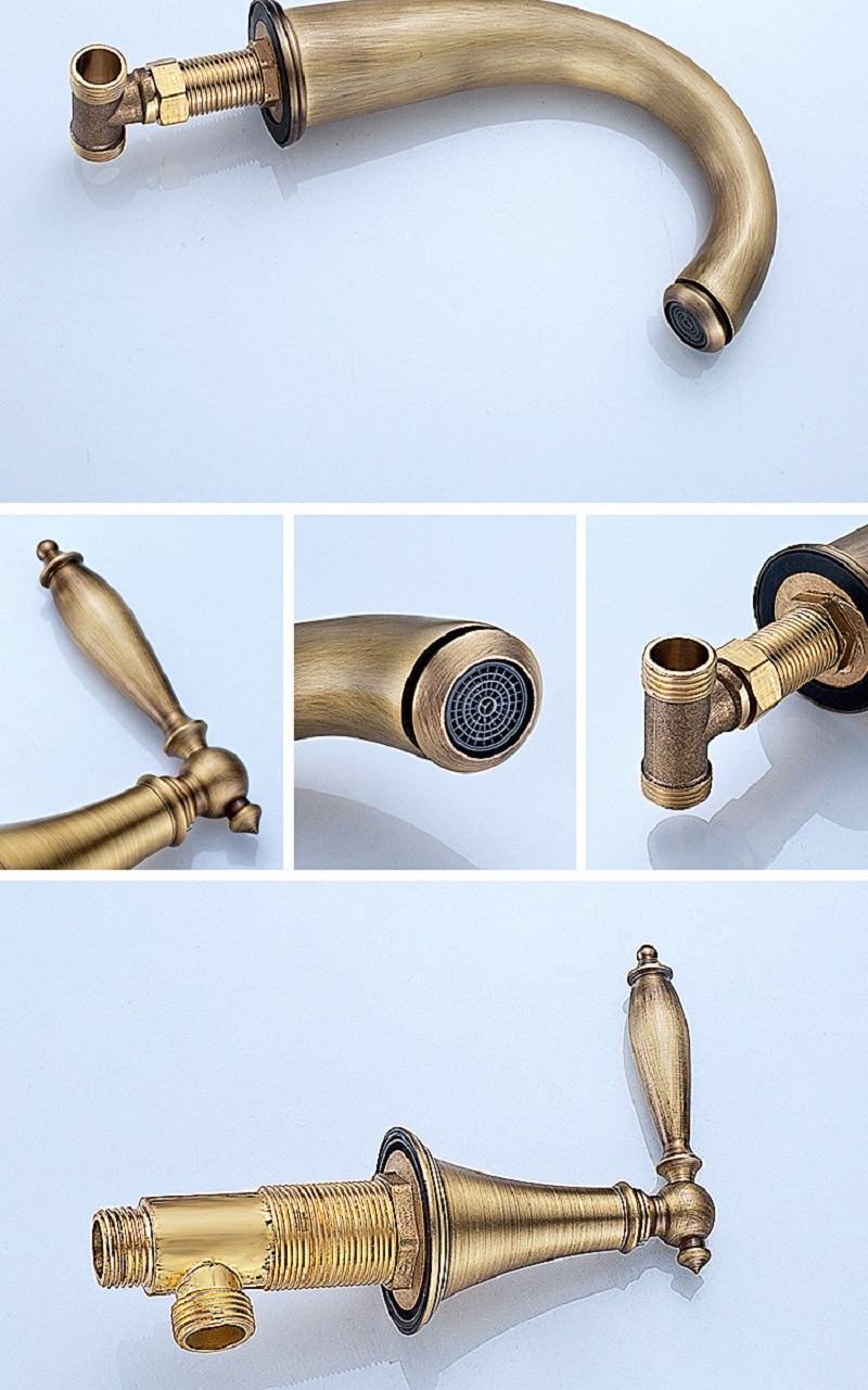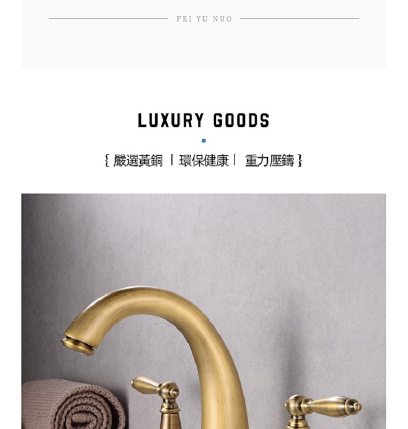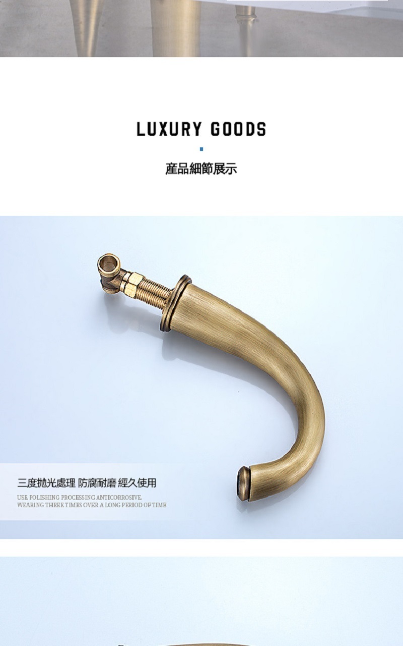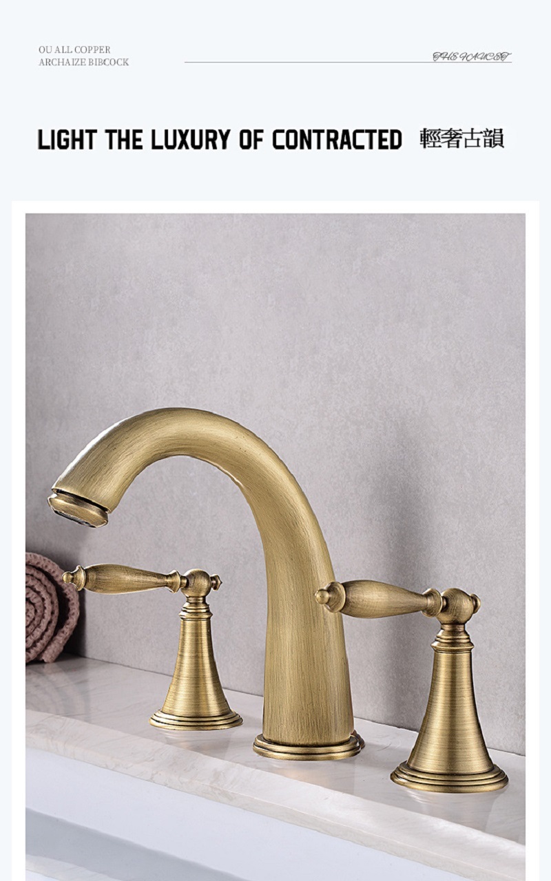 【小山THL】浴室全銅法式複古三孔面盆 龍頭浴室三件套 雙把雙孔 防濺冷熱水 兩用家用水龍頭