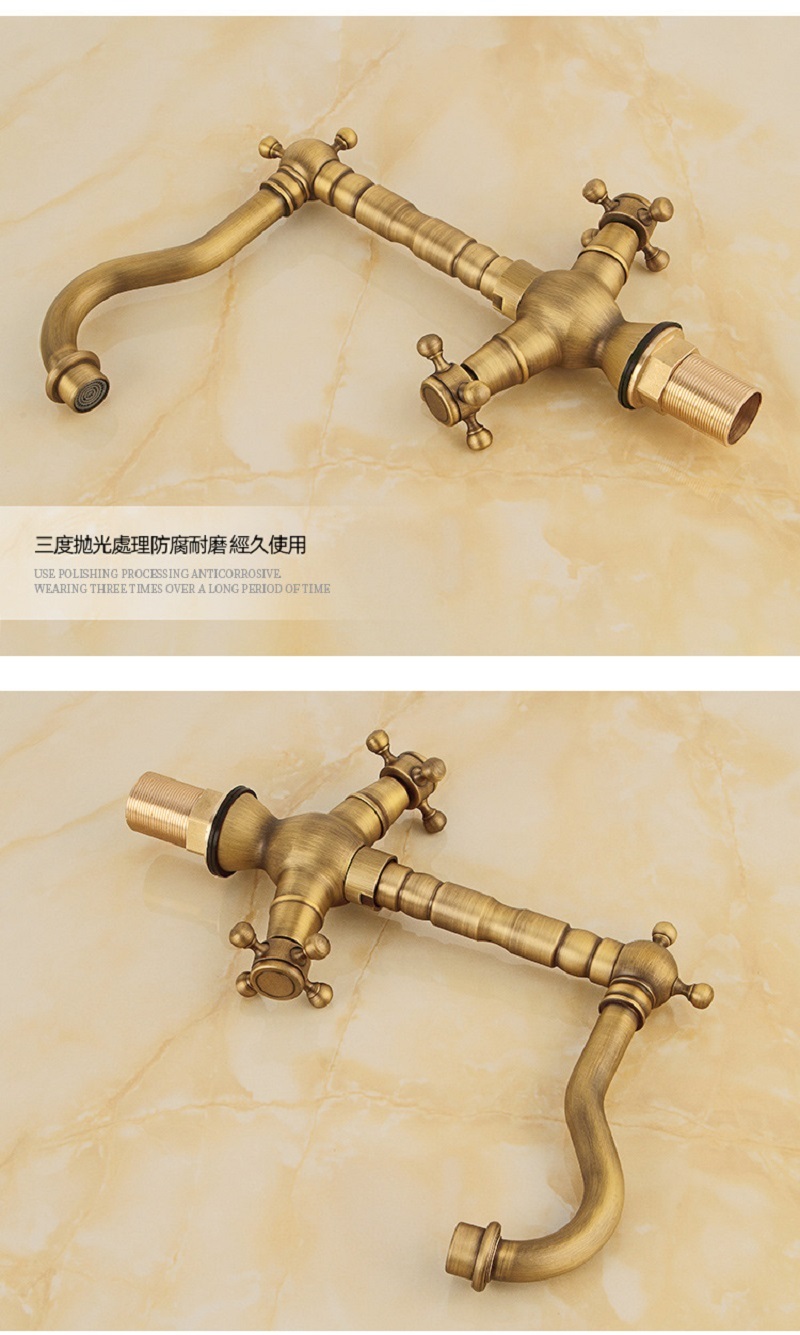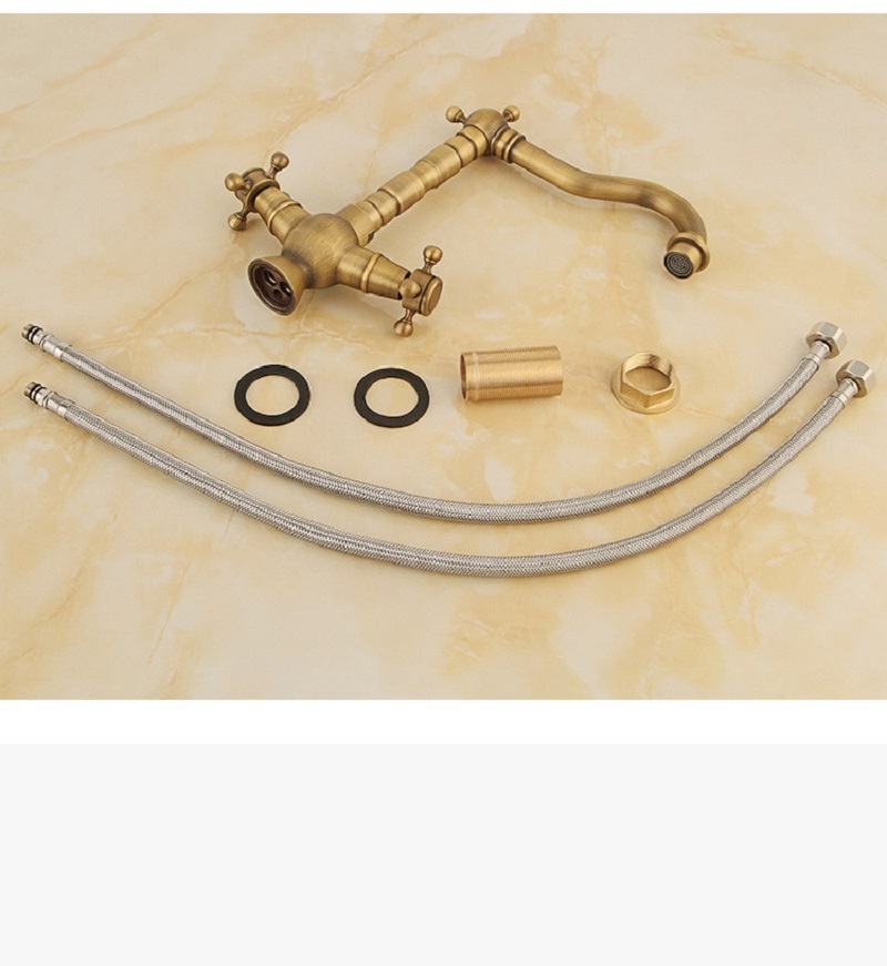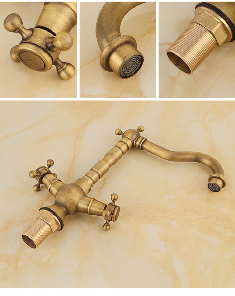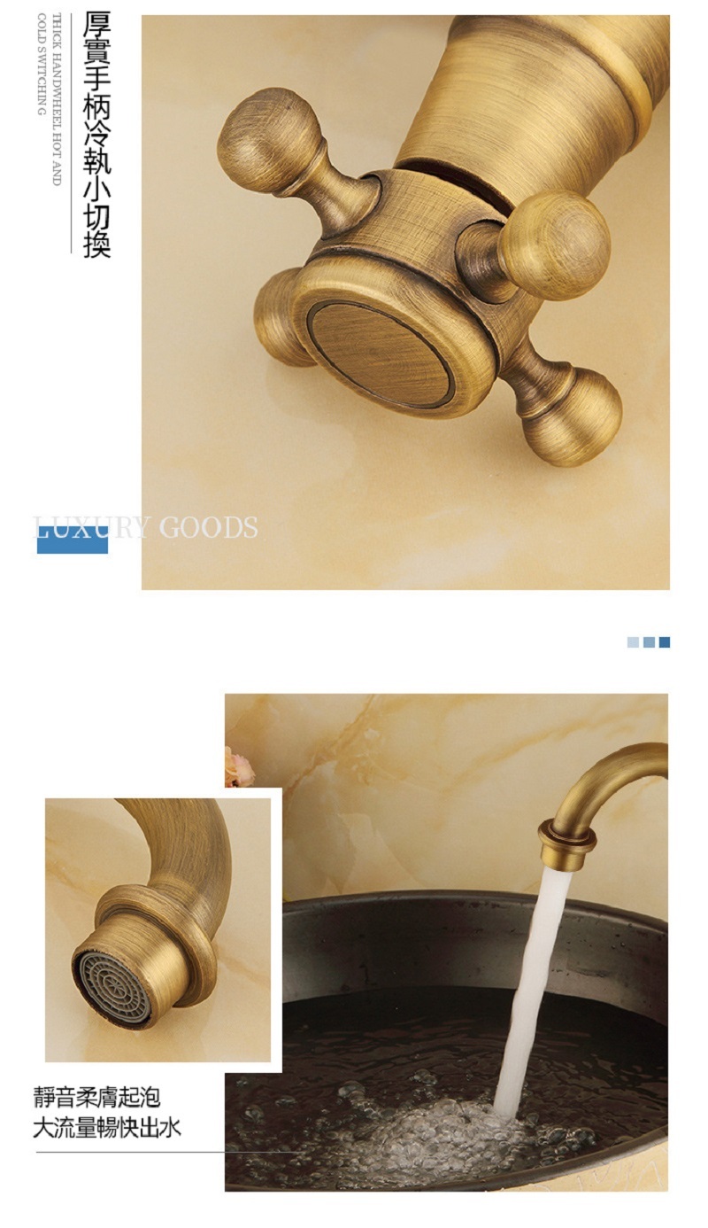【小山THL】全銅仿古雙把手輪面盆龍頭家用廚房水槽洗菜盆冷熱水龍頭防濺