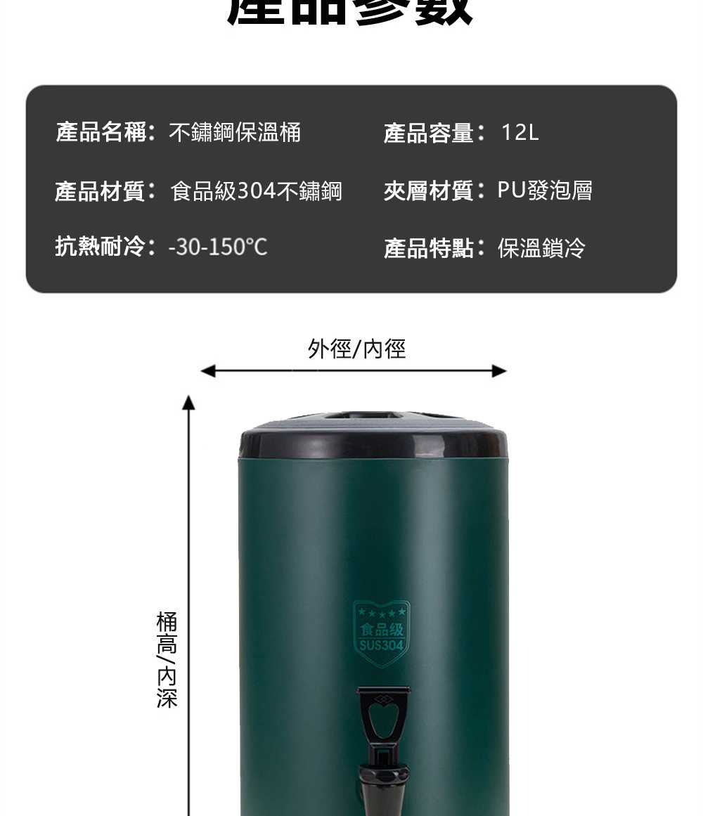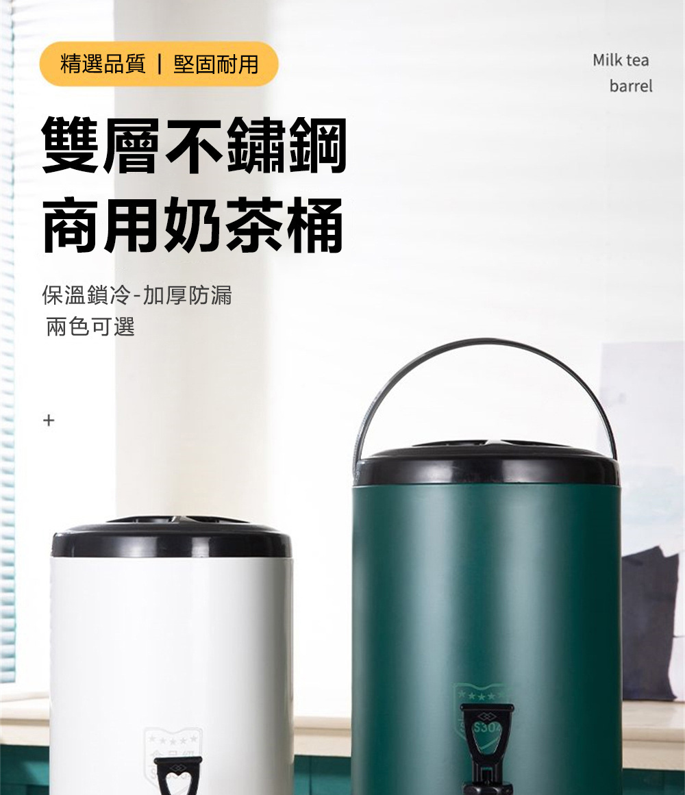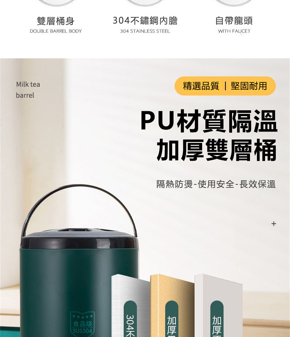 雙層桶身,不鏽鋼內膽,自帶龍頭