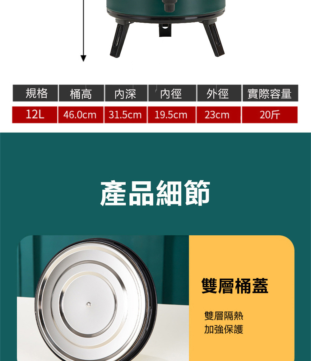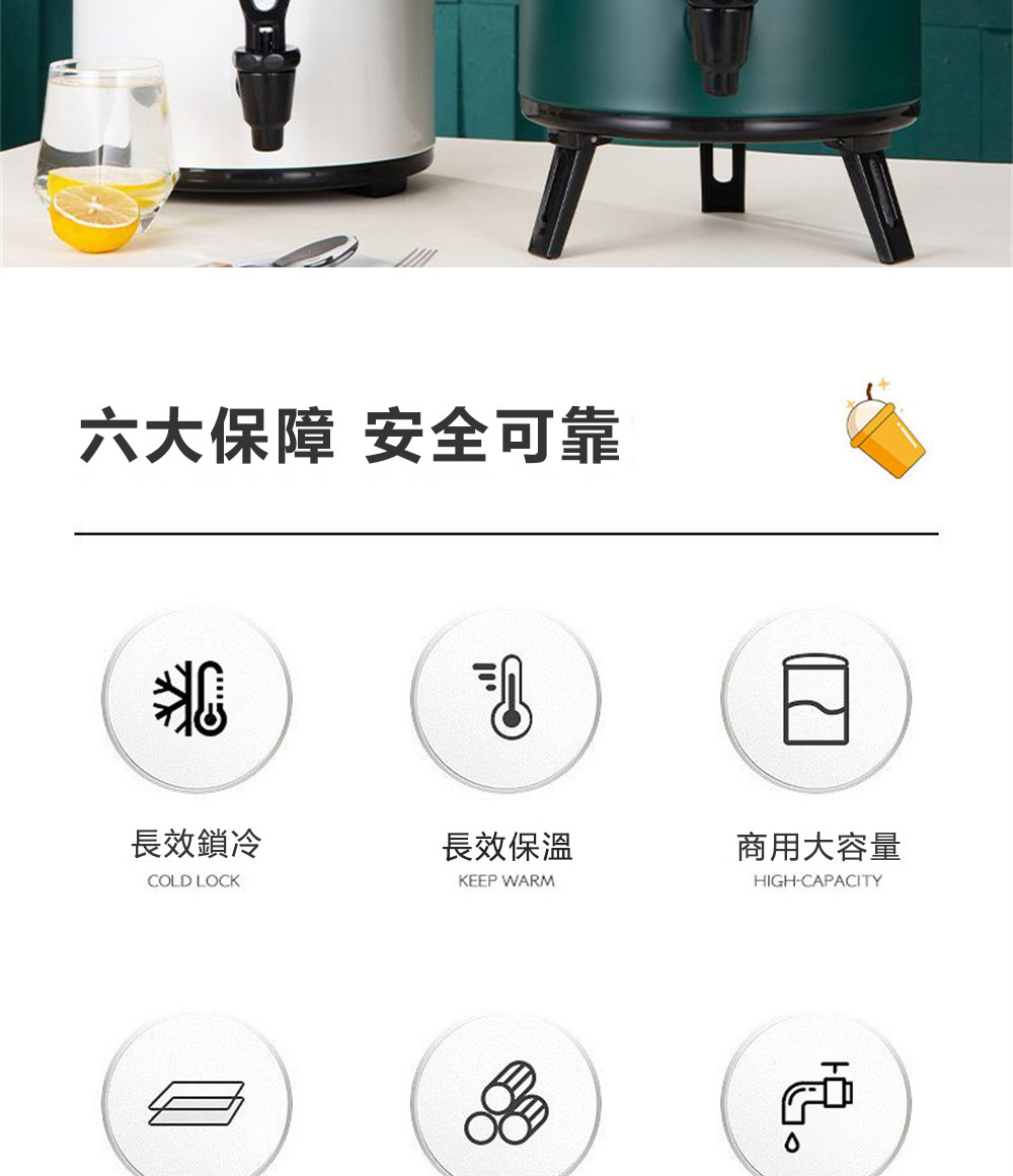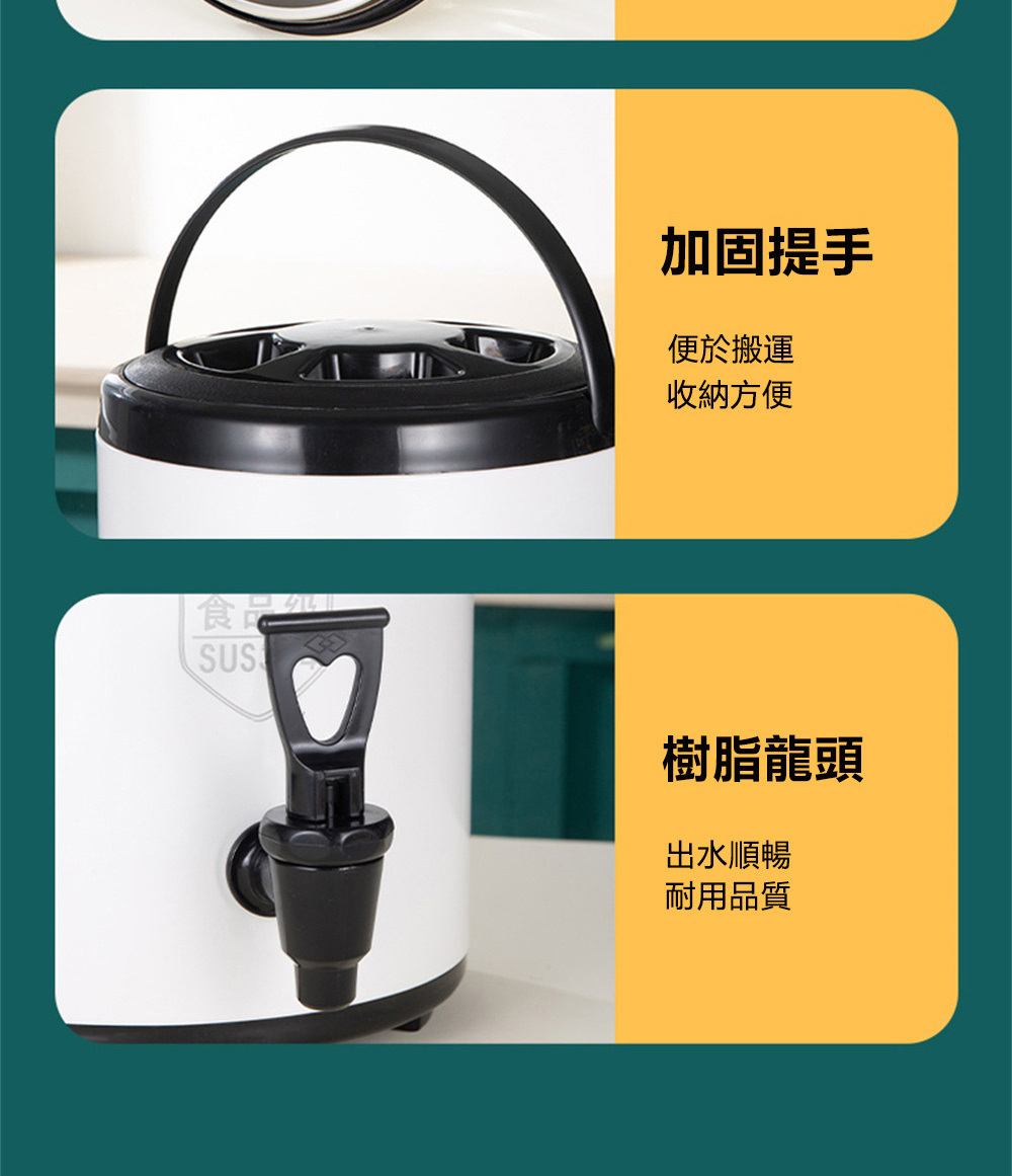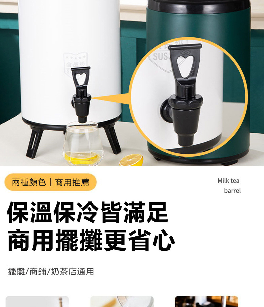 雙層桶身,不鏽鋼內膽,自帶龍頭