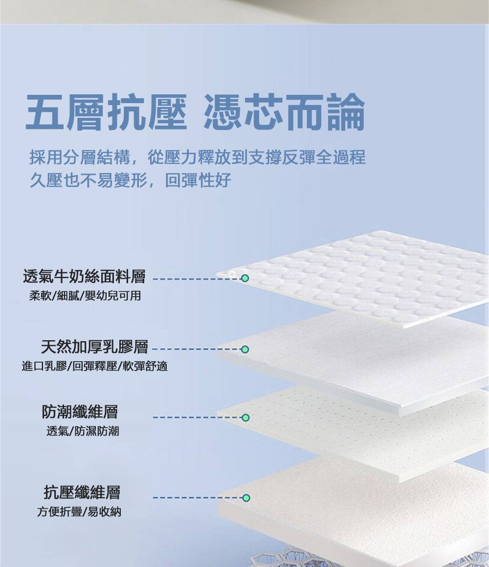 5D透氣,乳膠纖維,五層抗壓
