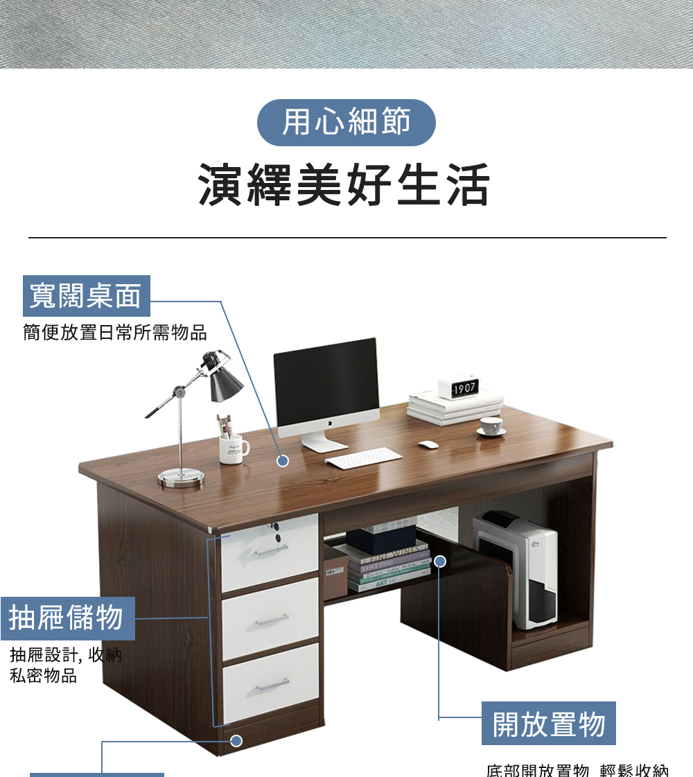 寬闊桌面,抽屜儲物,開放職務,簡約大氣